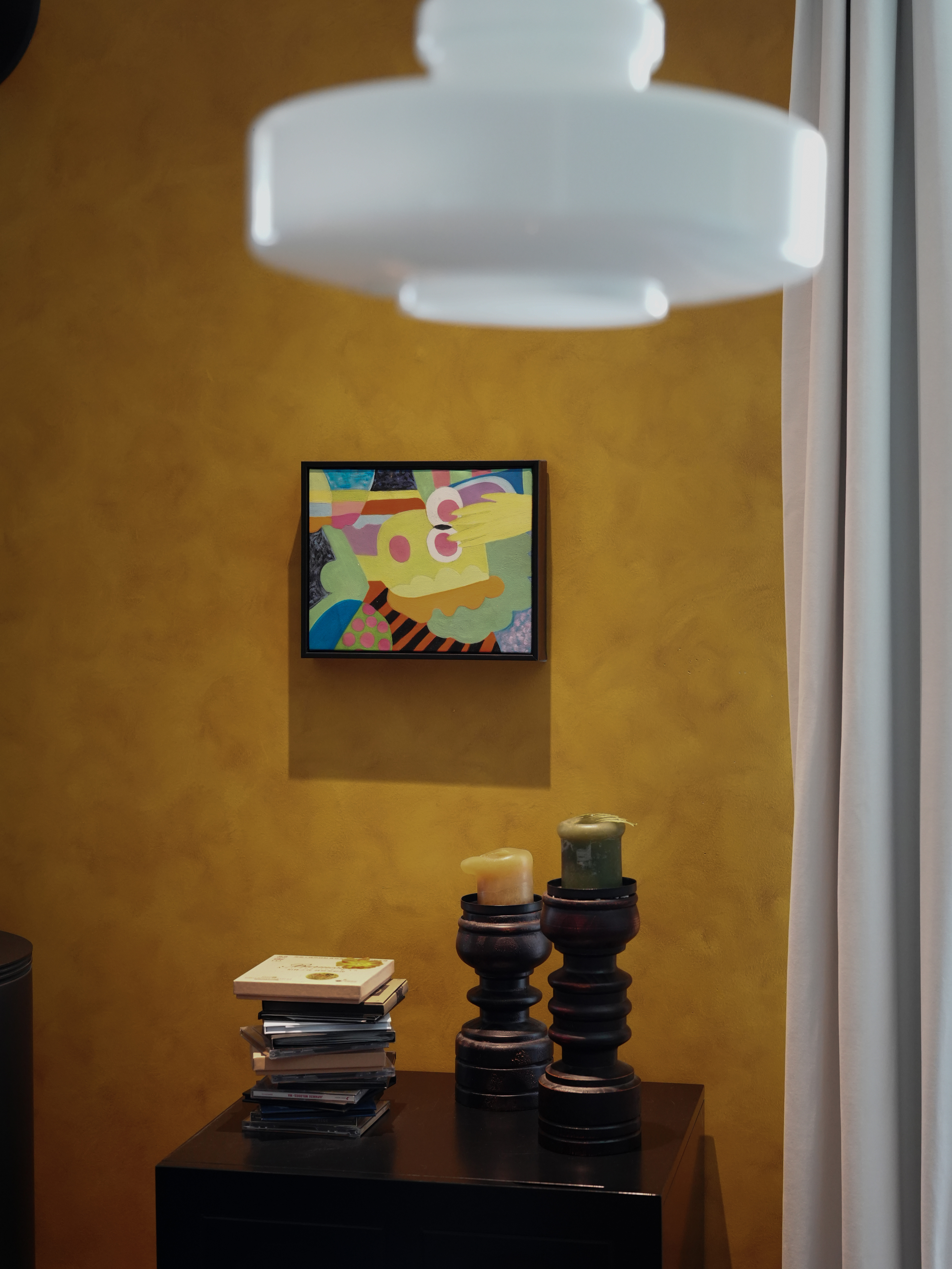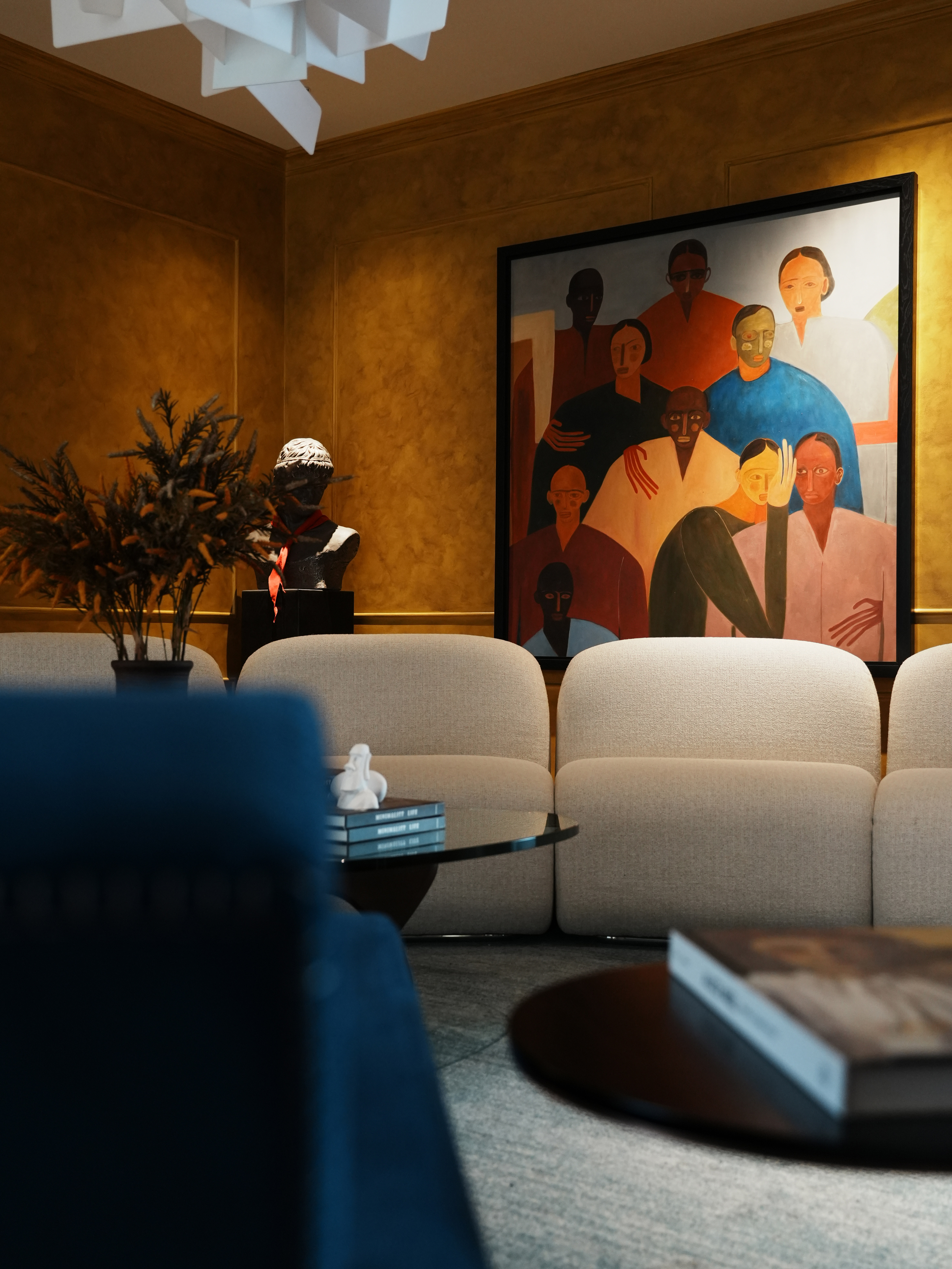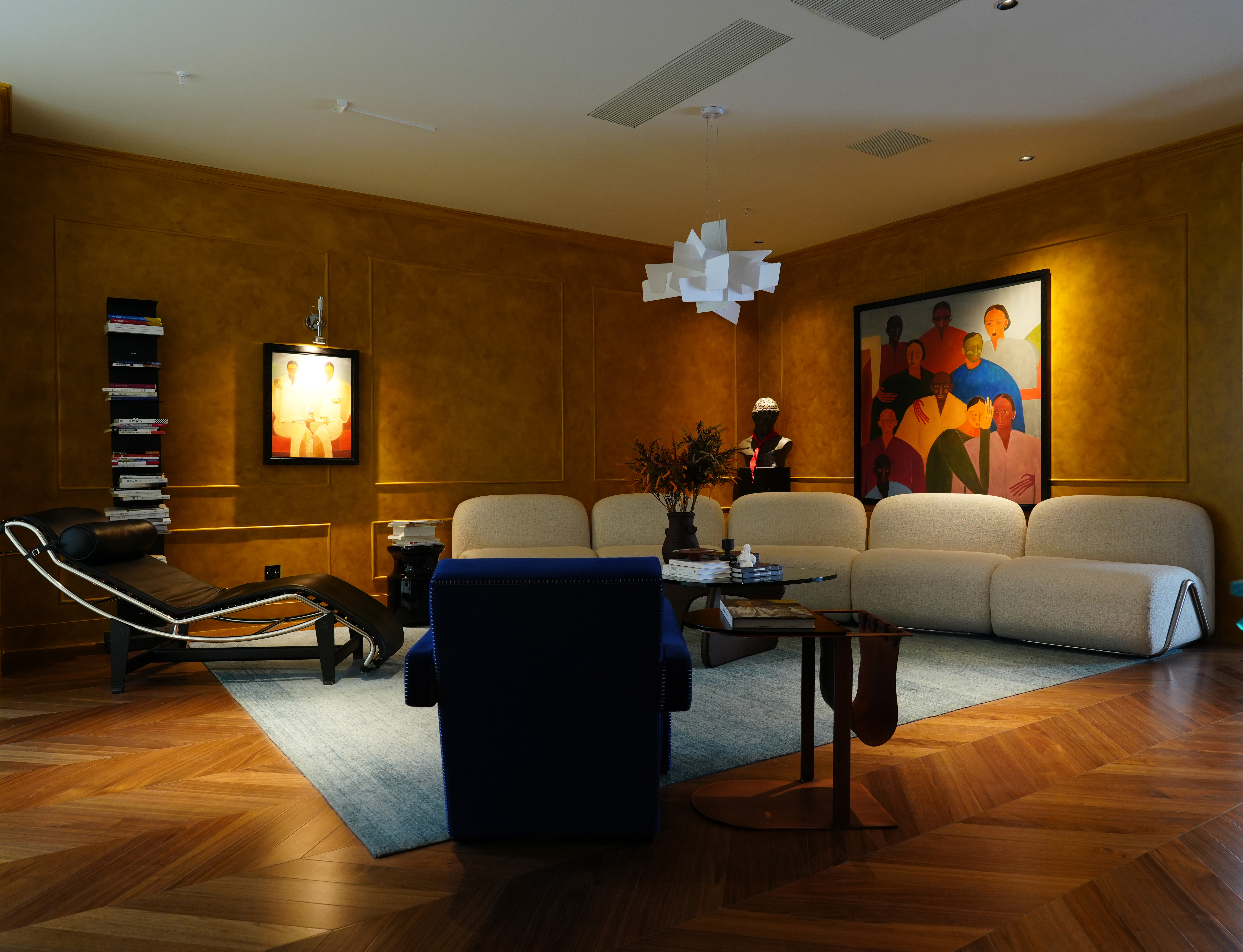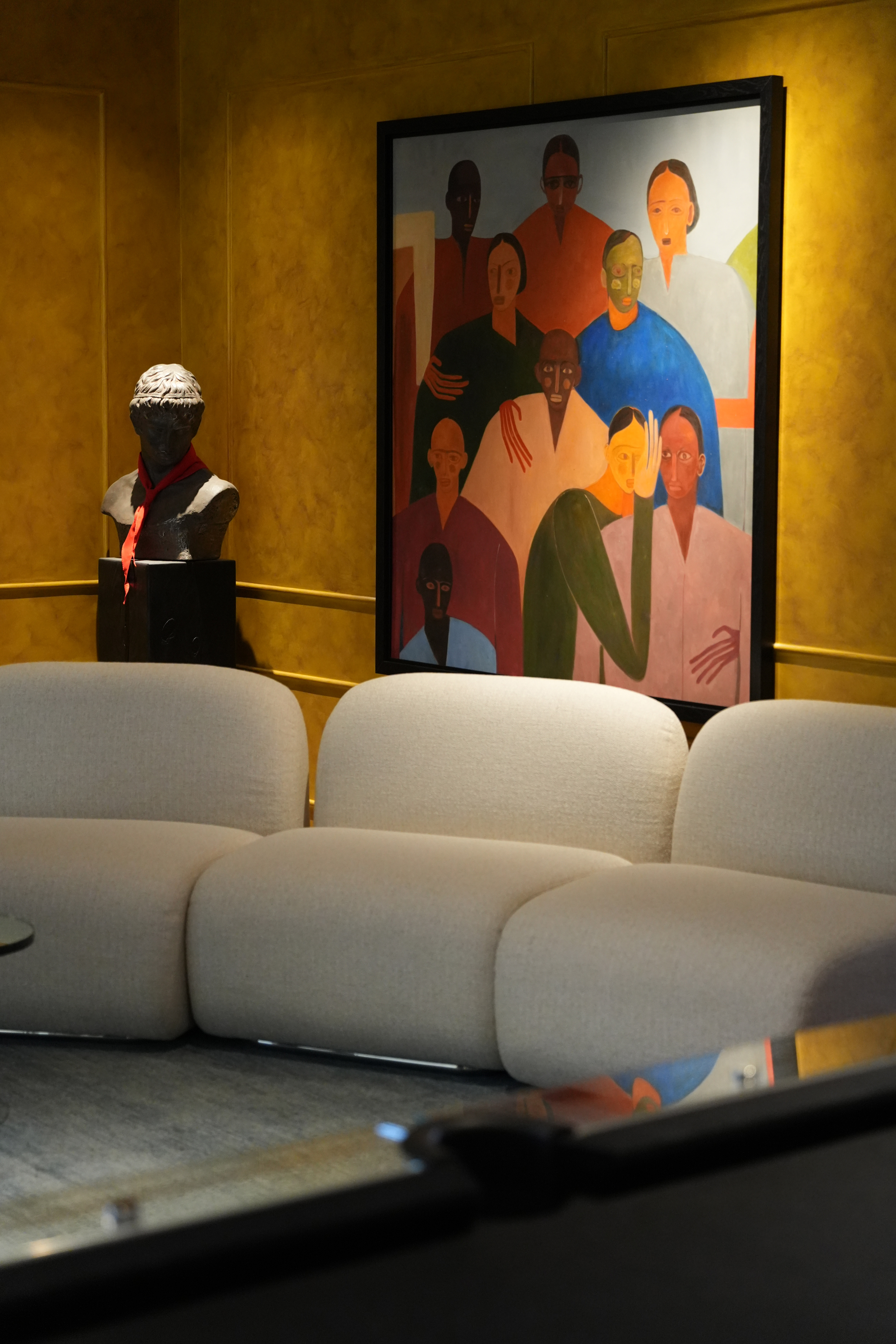 通过材质、肌理、色彩的融合打造别样空间。立体主义的挂画表达出强烈的个人情感,艺术作品充满了“自我审视、自我确认、自我表达”。