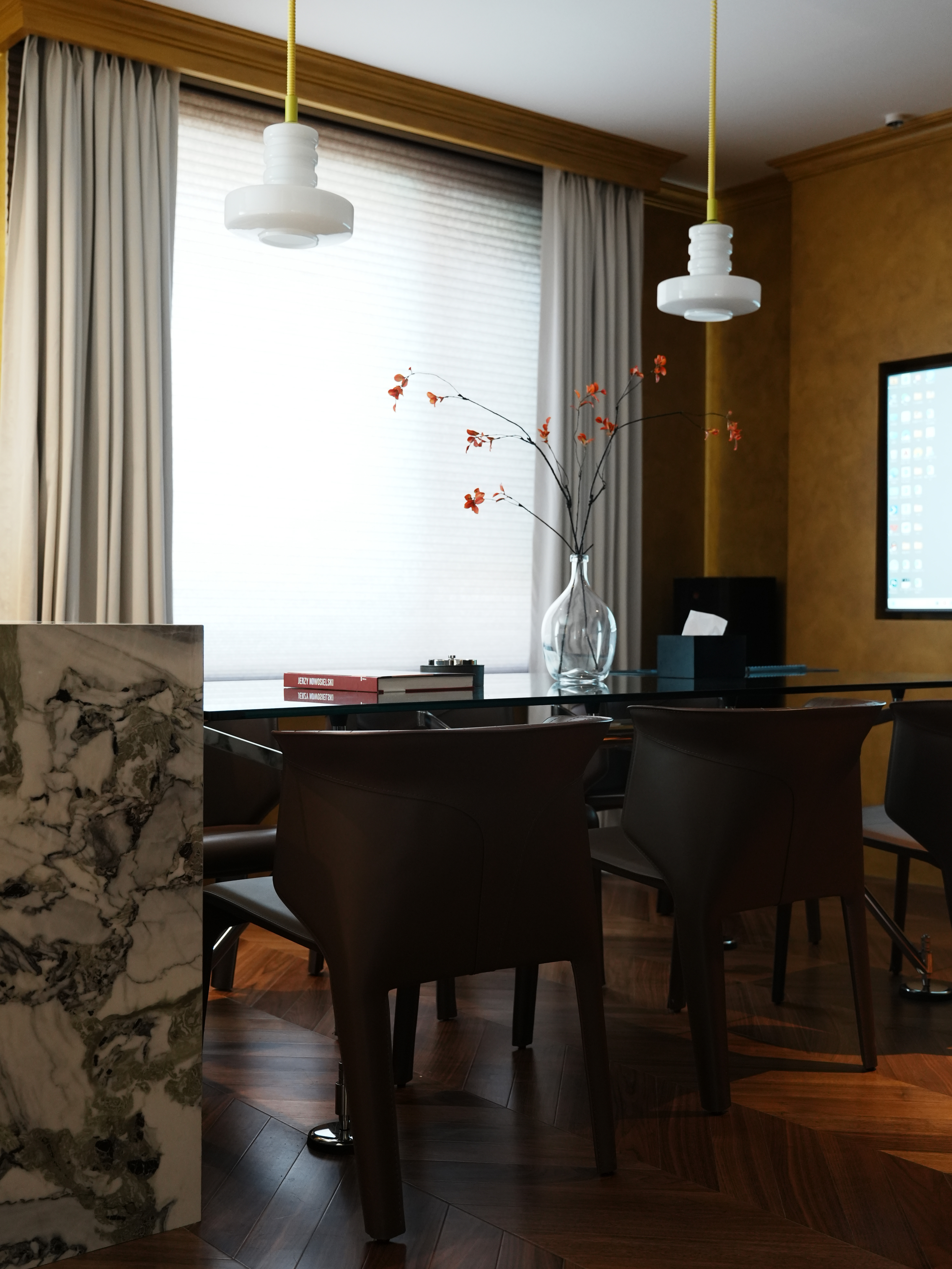 空间布局:空间并不大,只有90㎡。但恰恰想做一个尽可能敞开式的空间感,所以只是做了两个大的分区,一个是洽谈区,一个是休闲区和办公区,放置了台球桌也是希望创造一个工作和娱乐不要有太强的界限感的空间。