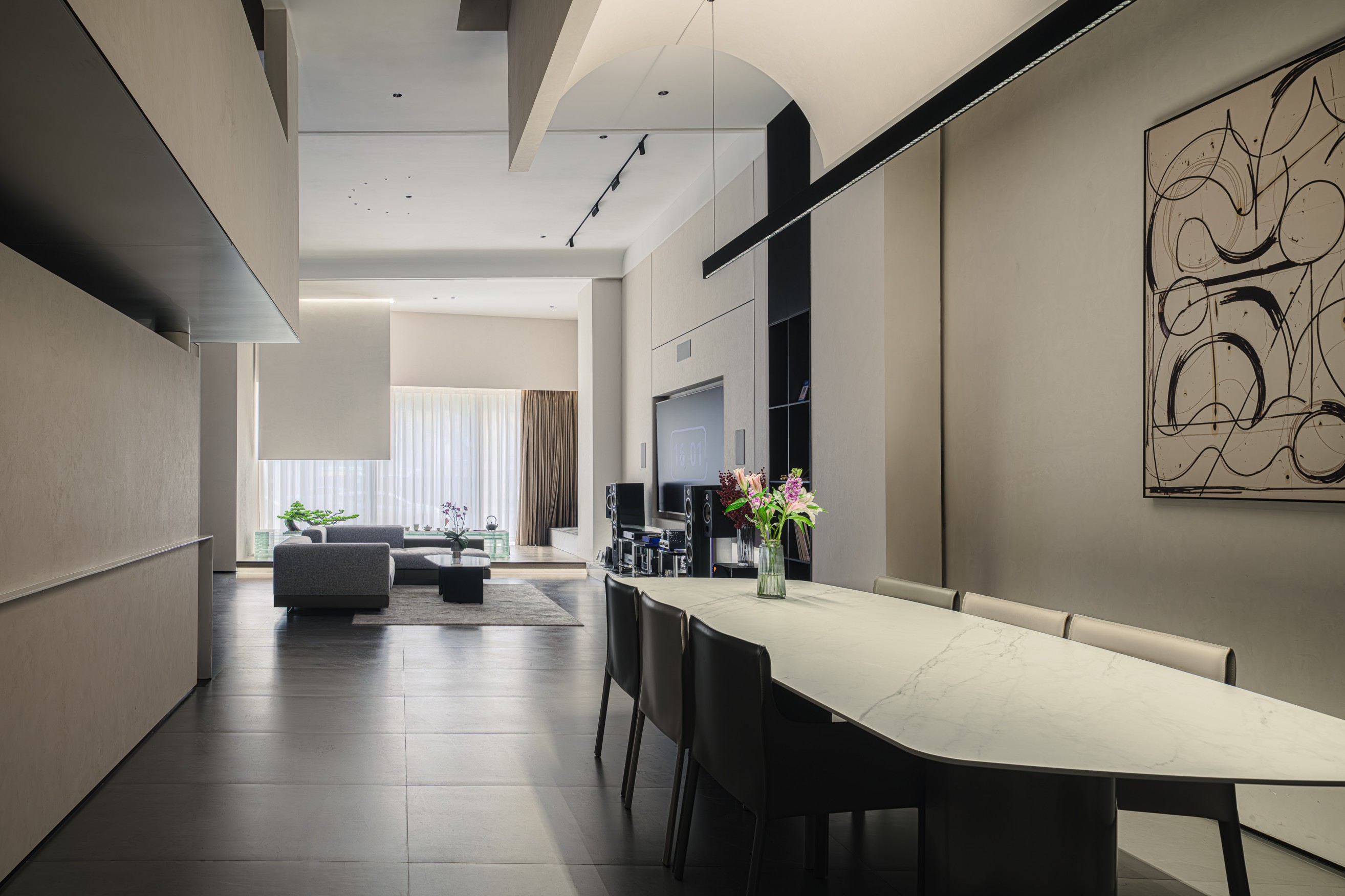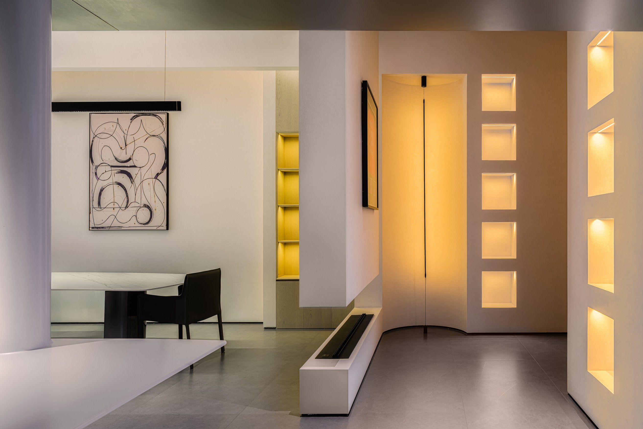 空间意境:该体验空间采用创新的矩阵设计理念,通过空间的重复穿插与巧妙重构,营造出既简洁又富有层次感的立体空间效果。这种设计不仅增强了空间的视觉张力,还极大地提升了访客的空间想象力,使他们仿佛置身于一个充满无限可能的未来家居世界。