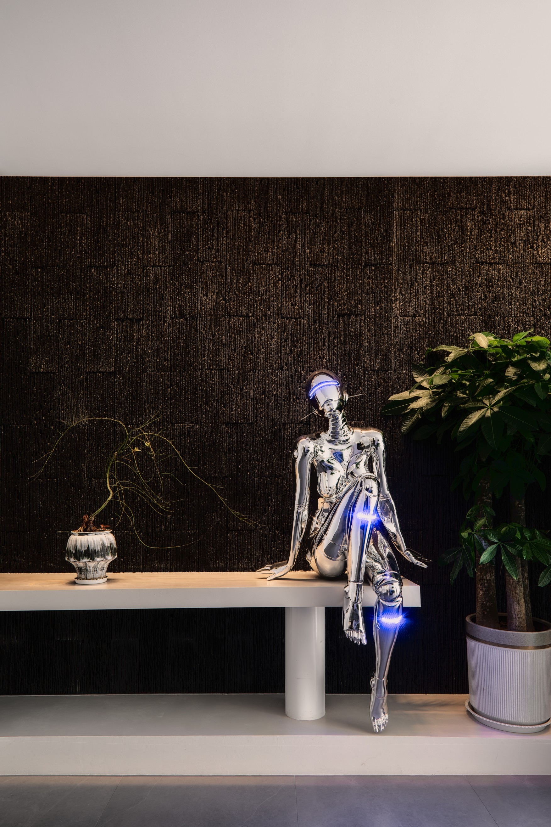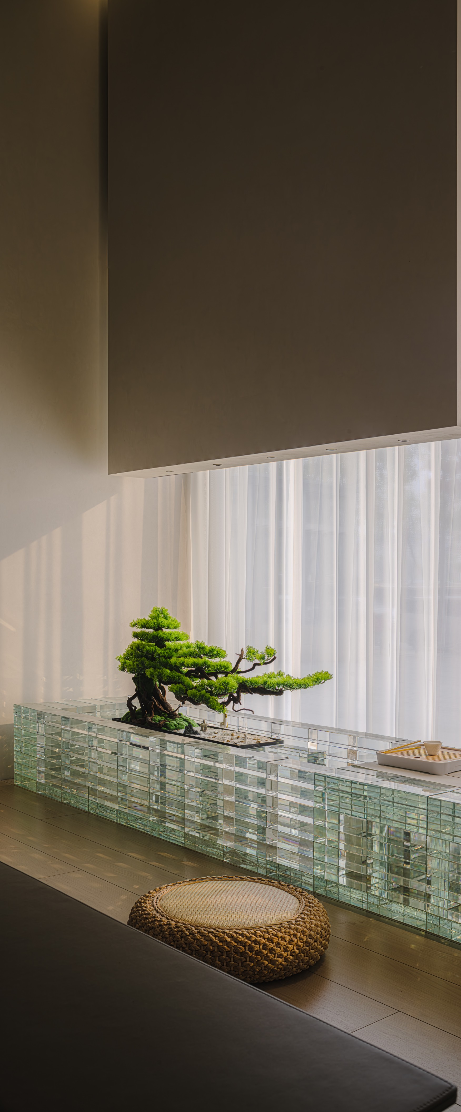 设计选材:在材料选择上,项目大面积选用了质感细腻、色彩丰富的艺术涂料作为基调色,为整个空间奠定了优雅而低调的基调。同时,在局部区域,项目巧妙地应用了新型材料,如亚光金属板和透明玻璃砖,这些材料以其独特的质感和光泽,为空间增添了一抹现代而提神的气息,成为整个空间中不可或缺的点缀元素。