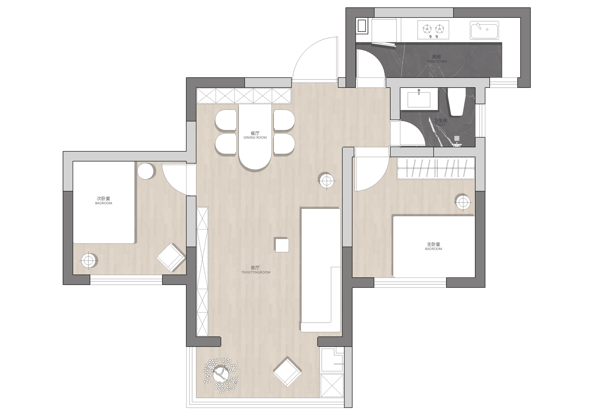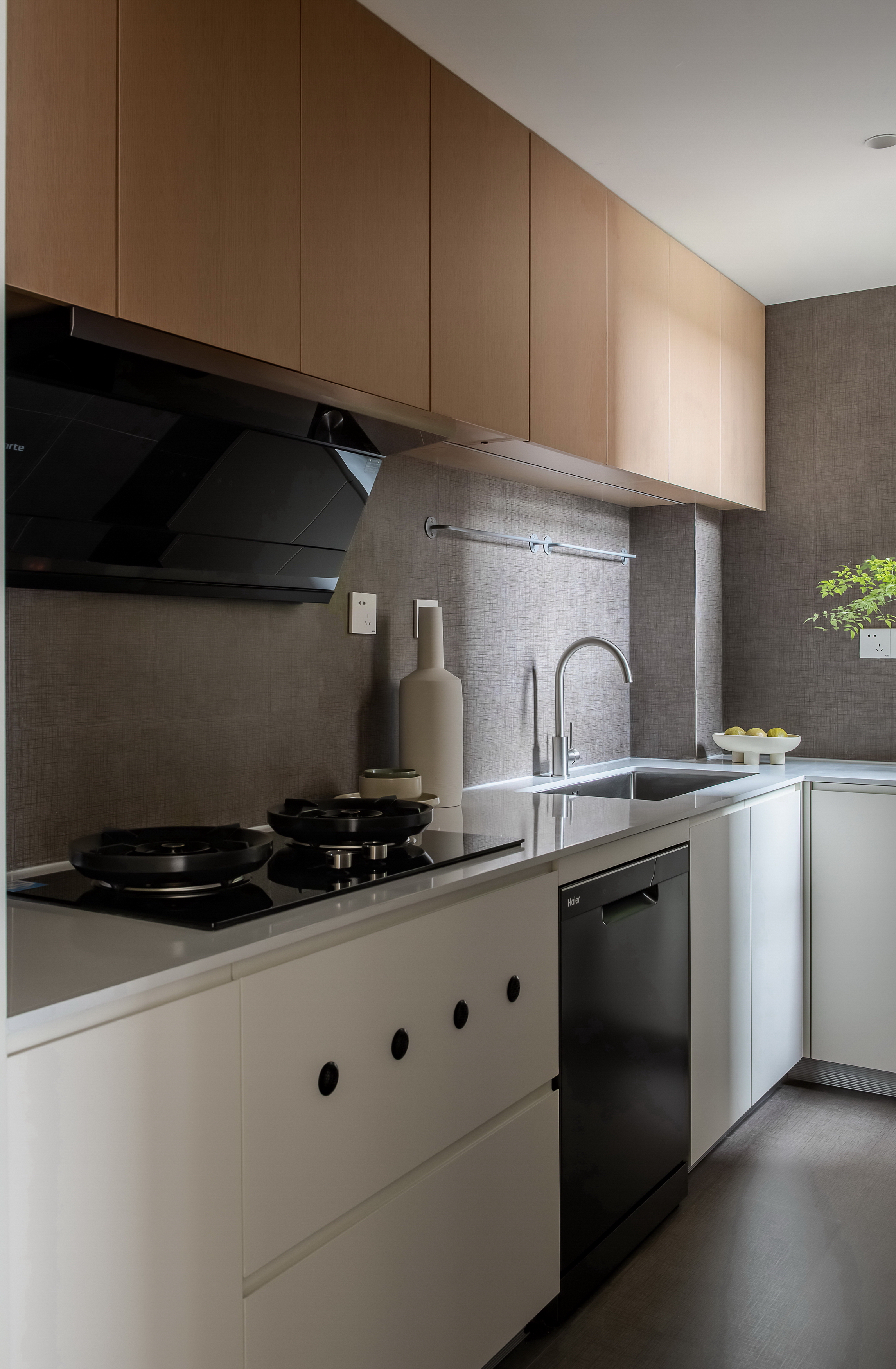 项目定位:我们了解项目情况后,在充分尊重业主喜好和生活背景的前提下,结合现场实际条件和环境,将整体设计风格定位为现代极简+自然诧寂的高级感住宅空间。