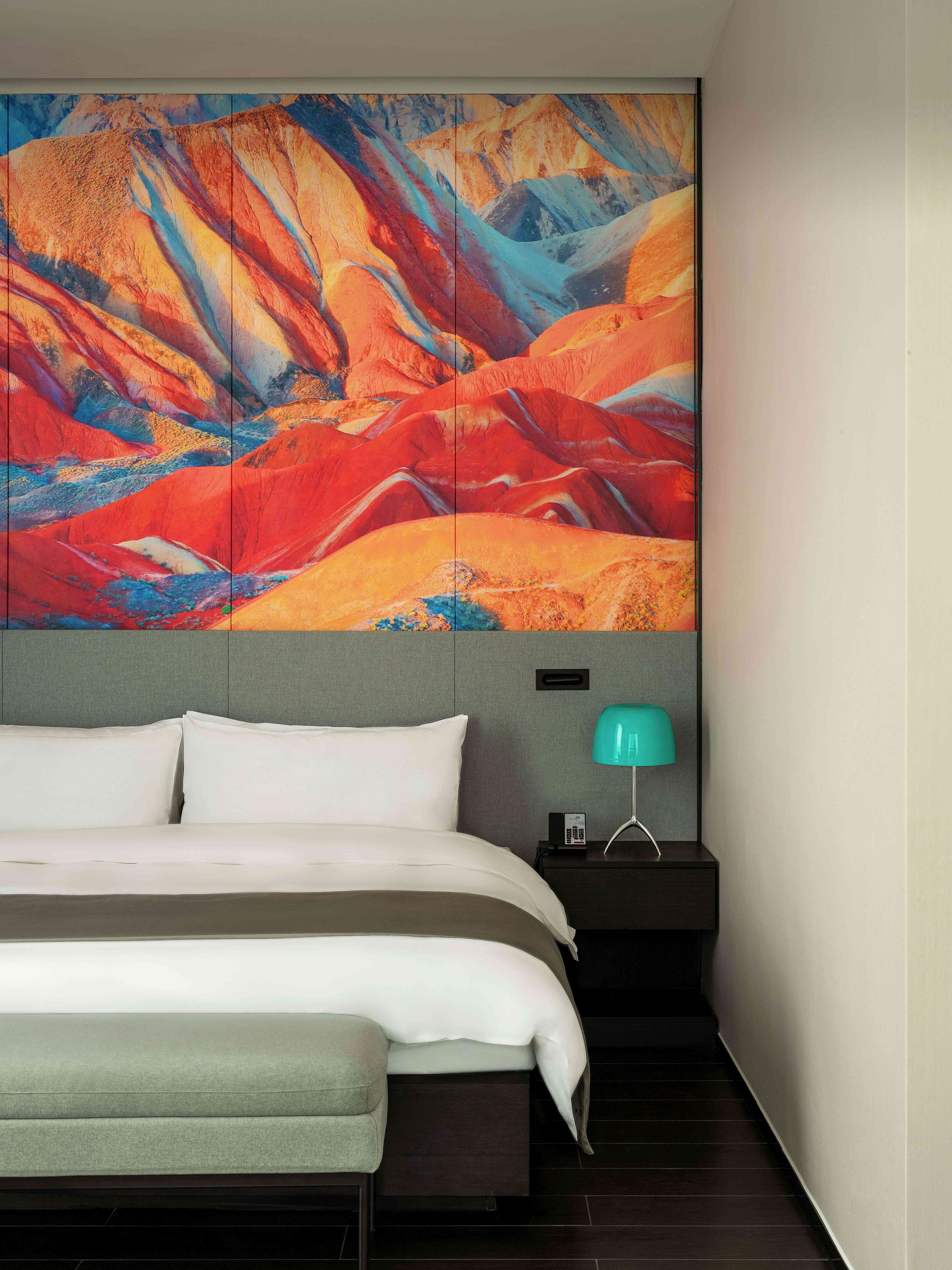 项目定位:在设计之初的策划中,我们期望打造一个与众不同的,当地网红酒店,从颜色上,材质上,艺术品选择上,我们都不同于以往的做法,而是大胆创新,这次的感受是热烈而奔放的。