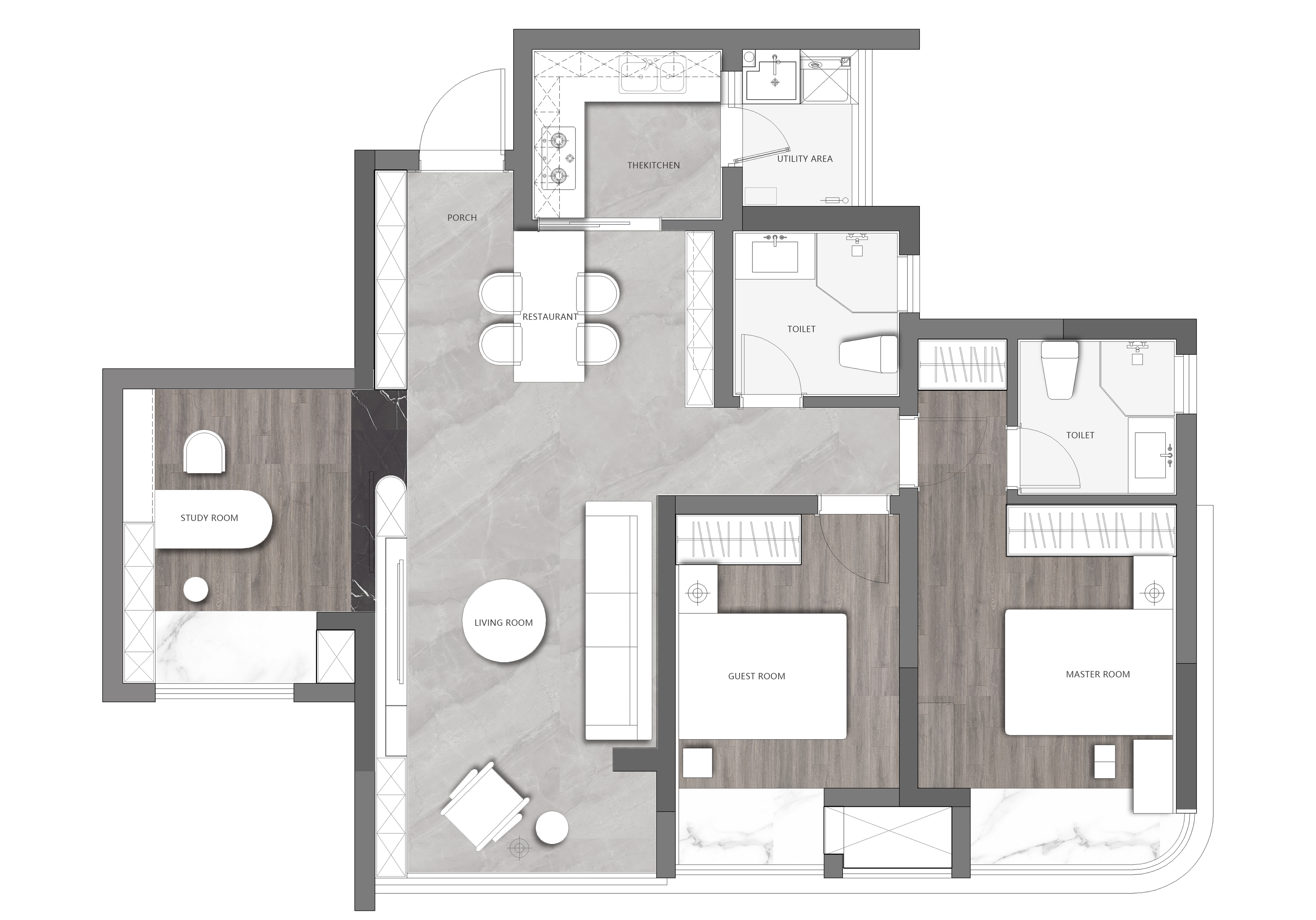项目定位:“买了精装房,但是房子的风格不喜欢怎么办?”这是客户武先生找到我们团队沟通时提出的第一个疑问,虽然是简单的发问,却能代表众多买精装房业主的心声。问题简单但却引发了我们团队的无限思考,因为这绝不仅仅是回答一句“拆了重装”那么简单的事情。作为私宅设计师,我们深知装修二字对一个家庭意味着什么,设计师的职责也不仅仅只是画图设计那么简单,更要考虑方案的可行性,落地性,以及业主的功能需求和真情实感,而不是堆积出来的效果。