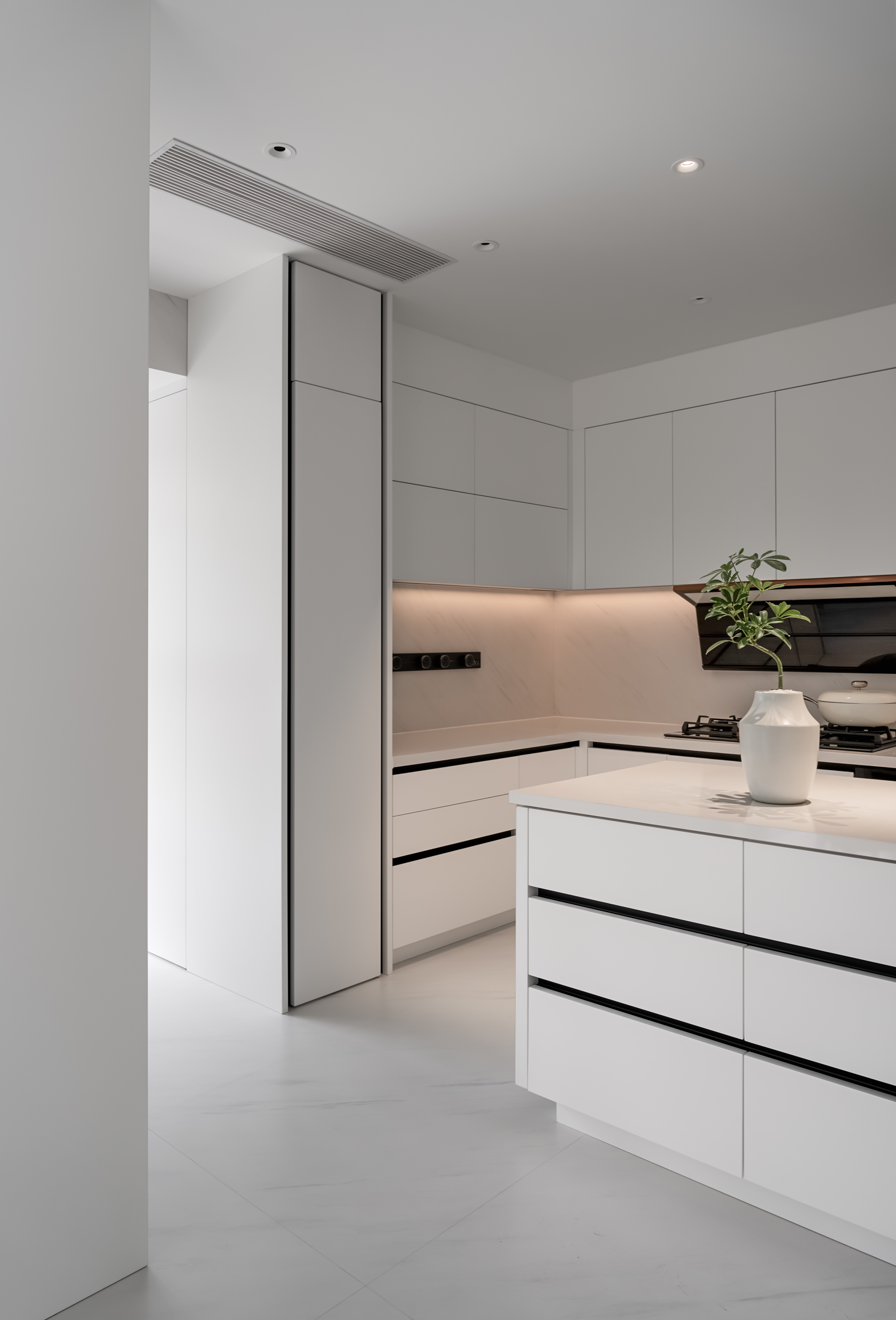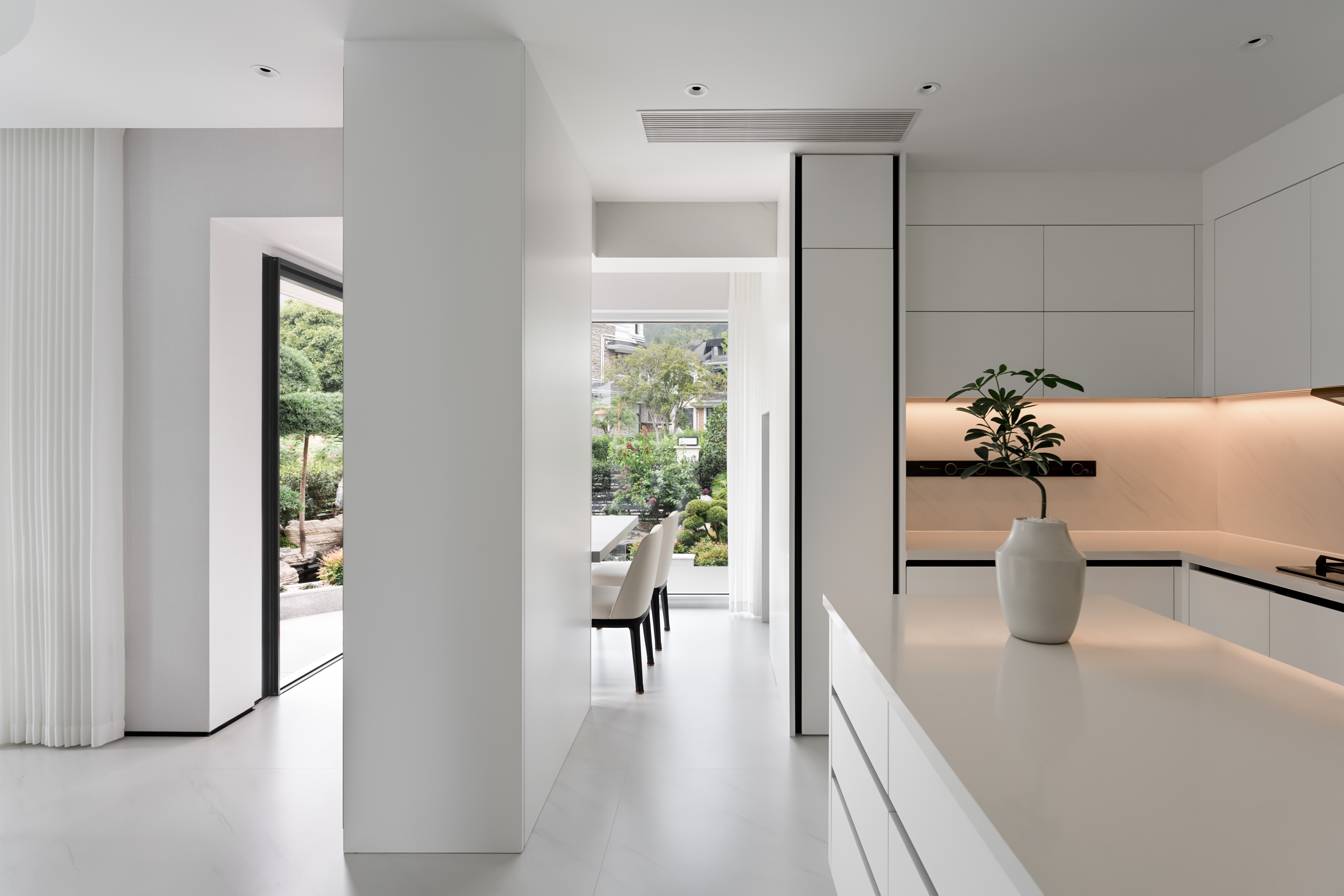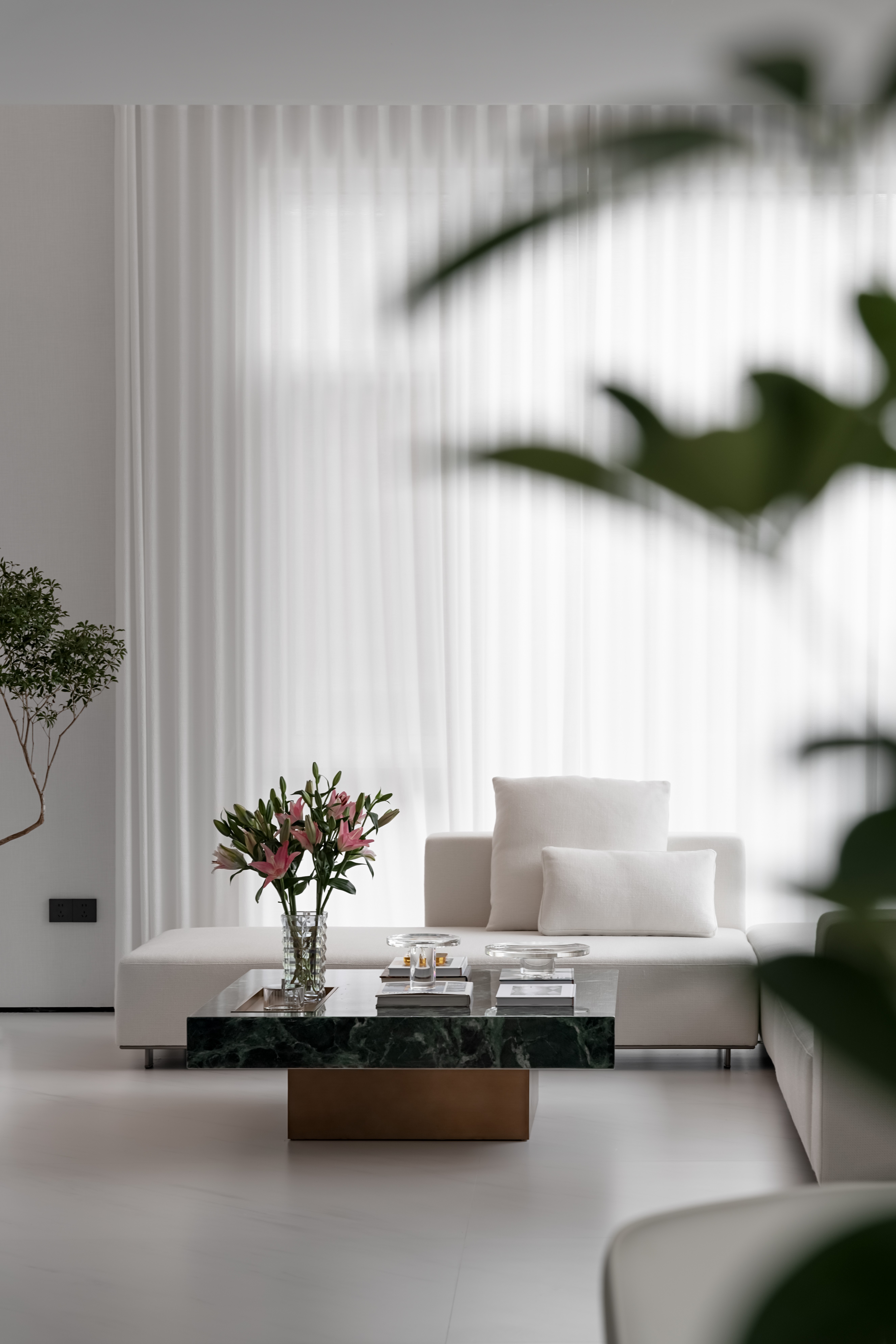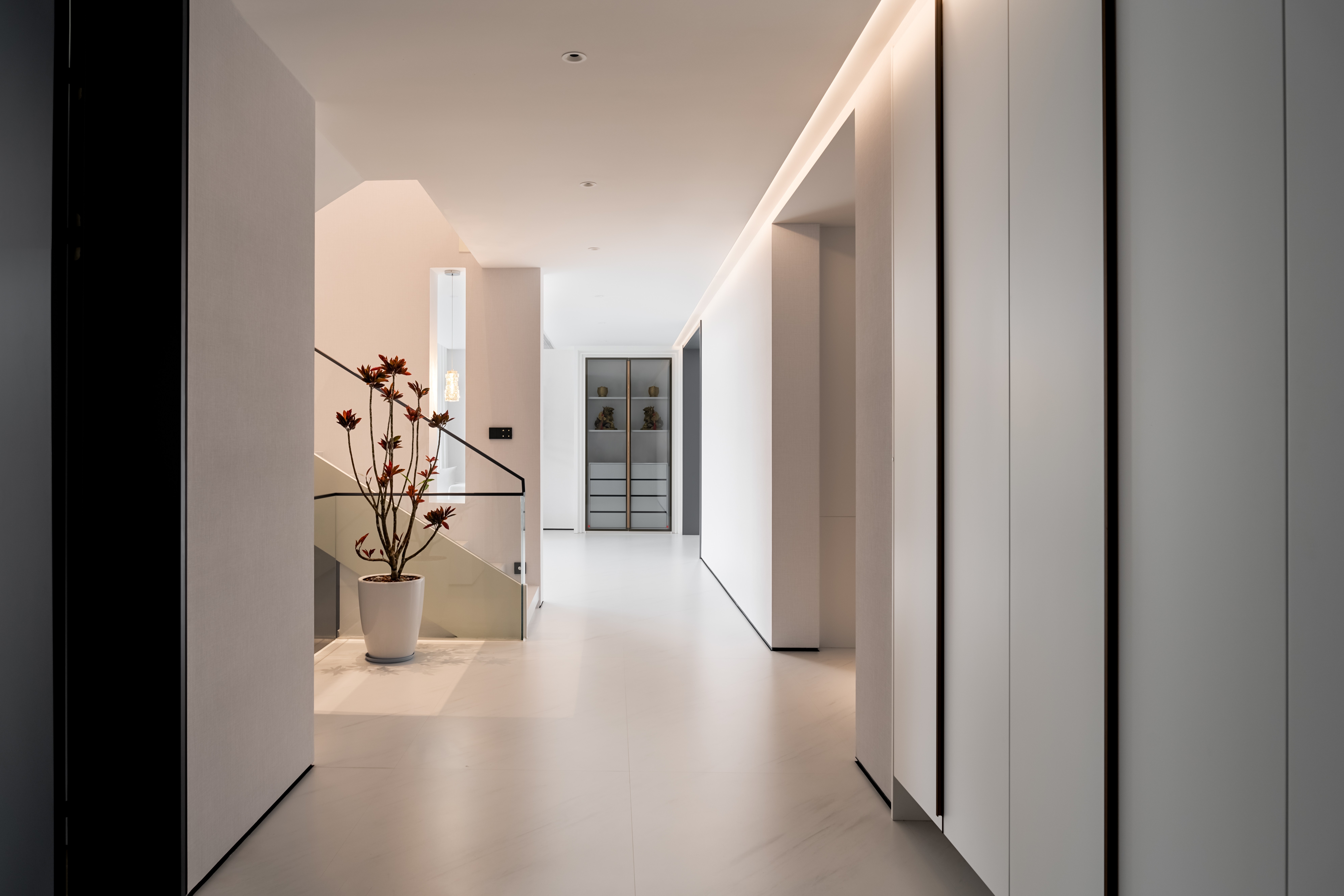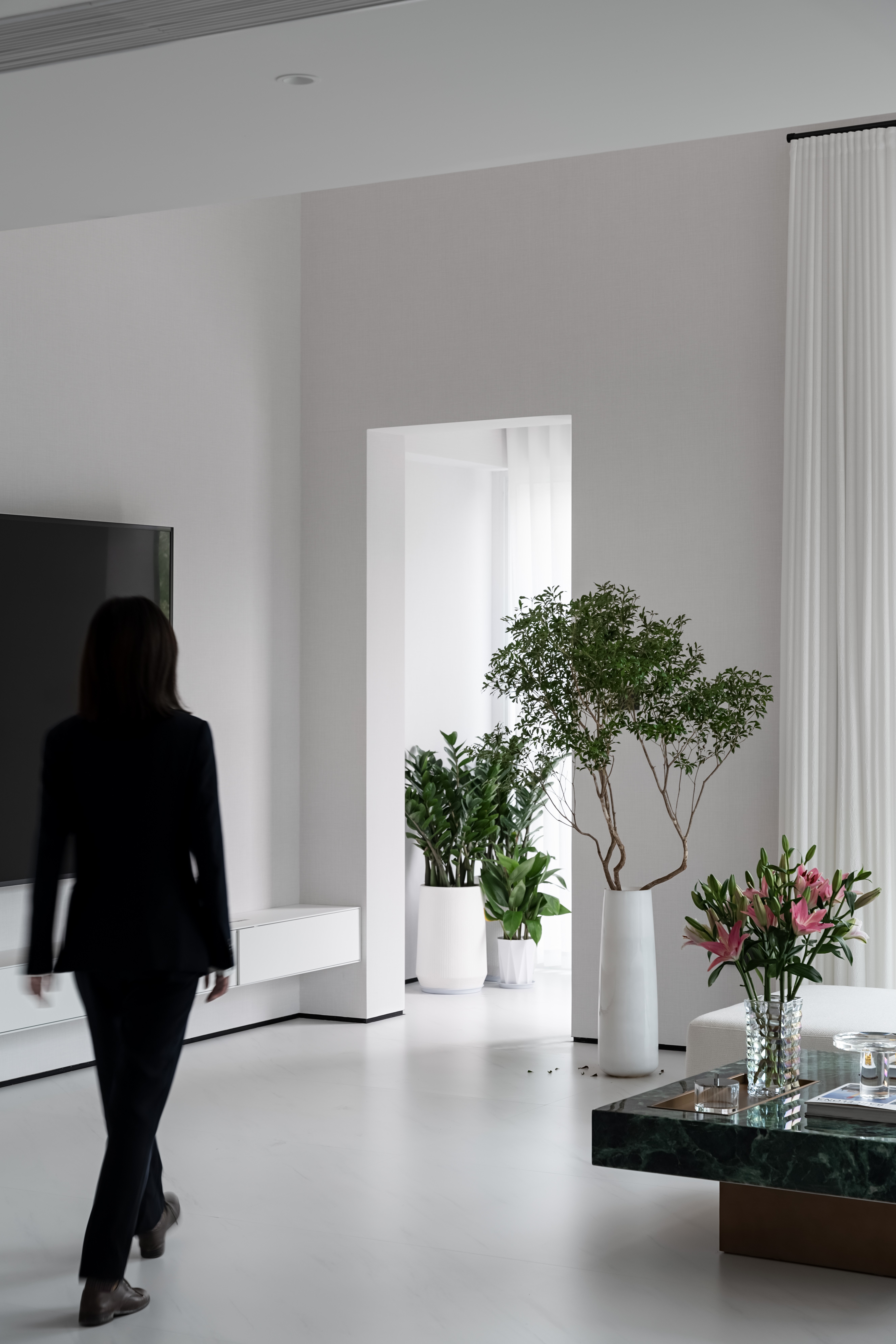 项目定位:本案位于风景秀丽的丽水白云山森林公园旁,是一处专为追求纯净和平静生活氛围的家庭而打造的居住空间。纯白色作为主色调,不仅放大了空间的感觉,还增强了光线的流动性,使整个空间显得清澈和宽敞。设计师运用空间留白的艺术手法,巧妙地保留了空间的无限可能。