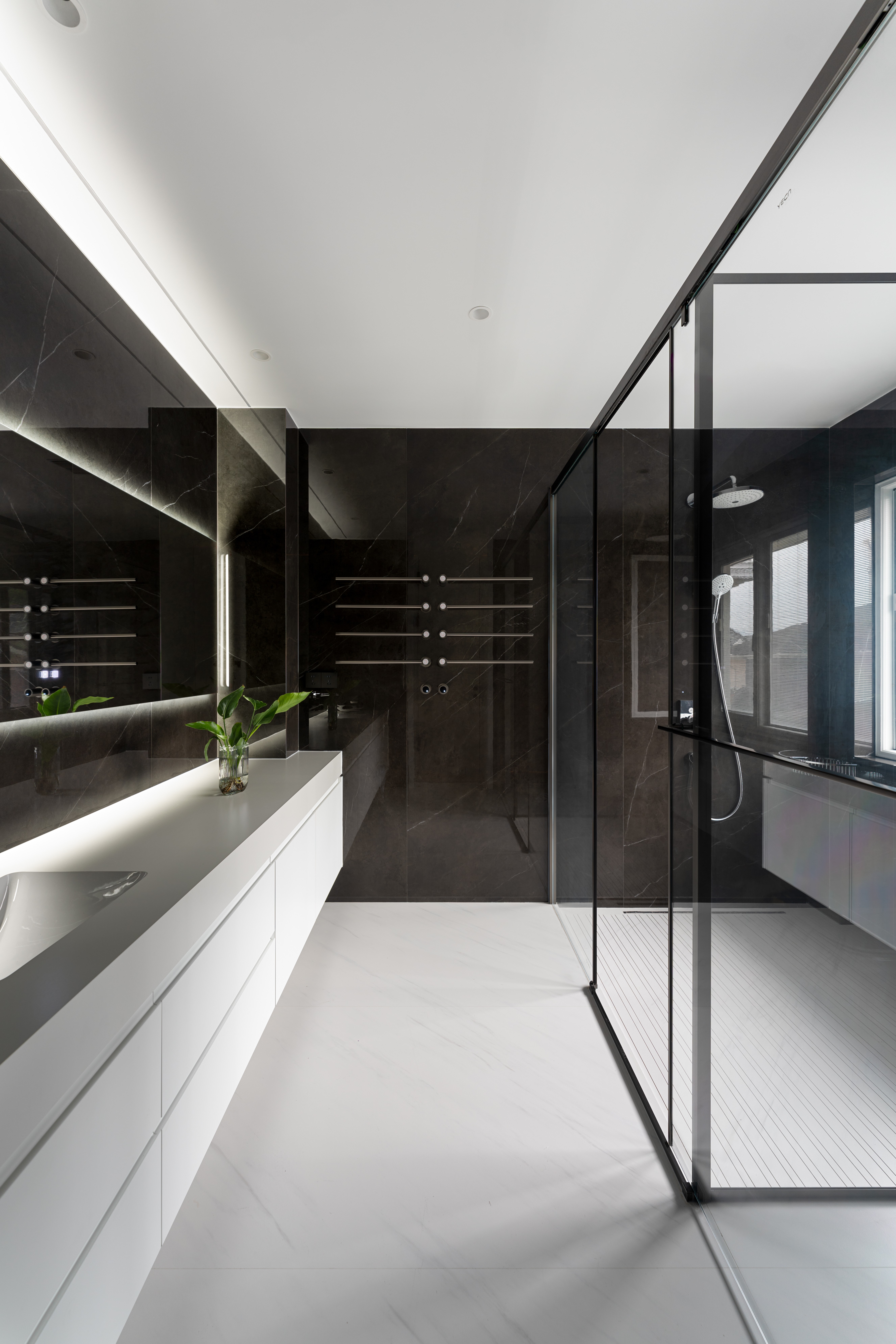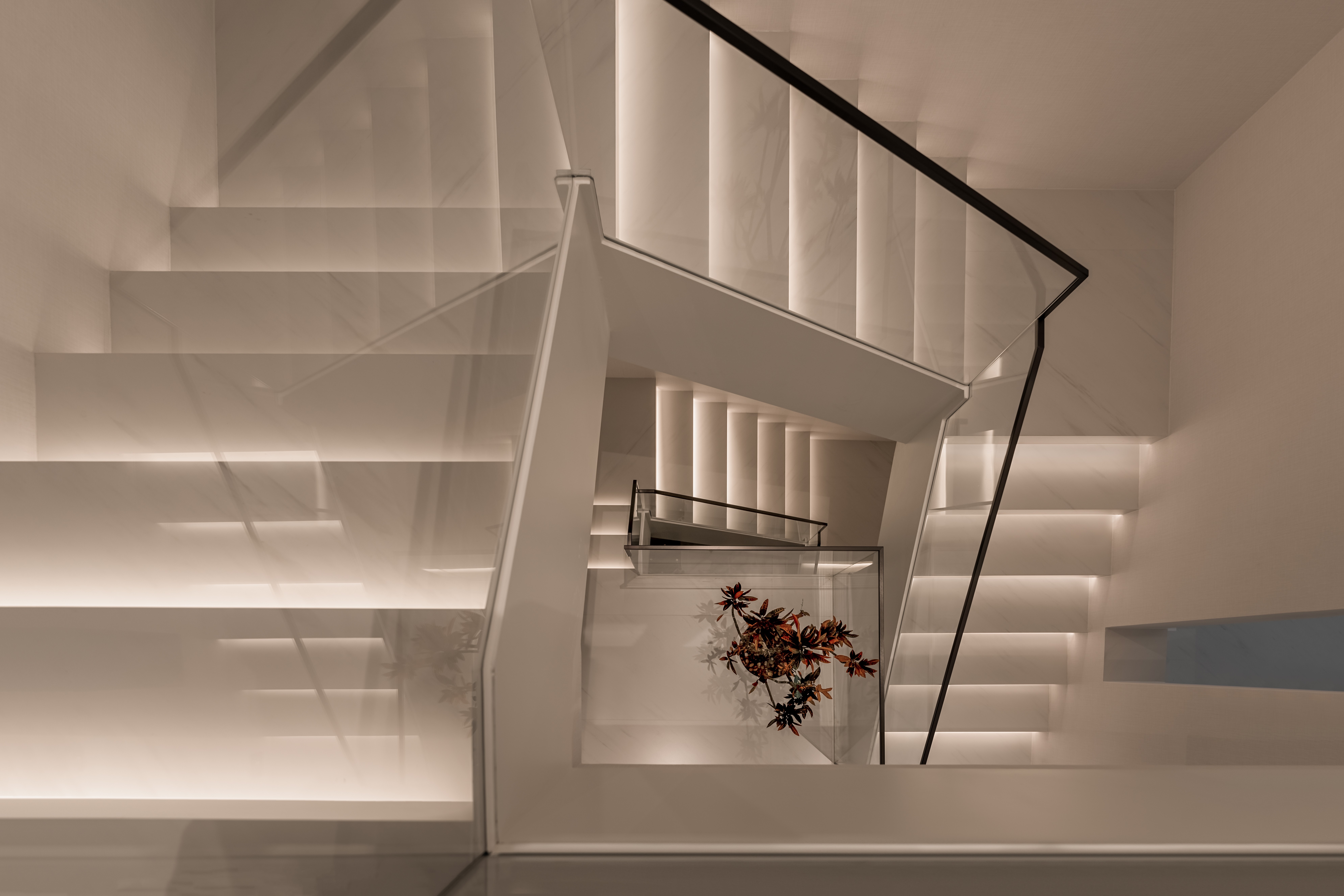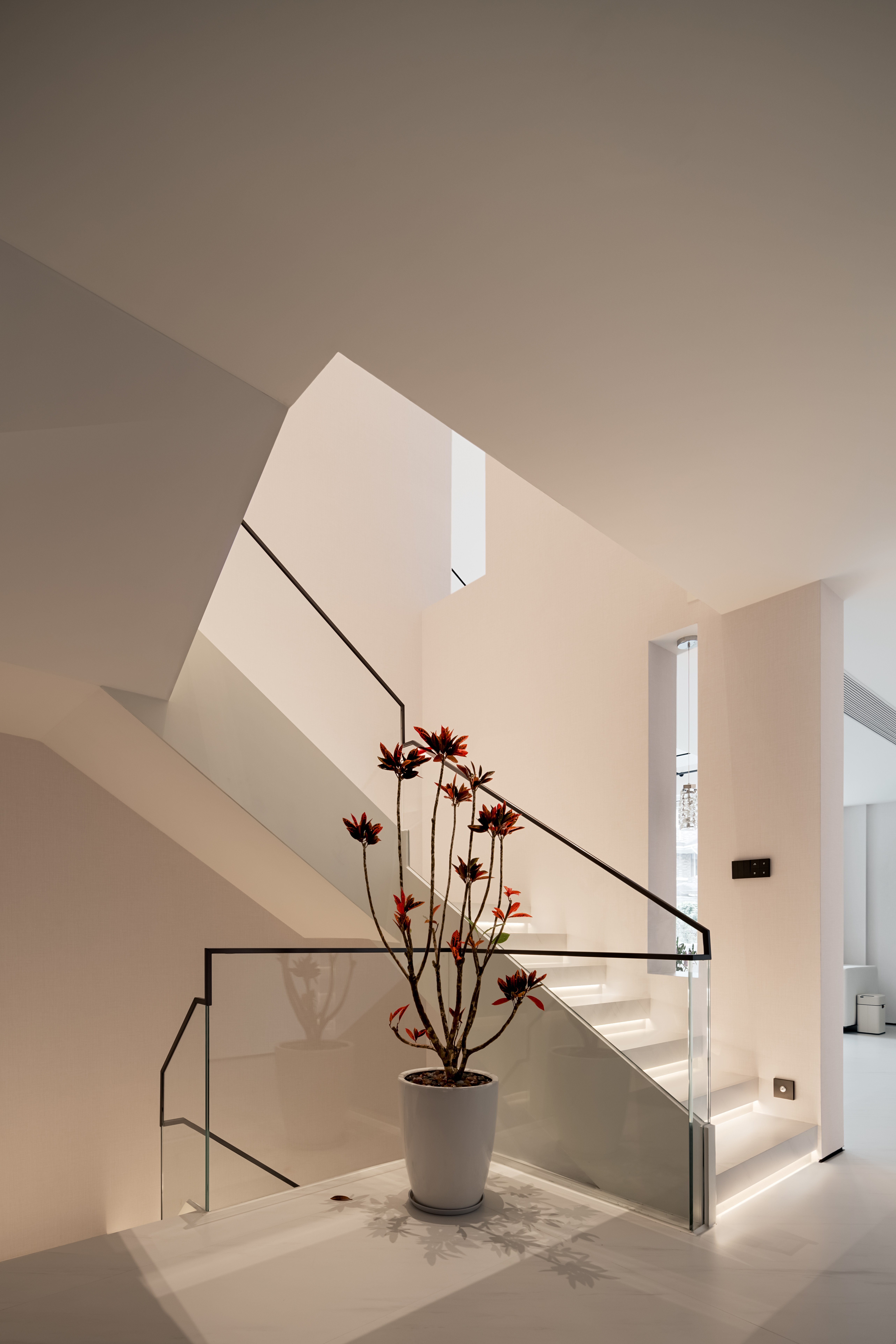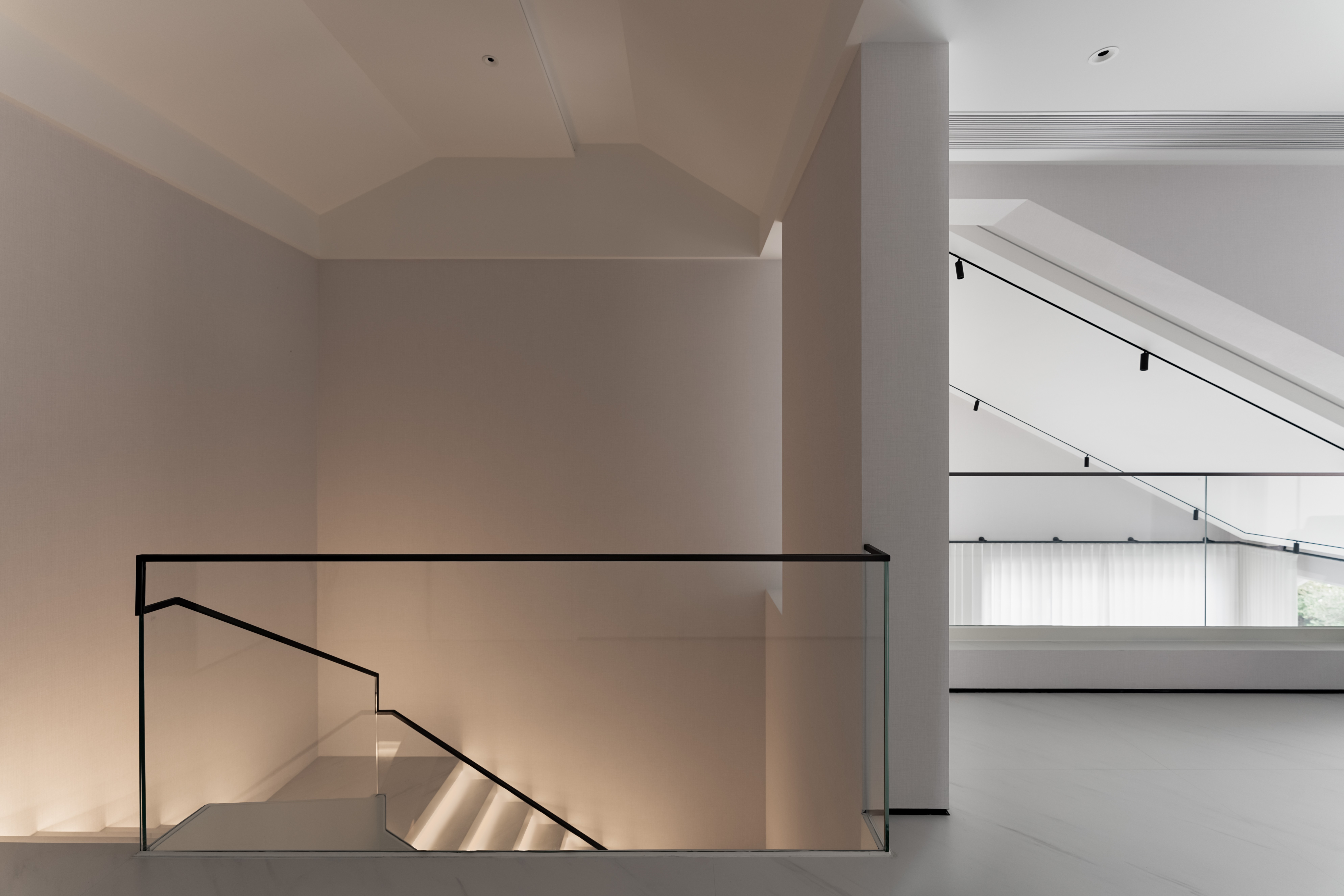 空间布局:客厅,纯粹 通透 静谧。餐厨,自由 合理 共生。楼梯,干净 利落 流畅。走廊,结构 艺术 律动。书房,平静 自律 协调。衣帽间&主卫,活泼 高效 悦己。公卫,雅致 深邃 极简。