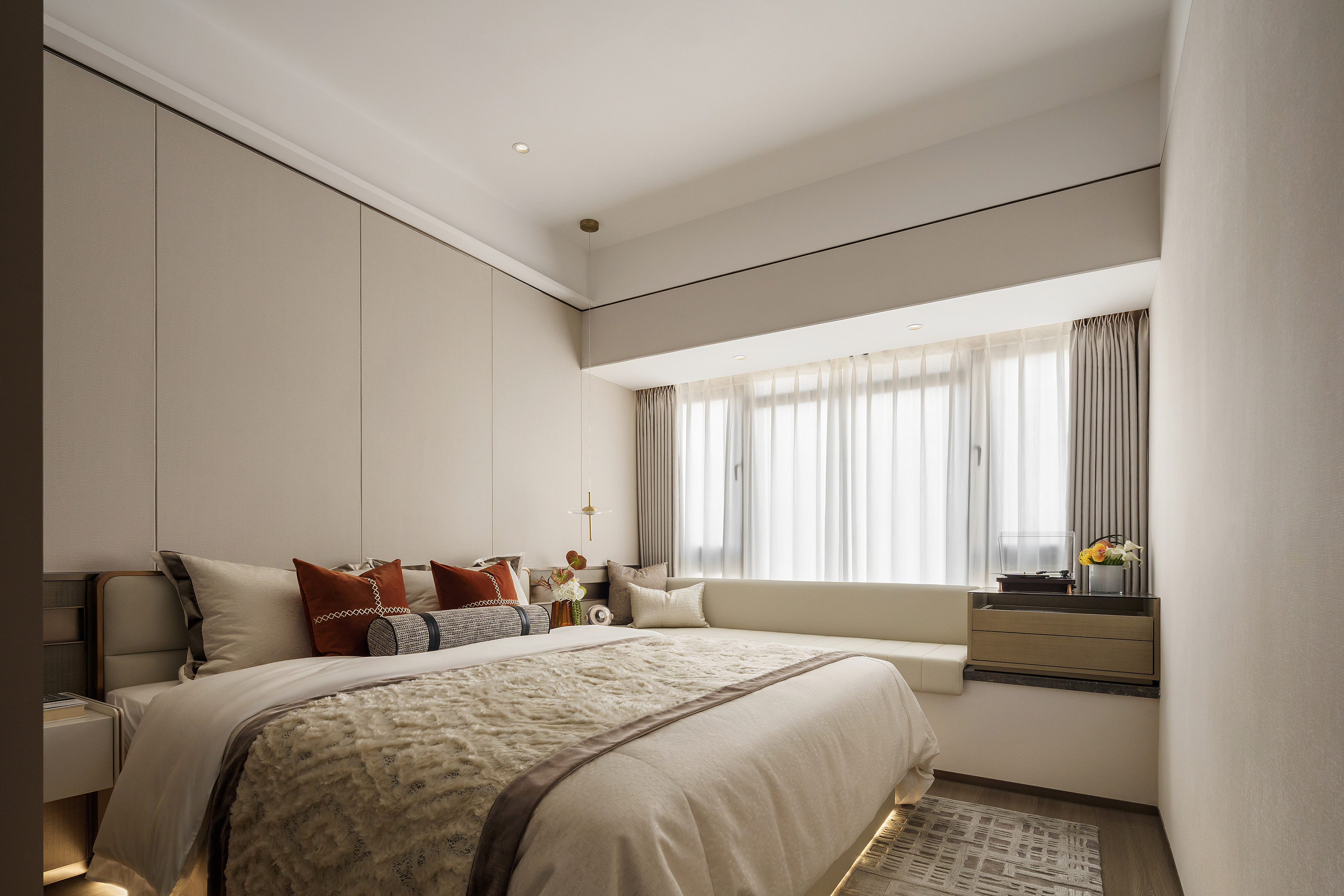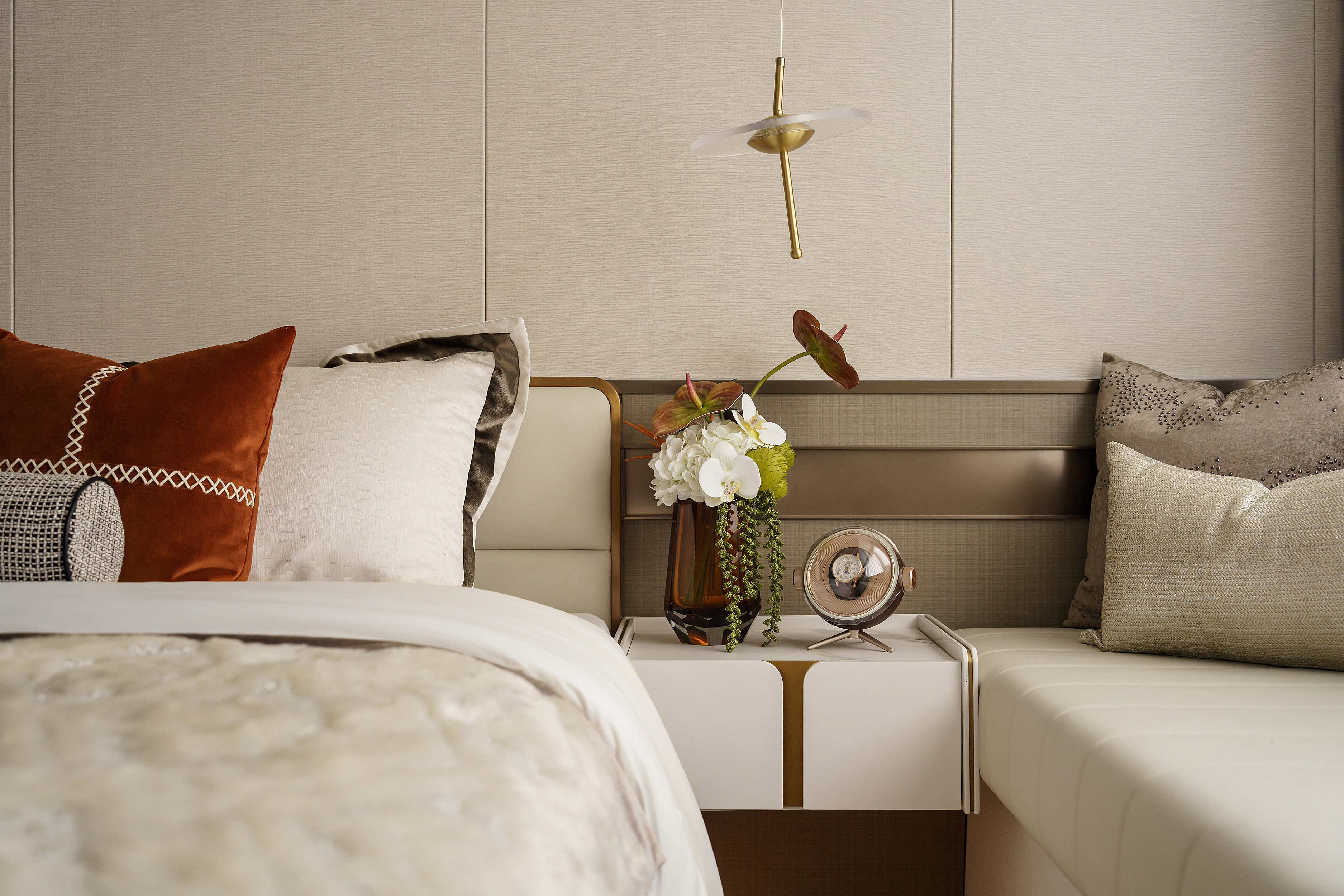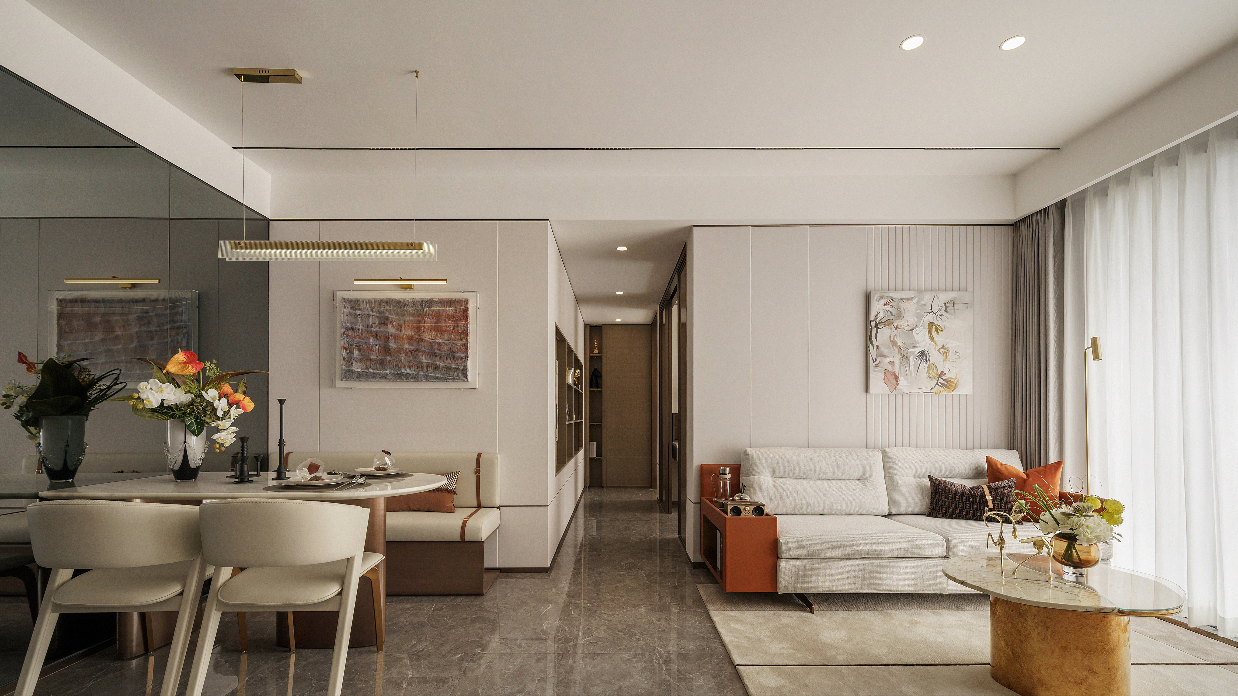 空间意境:以现代时尚,新贵奢享,自由舒适为关键词,生活挣脱了物质的垒叠和功能的负累,奢华由「极致享受」所定义。从空间动线、材质、家具、器物、艺术等诸方面入手,为生活提供信手拈来的艺术与氛围感。
