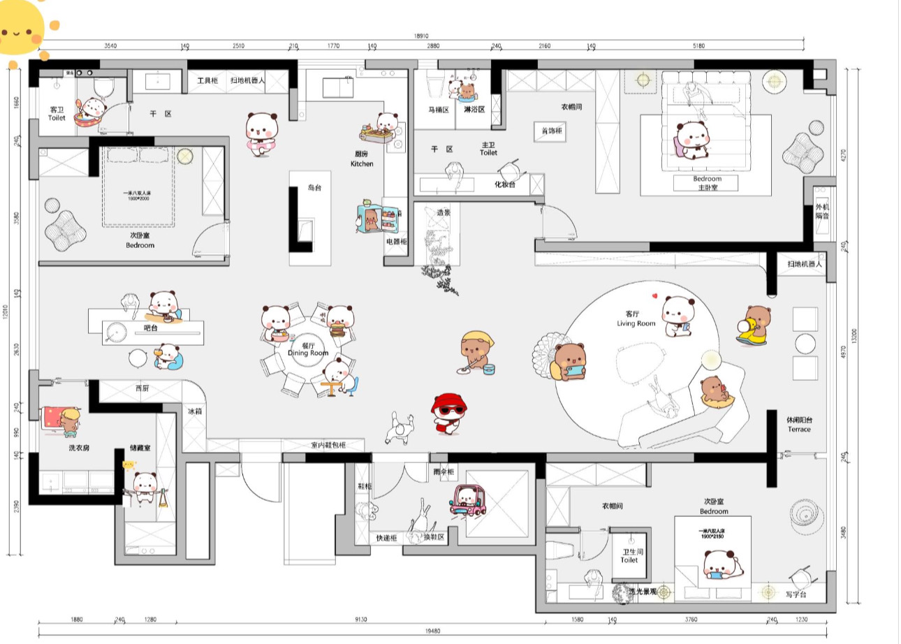 项目定位:在设计规划上我们把空间打通做大,把空间释放出来,让空间更具有幸福指数