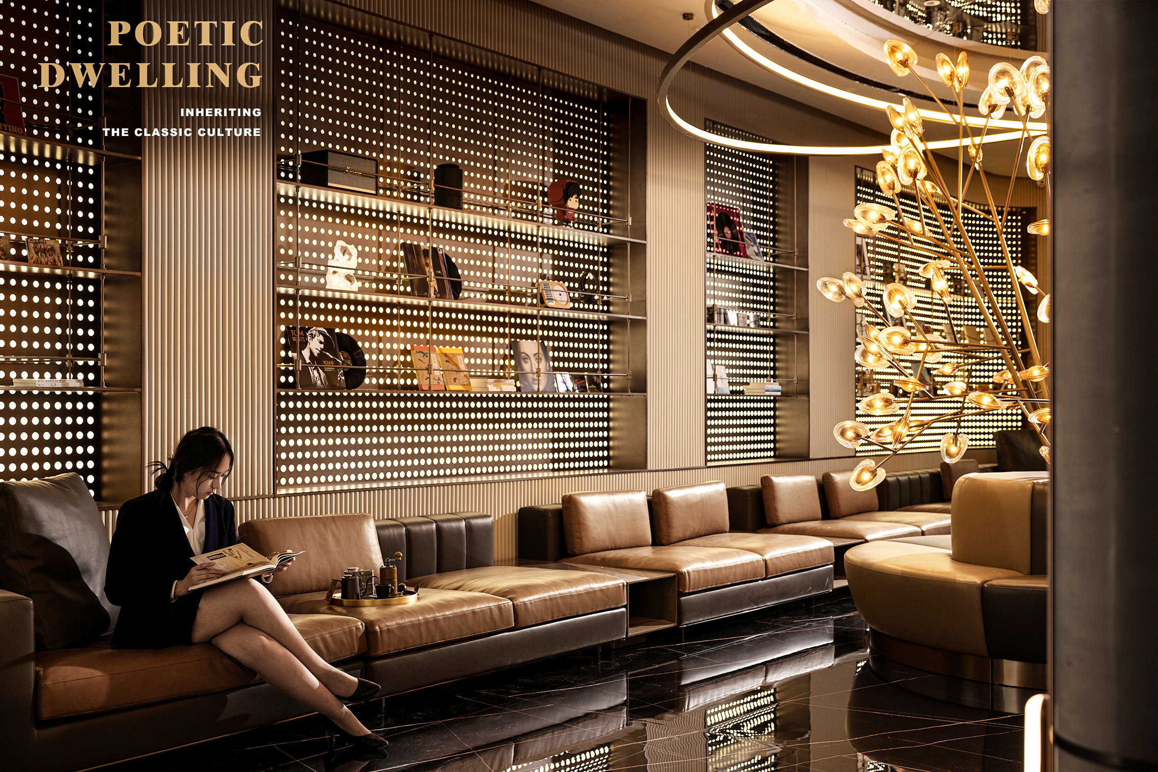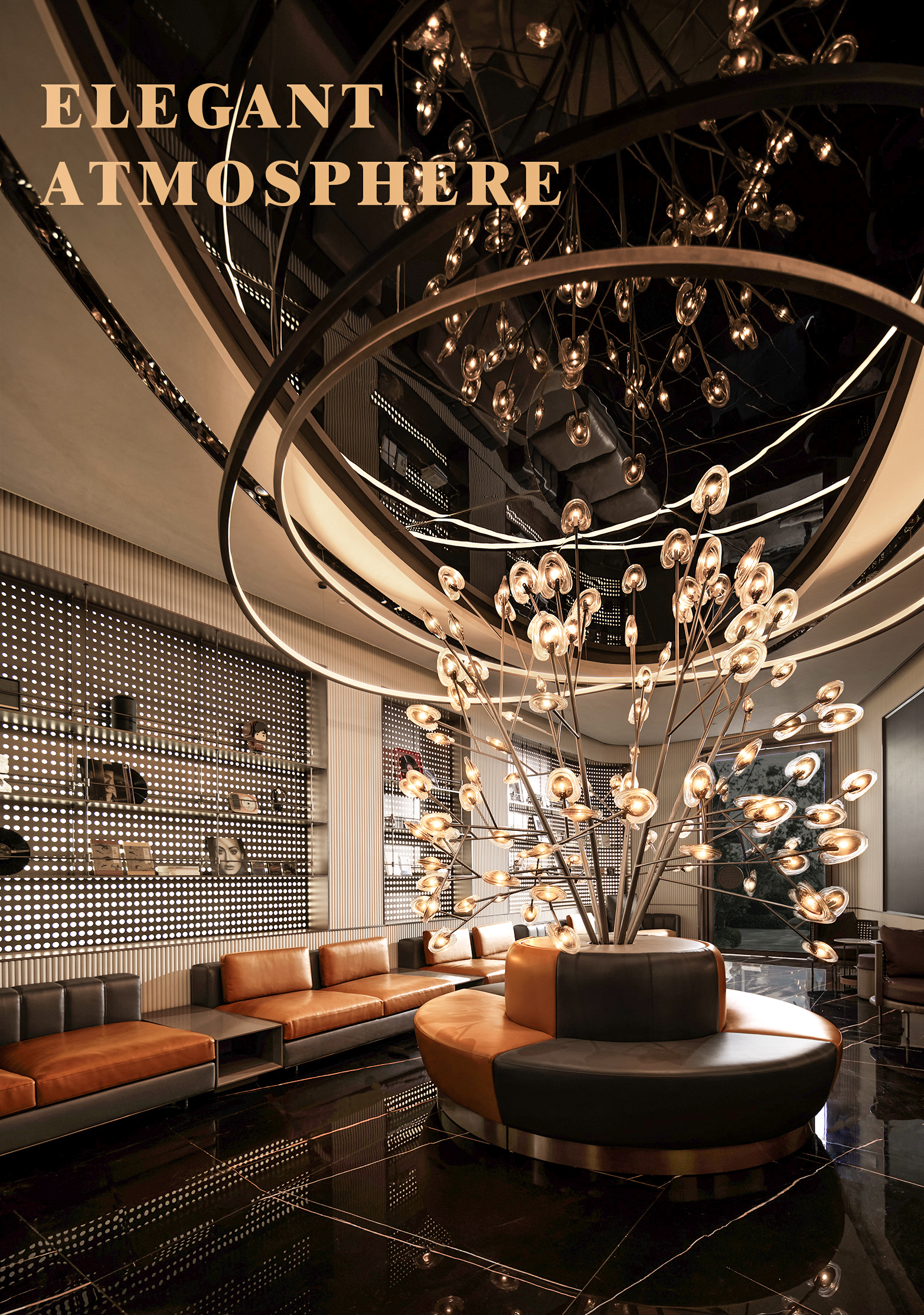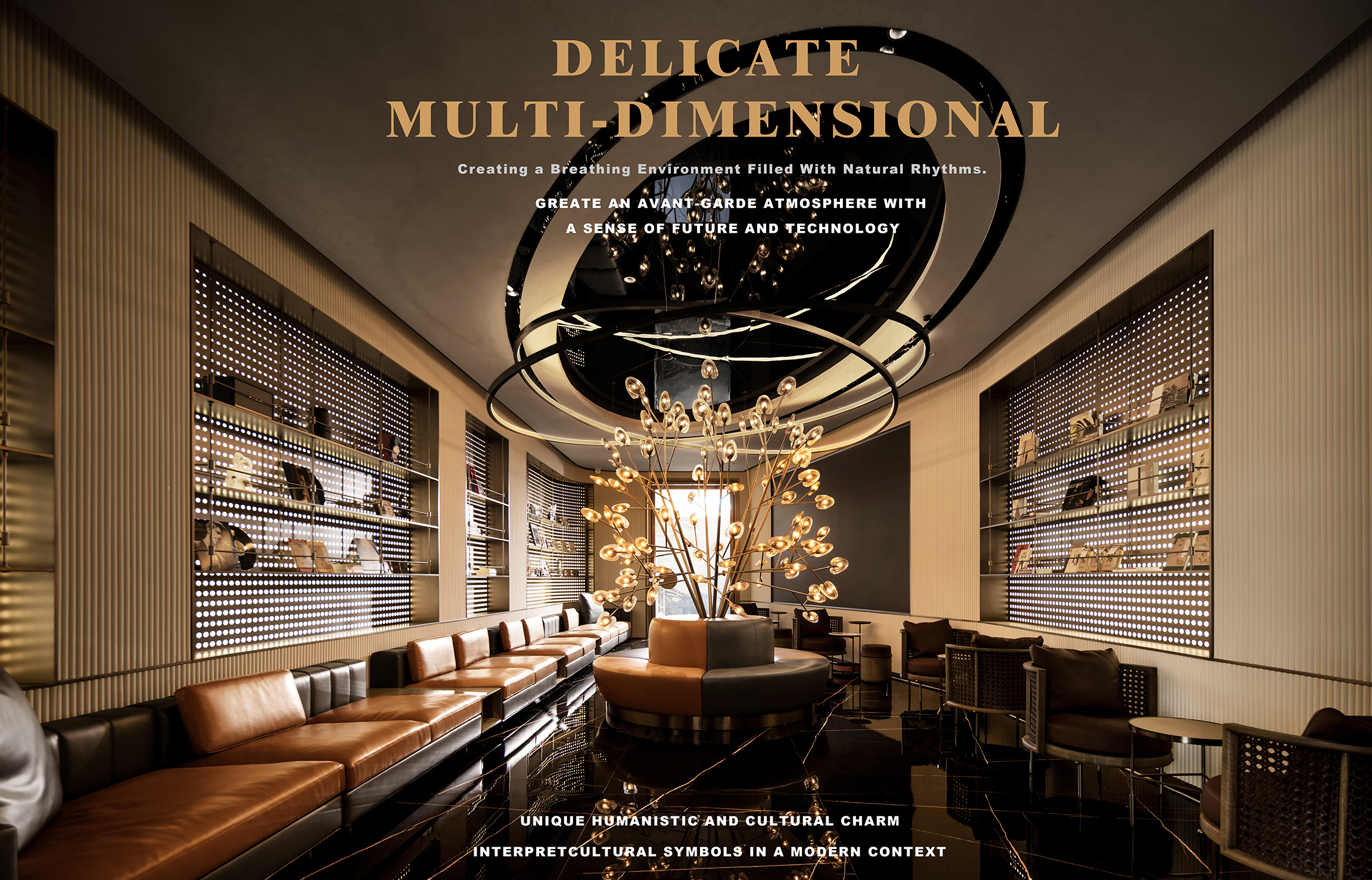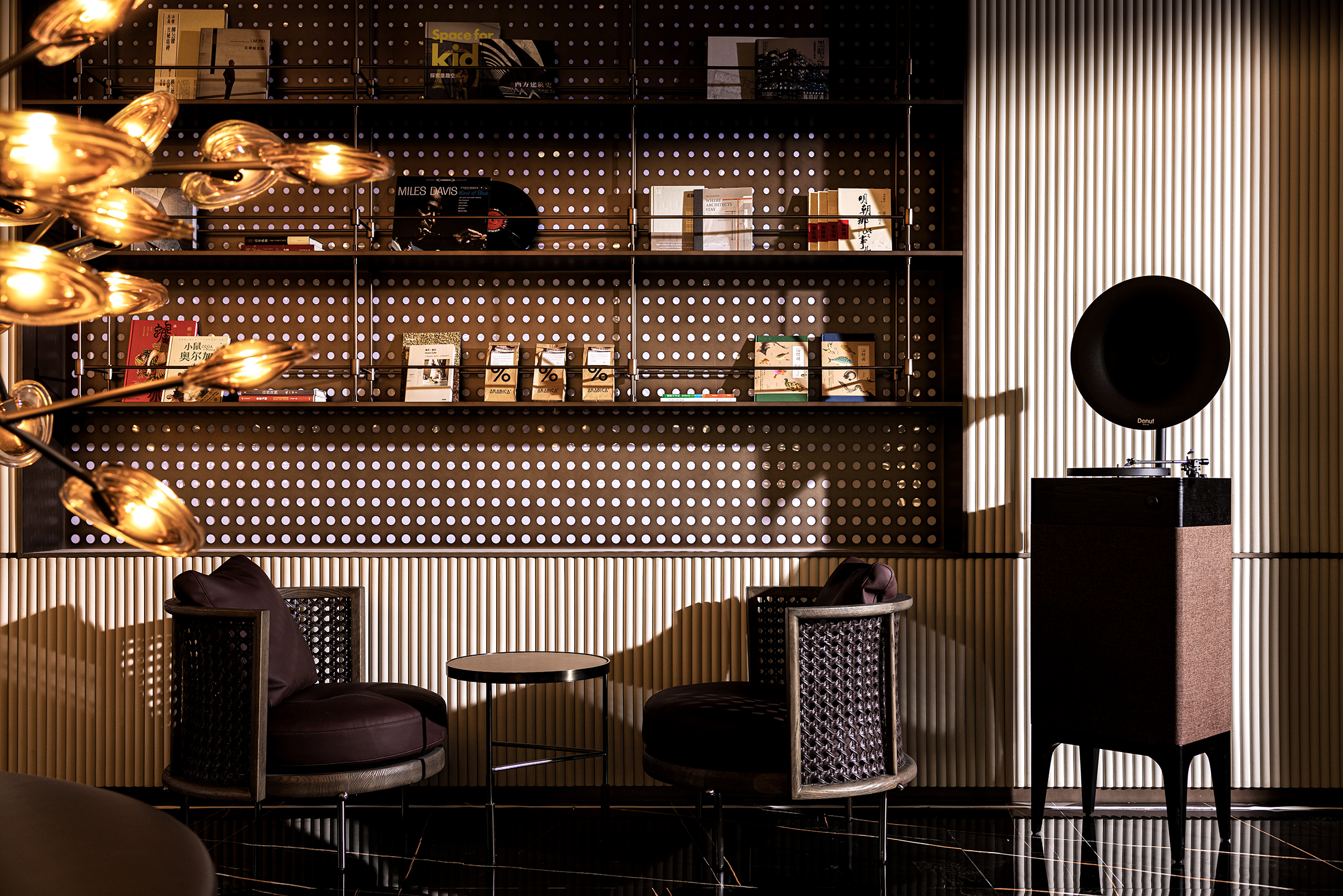 空间意境:空间体验具有多重感知性,灵动的弧形线条消除坚硬感,给予人温和又不失锐利的和谐感,也与场景的音乐生活主题相契合。