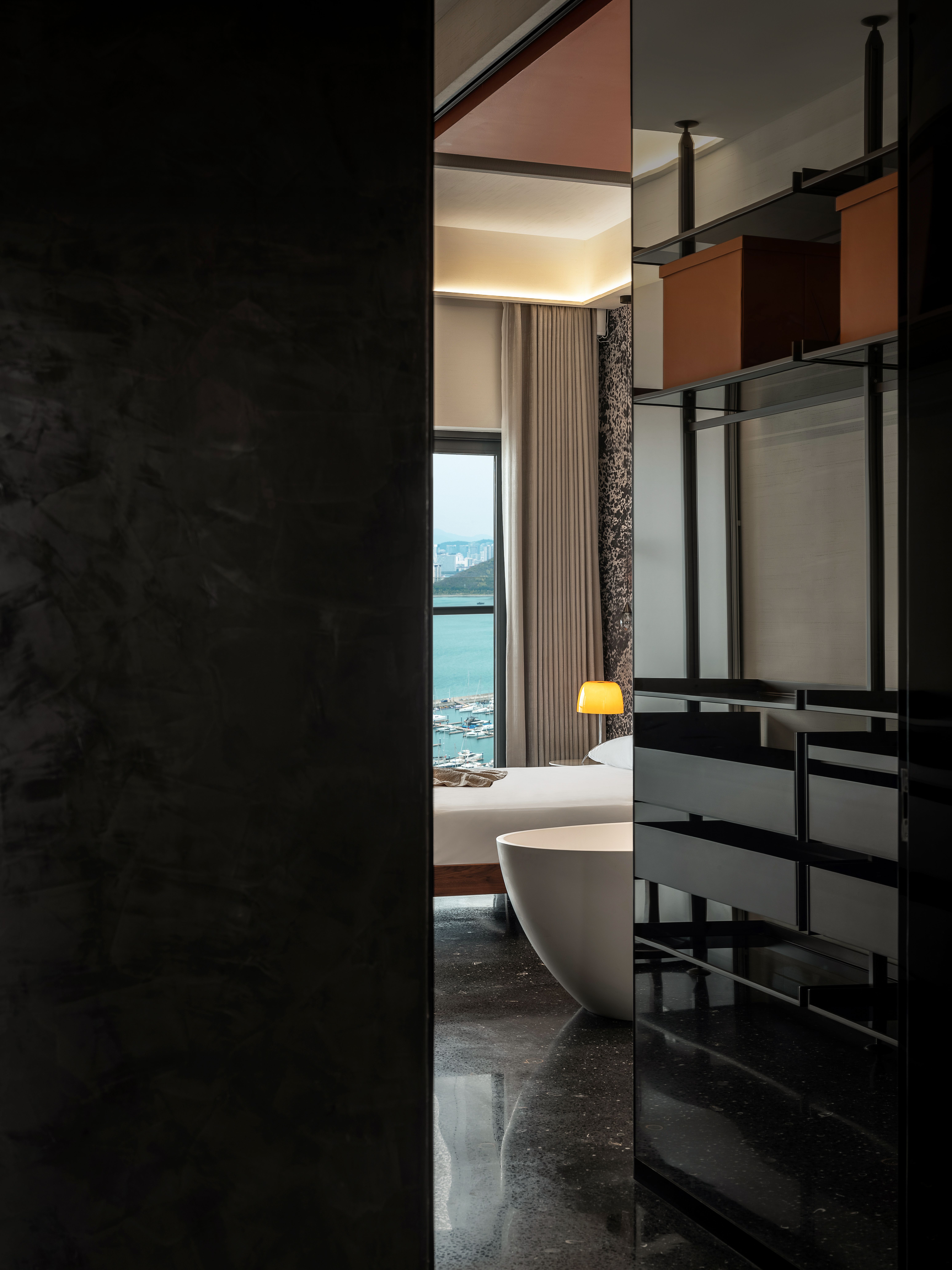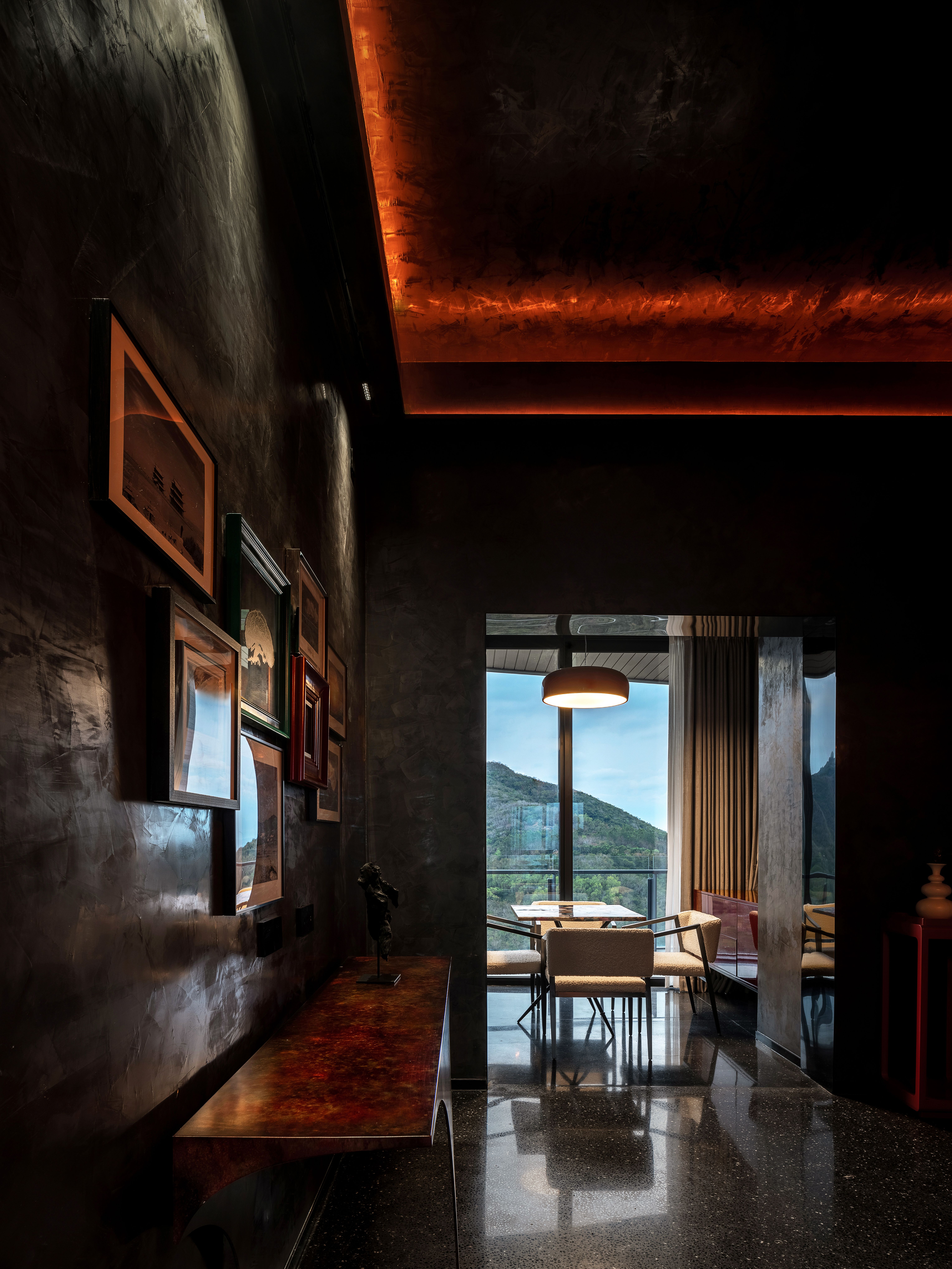用户体验:当客户踏入这片 “暗海幽居”,首先会被那浓郁而深邃的暗色系氛围紧紧包裹。从踏入的瞬间,一种远离尘世喧嚣的宁静感便油然而生,仿佛时间都在此刻慢了下来。夜晚来临,调暗灯光,空间被暖黄色与淡蓝色的光影交织笼罩。躺在舒适的床上,听着海浪拍打着岸边的声音,如同在大海的怀抱中安然入睡。清晨醒来,拉开窗帘,第一缕阳光和那清新的海风一同涌入,新的一天在这与海相伴的美好中缓缓开启。在这里,客户能真正地放松身心,让灵魂得到滋养,与大自然深度对话,每一次入住都像是一场心灵的归旅。