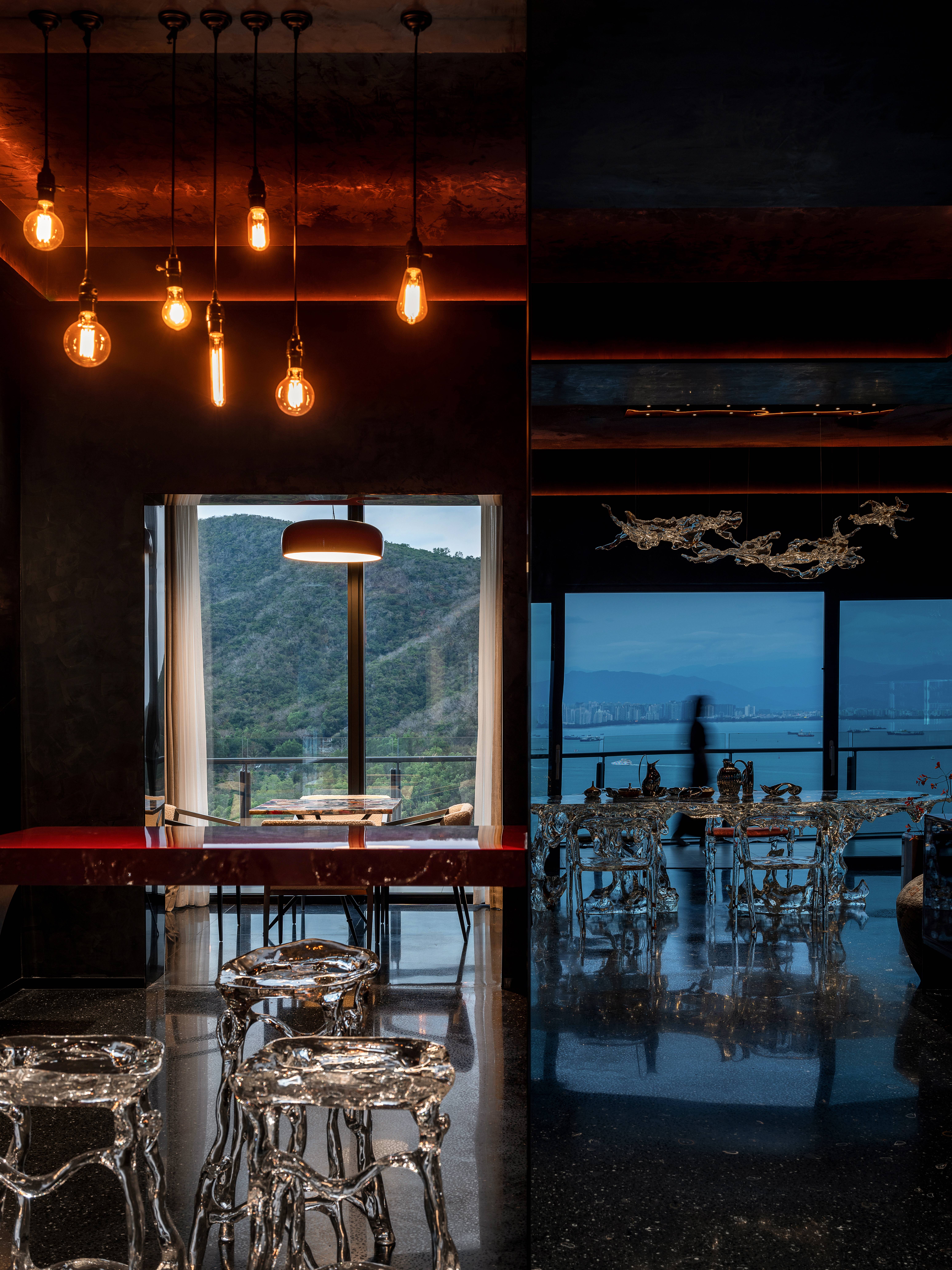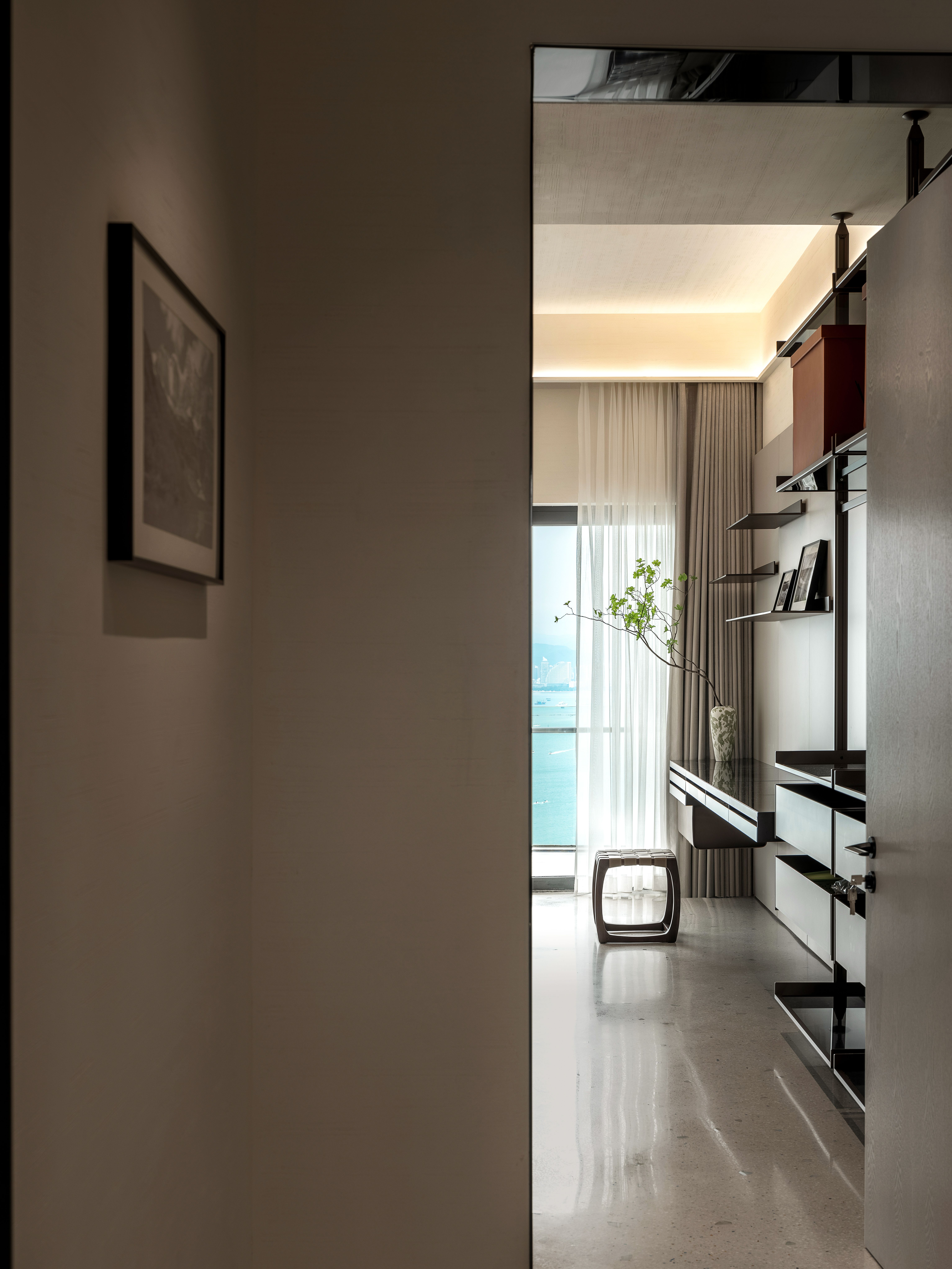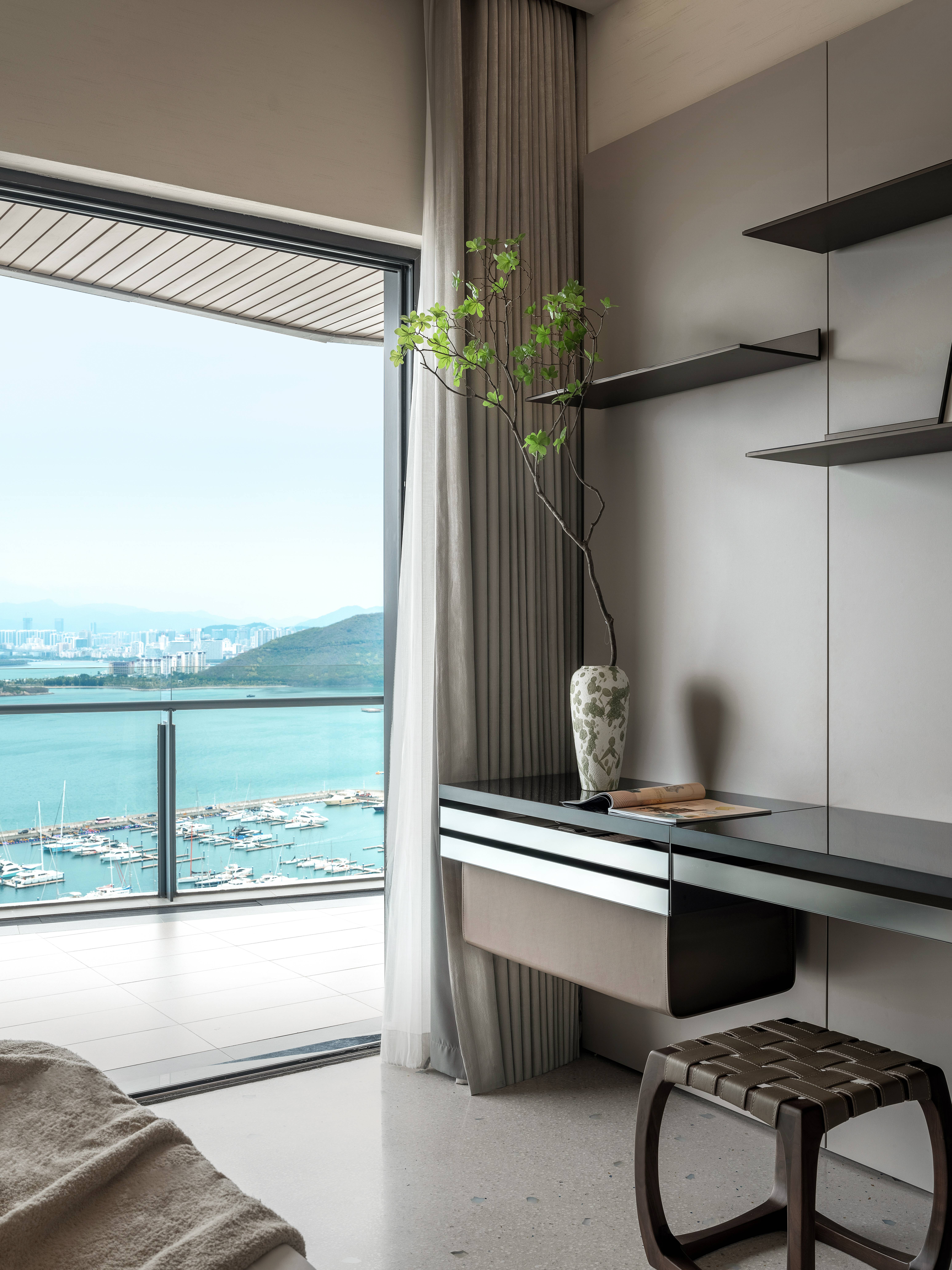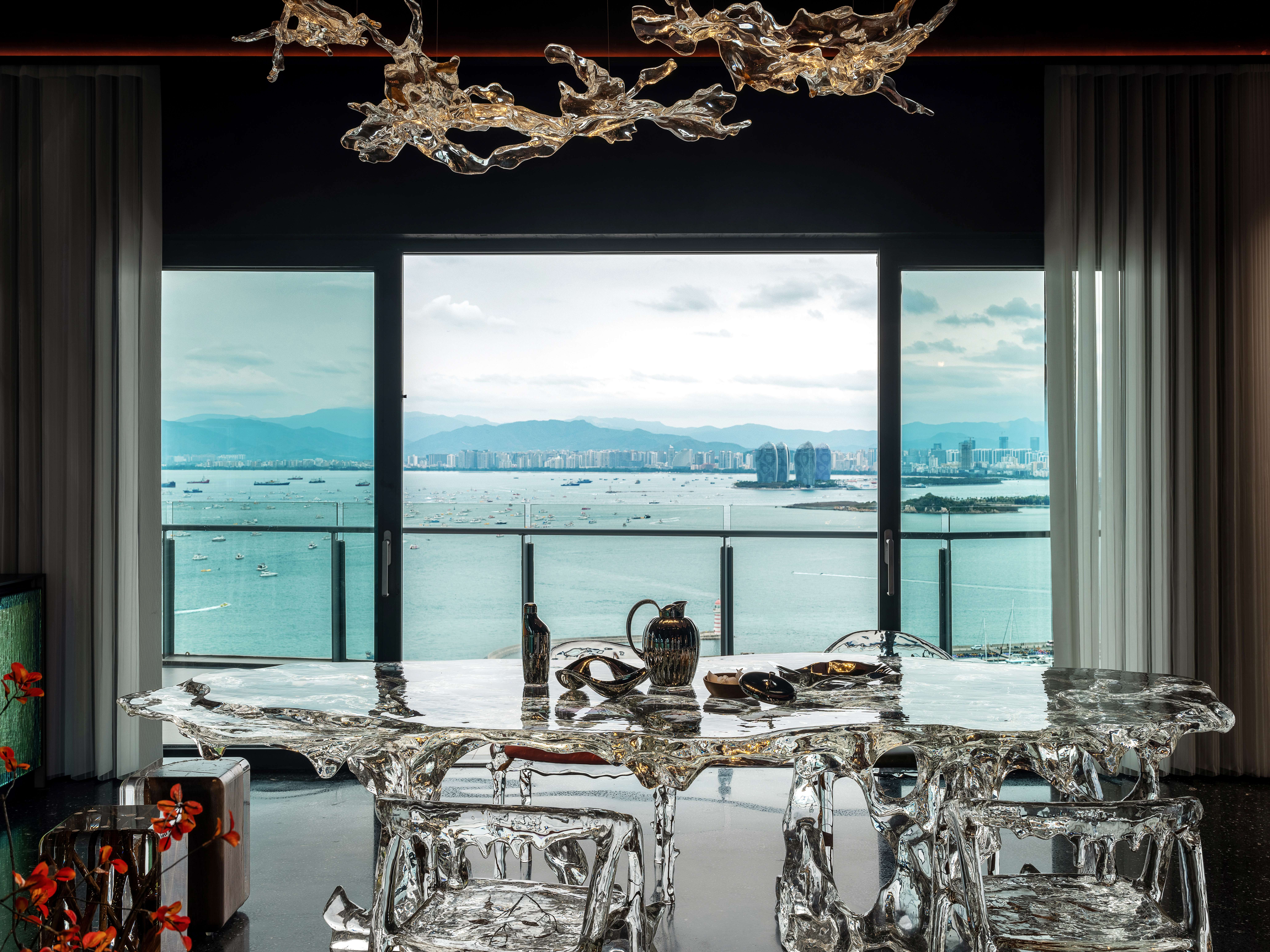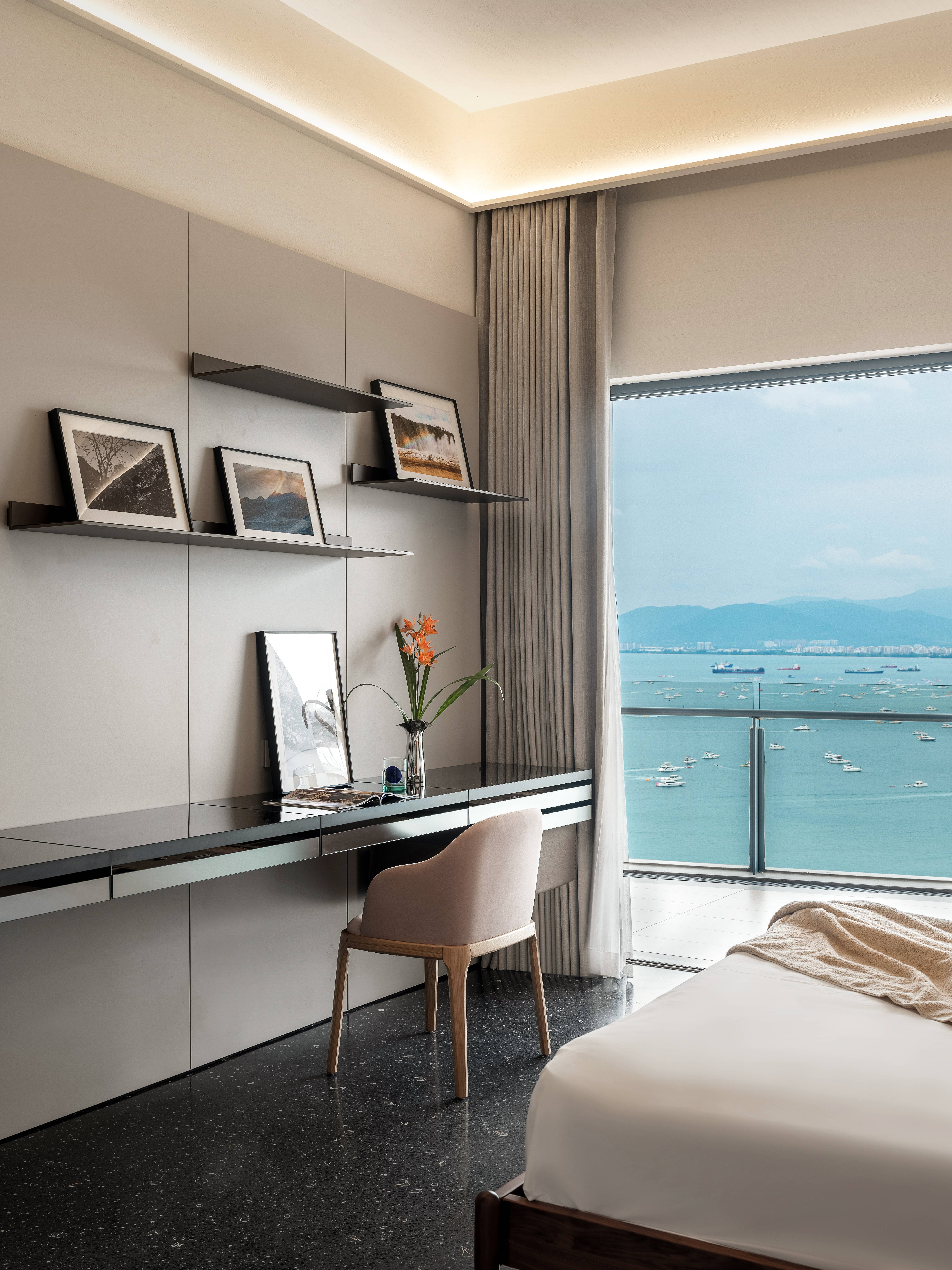 玻璃、镜面、铂晶亚克力等通透材质也被大量运用。玻璃透明度高、采光好,使大海景色映入室内,拓展空间层次;镜面利用反射强化视觉延伸;铂晶亚克力质轻高强、光泽度高,用于装饰细节与造型。它们相互搭配,构建空间与大海的深度交流,在实现设计效果同时优化选材经济性,达成视觉与成本的平衡,为空间注入独特魅力,让入住者感受自然与人文的交融。 -