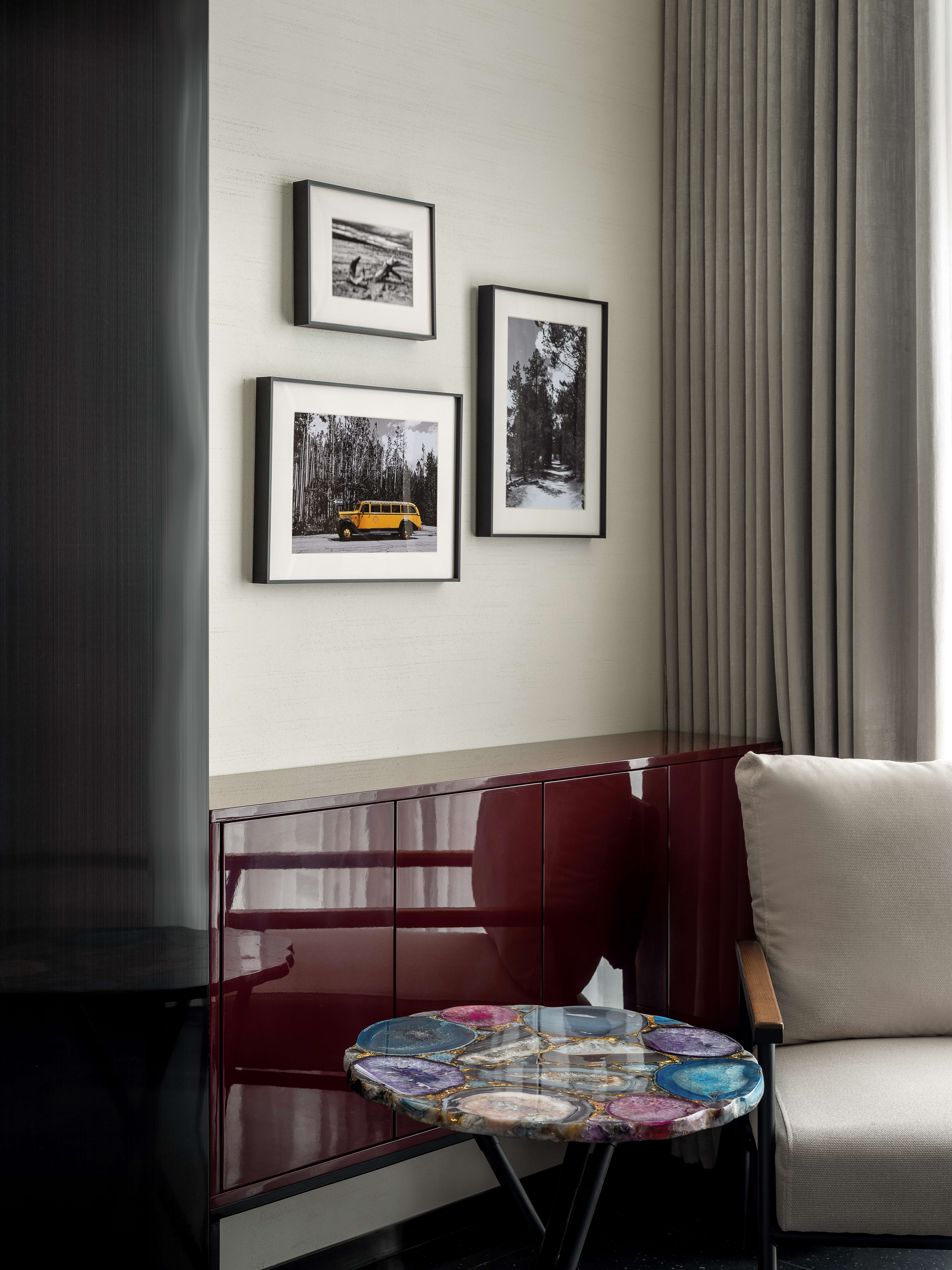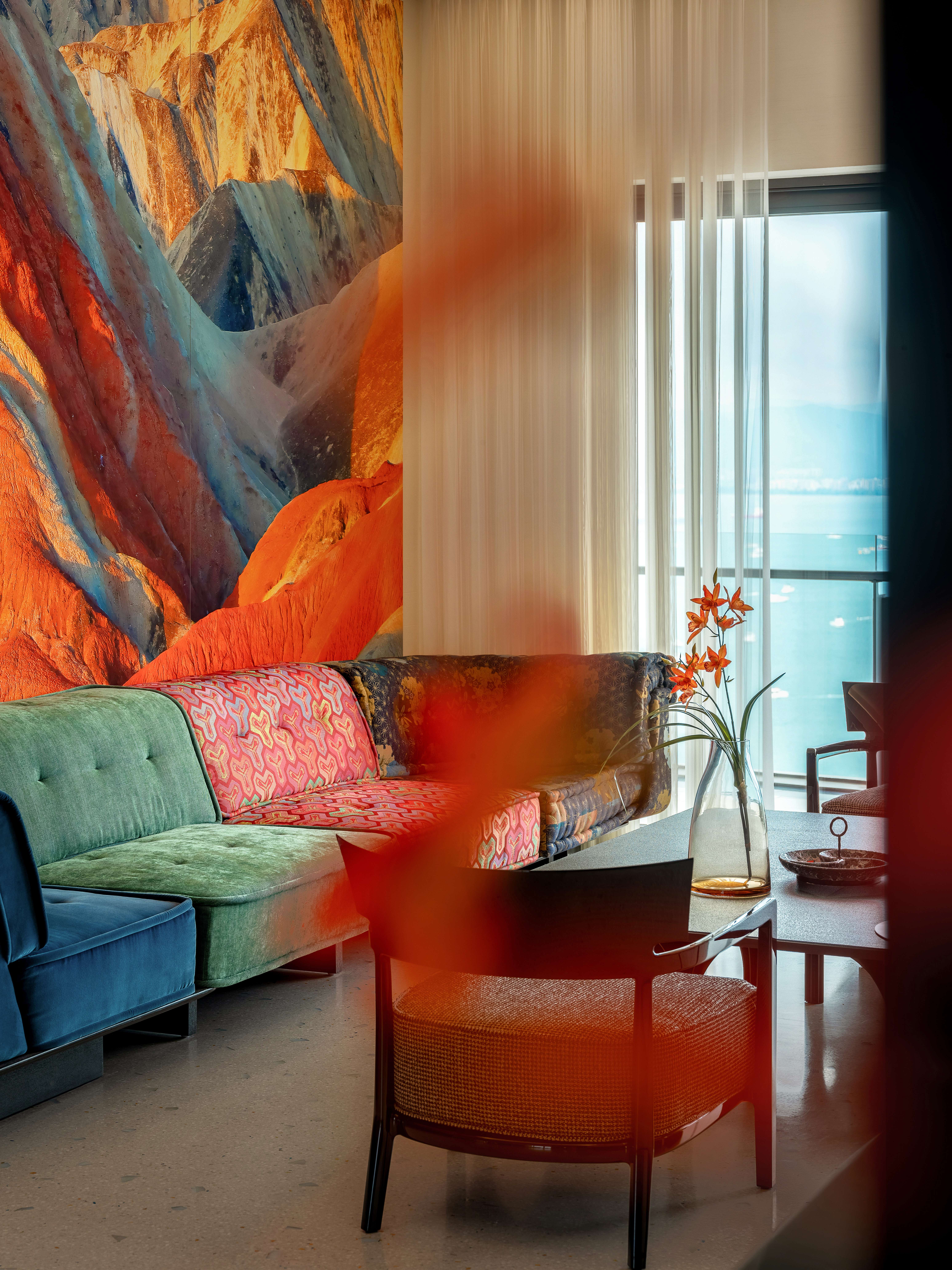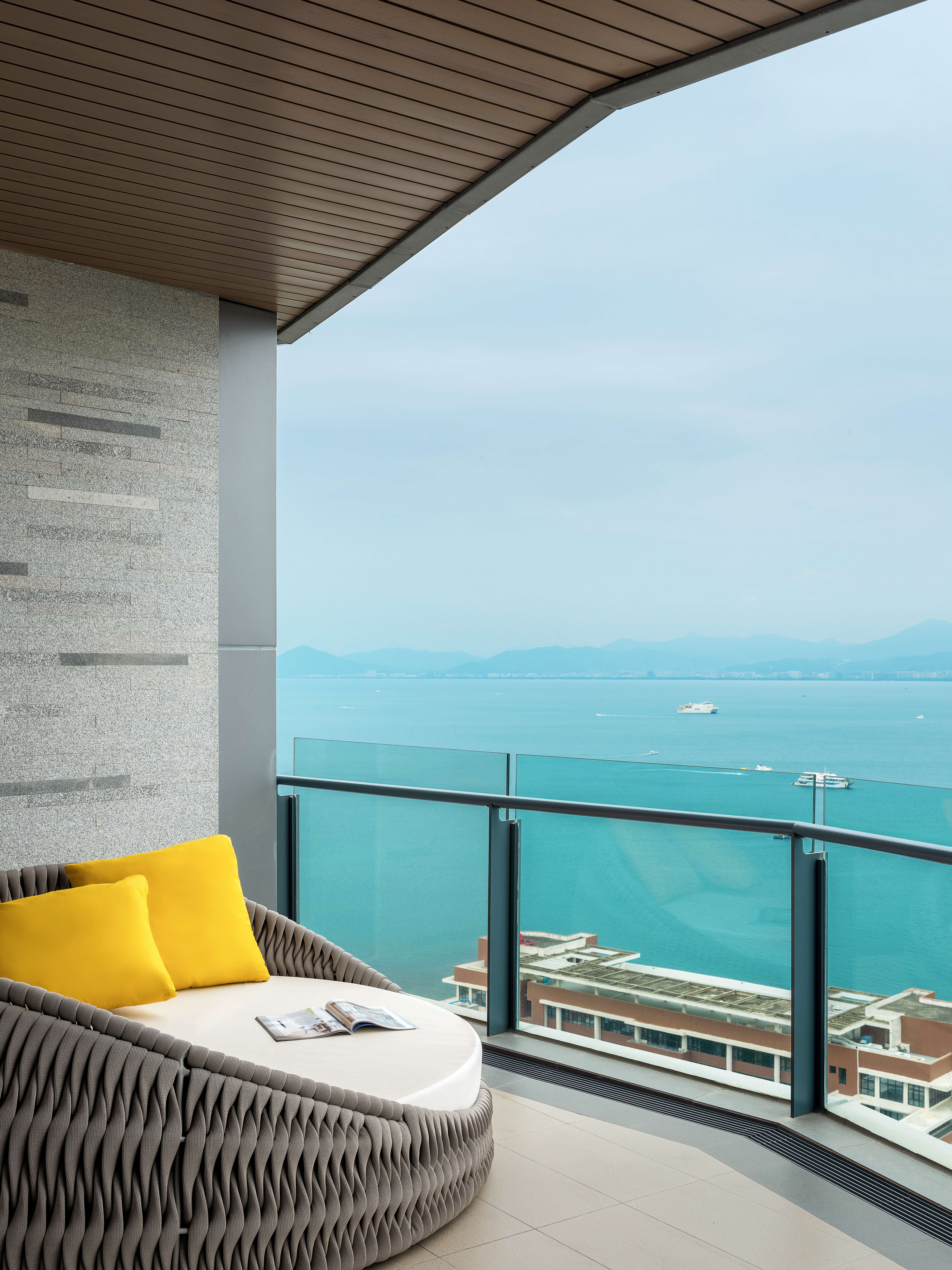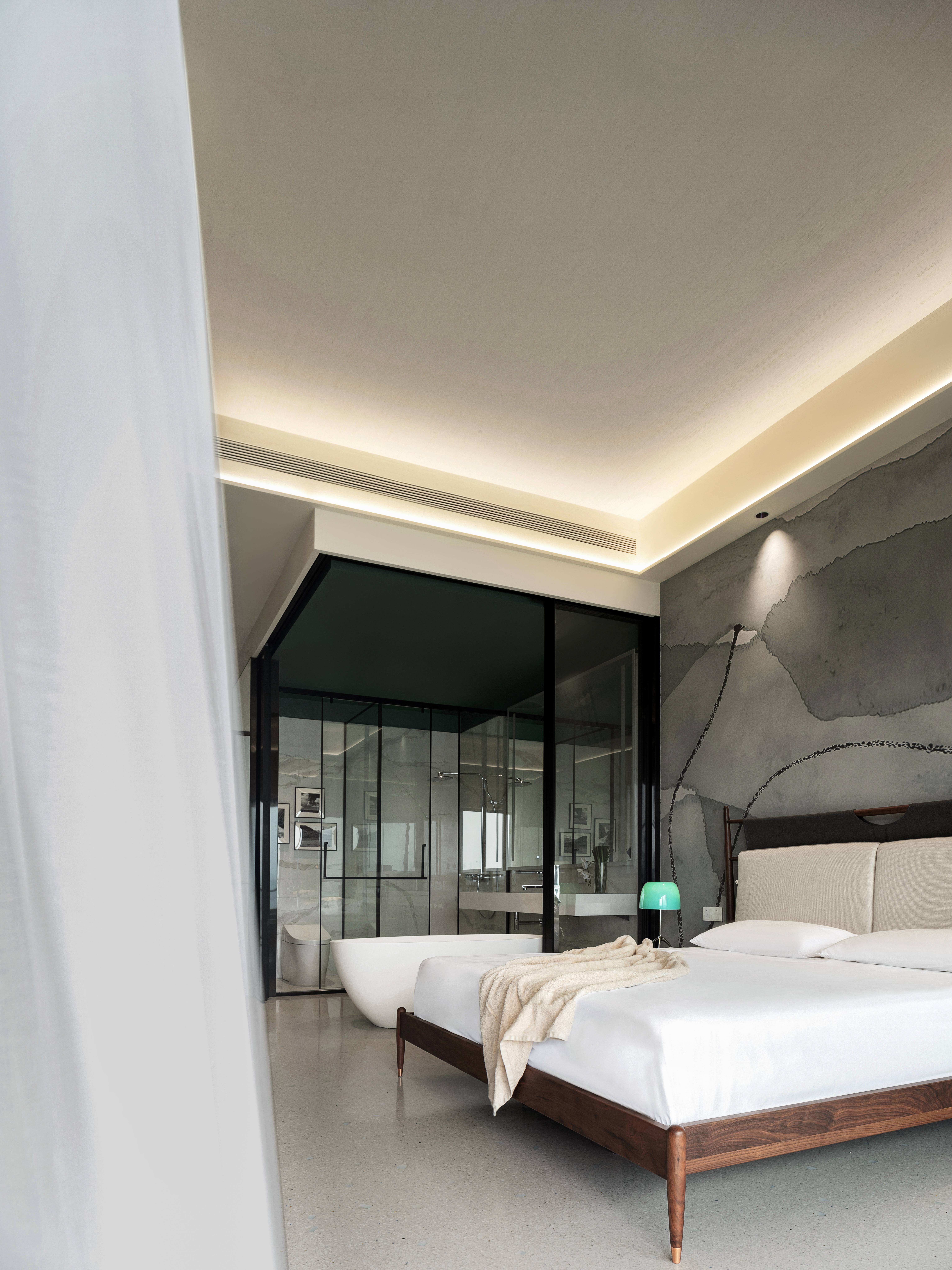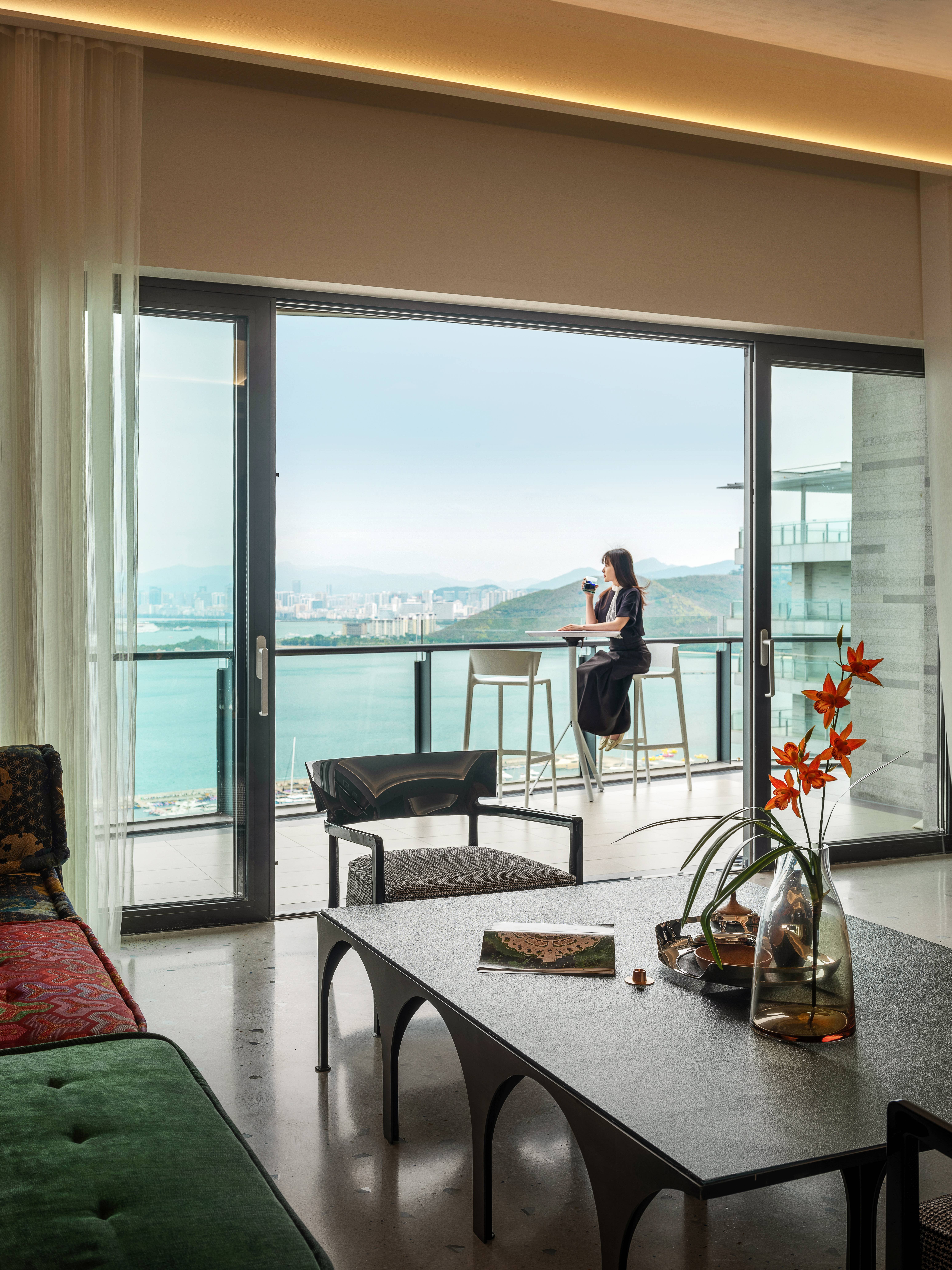 玻璃、镜面、铂晶亚克力等通透材质也被大量运用。玻璃透明度高、采光好,使大海景色映入室内,拓展空间层次;镜面利用反射强化视觉延伸;铂晶亚克力质轻高强、光泽度高,用于装饰细节与造型。它们相互搭配,构建空间与大海的深度交流,在实现设计效果同时优化选材经济性,达成视觉与成本的平衡,为空间注入独特魅力,让入住者感受自然与人文的交融。 -