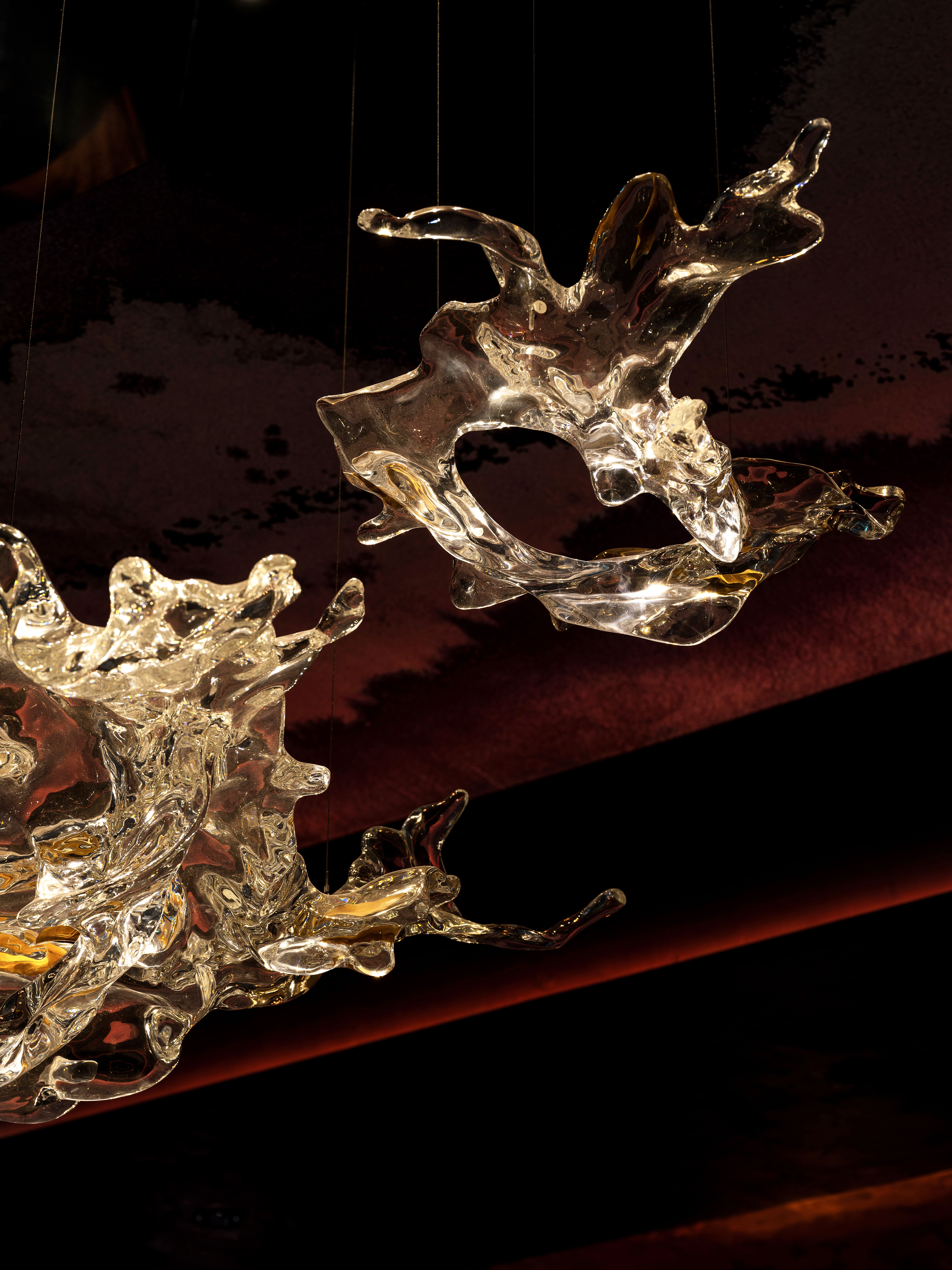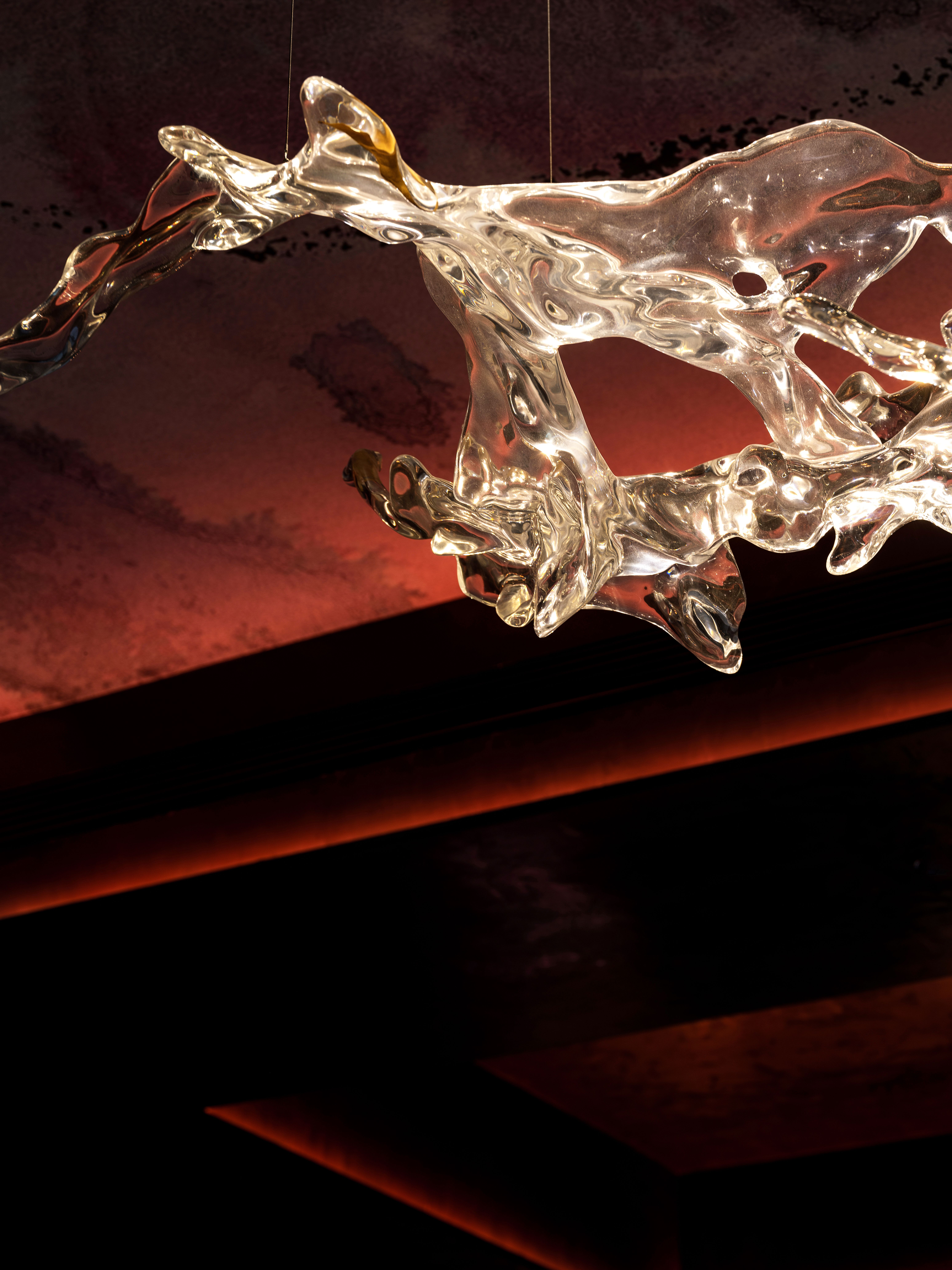 巧妙地运用贝壳、石子、水晶、玻璃材质,将大海的元素引入室内,实现空间与自然的深度交融与对话,让人们在室内也能感受到大海的磅骥与宁静,体验到与海共呼吸的奇妙感受。