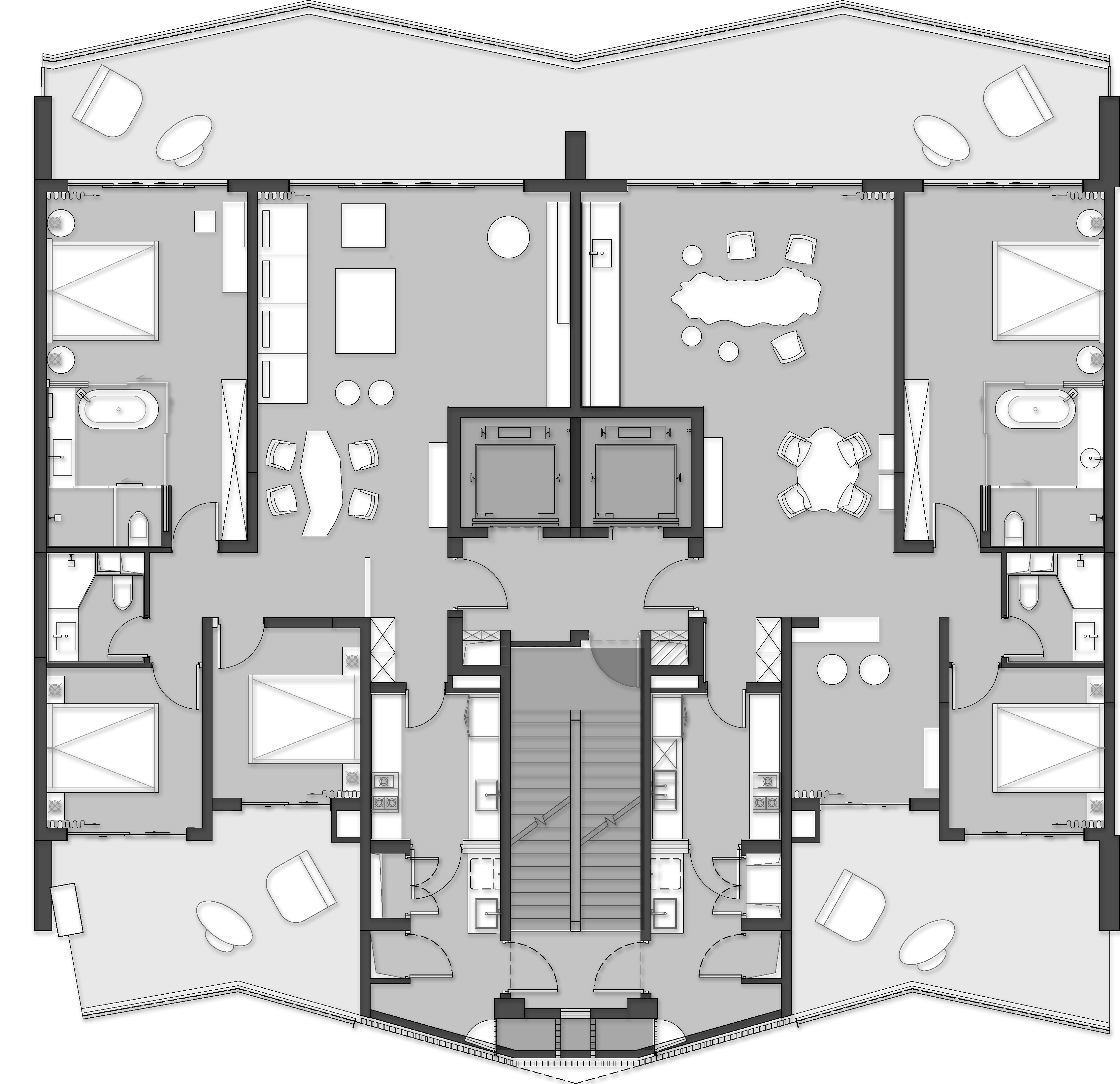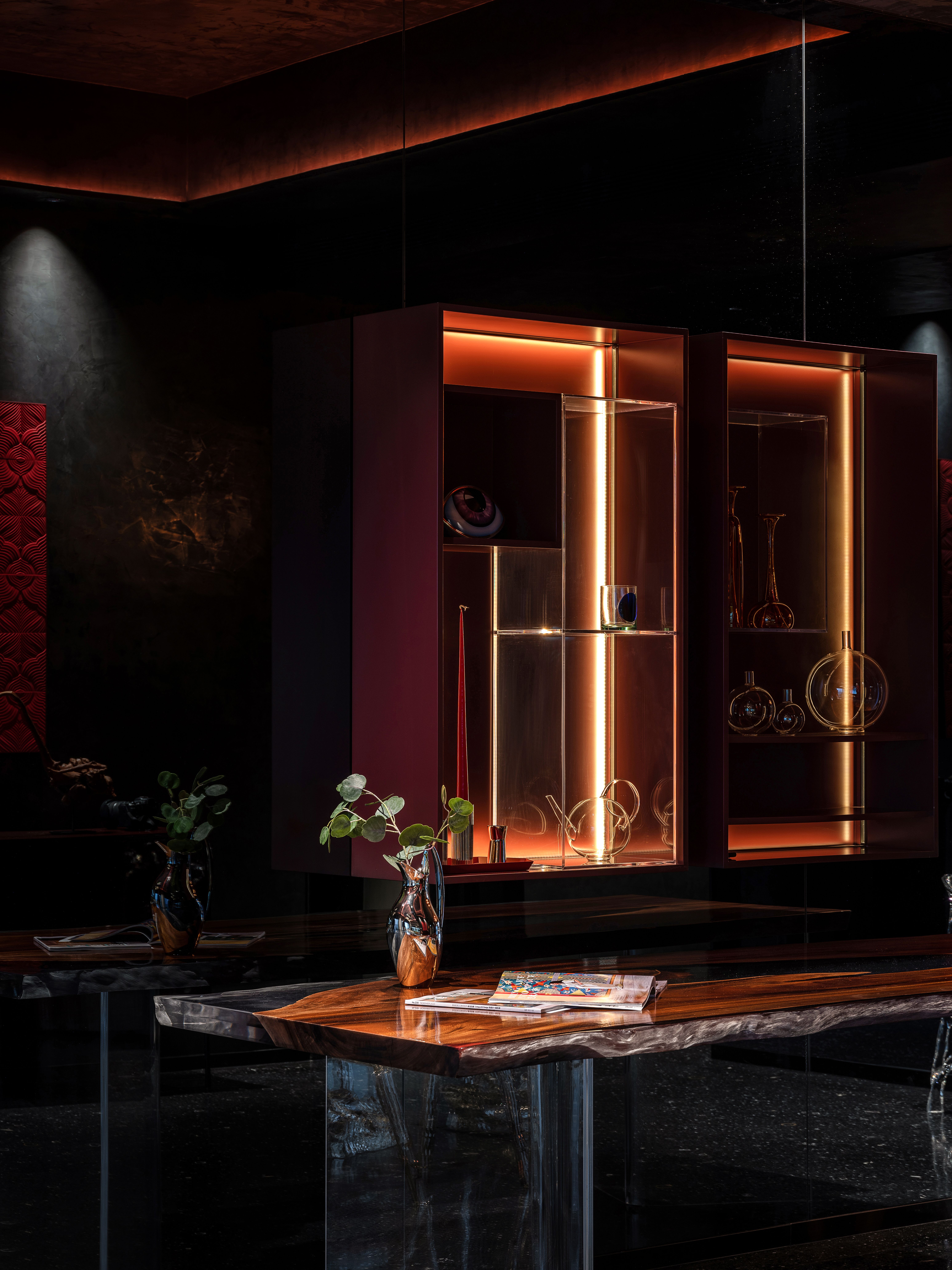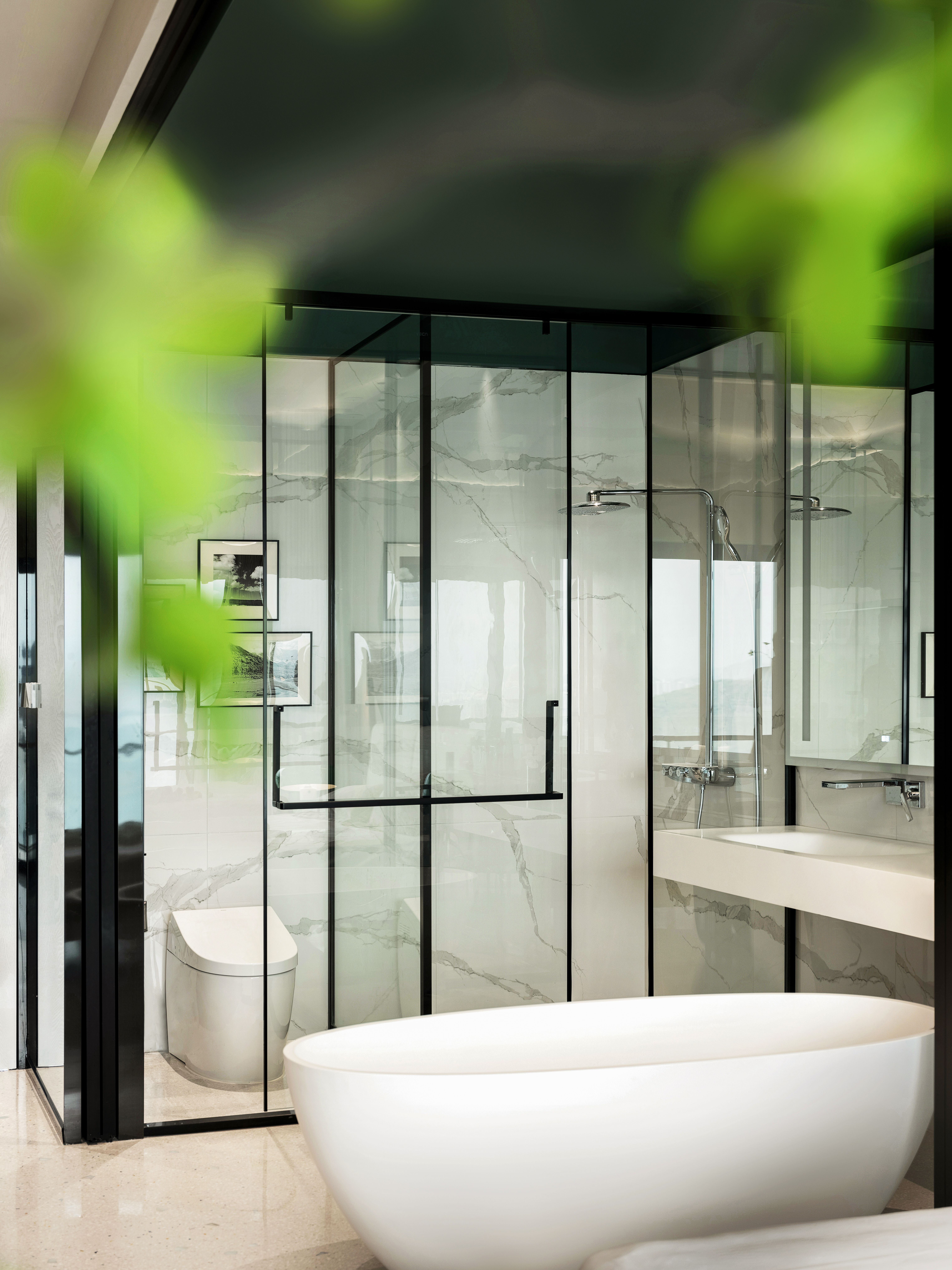 在繁忙喧嚣的现代生活中,人们渴望寻找一处能让身心彻底放松的避风港。本项目以暗色系为基调,旨在营造出一种静谧、深邃且极具沉浸感的空间环境,使每一位进入者仿佛置身于一个与世隔绝的宁静之境,所有的疲惫与压力都能在这片独特的空间中得到充分的释放和解脱。同时,巧妙地运用玻璃材质,将大海的元素引入室内,实现空间与自然的深度交融与对话,让人们在室内也能感受到大海的磅礴与宁静,体验到与海共呼吸的奇妙感受。 -