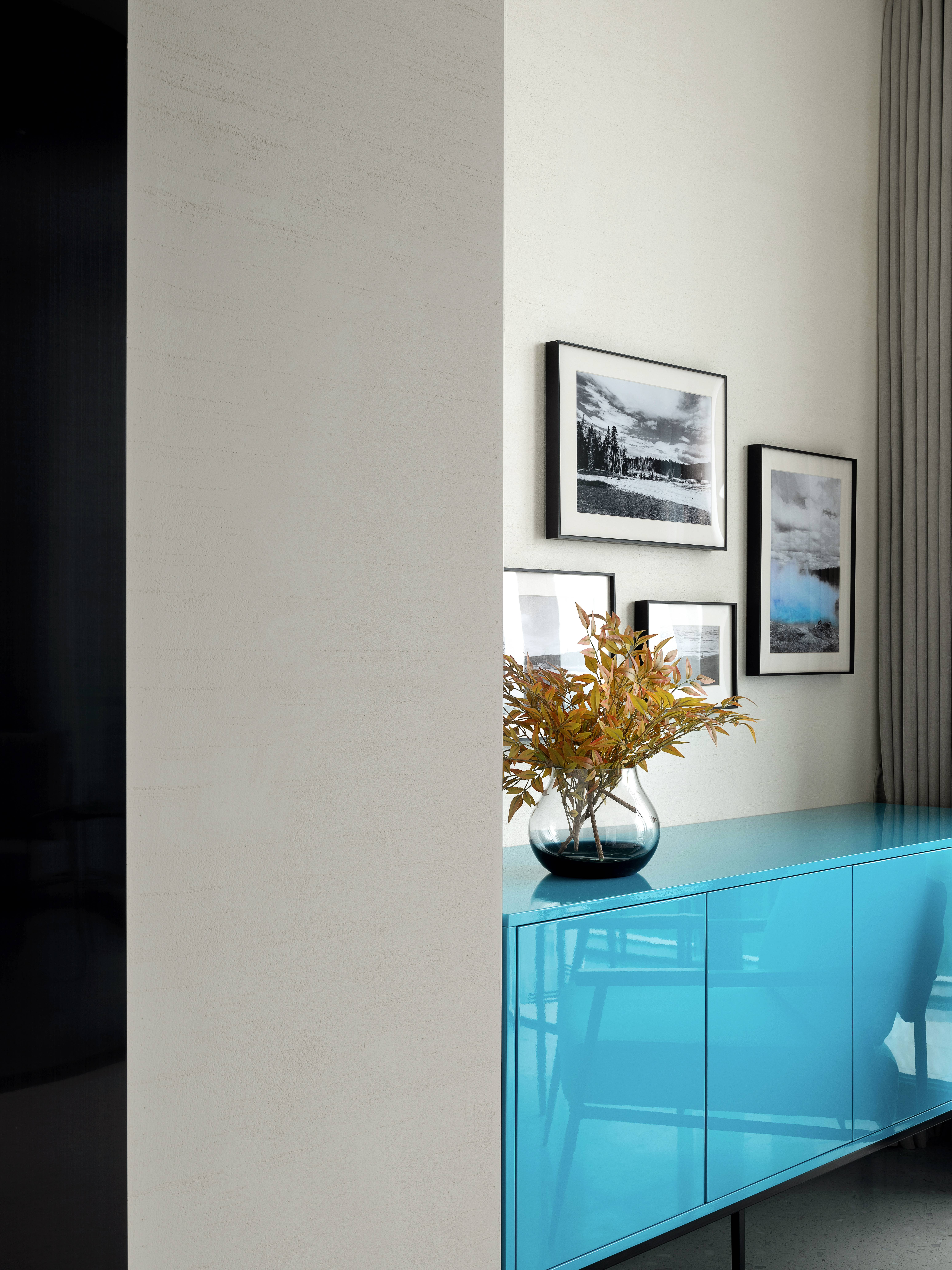 设计选材:“暗海幽居” 在选材上彰显低碳与经济的巧思。墙顶面摒弃传统材料,选用硅藻泥与艺术马来漆。硅藻泥环保,其多孔结构能净化空气、调节湿度,吸附甲醛等有害物质,为空间营造清新环境;艺术马来漆工艺多样,可展现如沙滩、海浪、岩石般的自然肌理,二者结合,视觉与环保双赢。