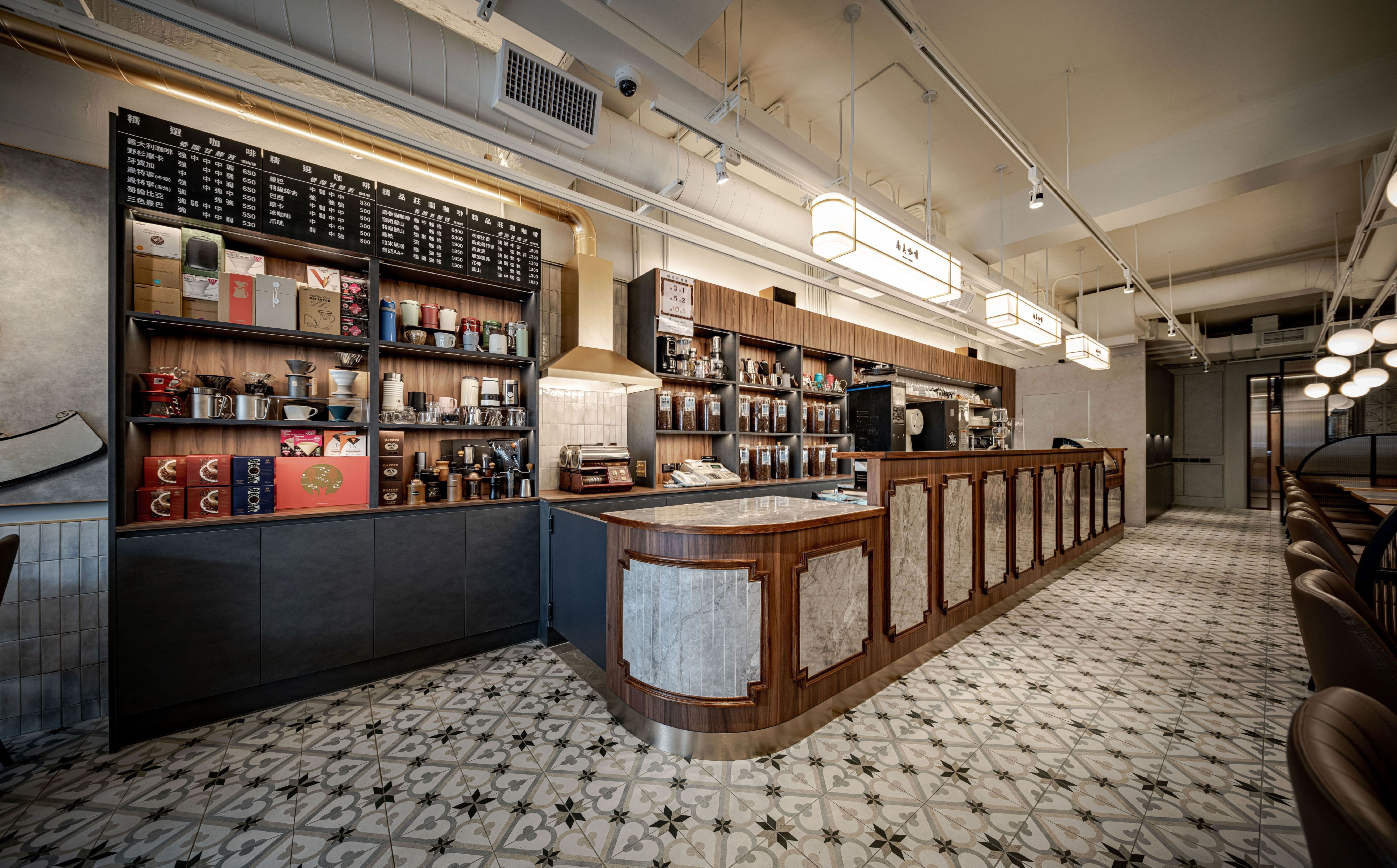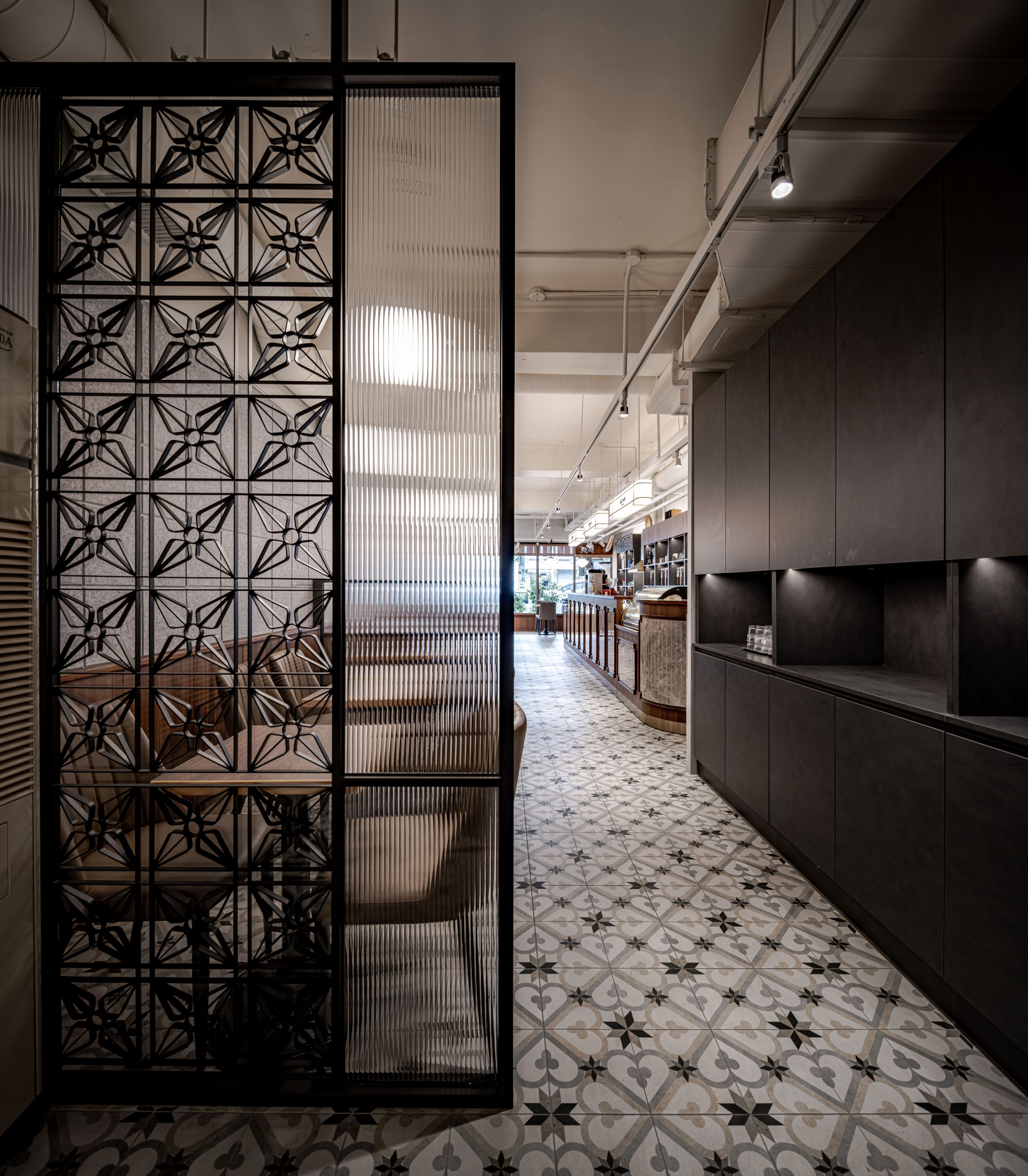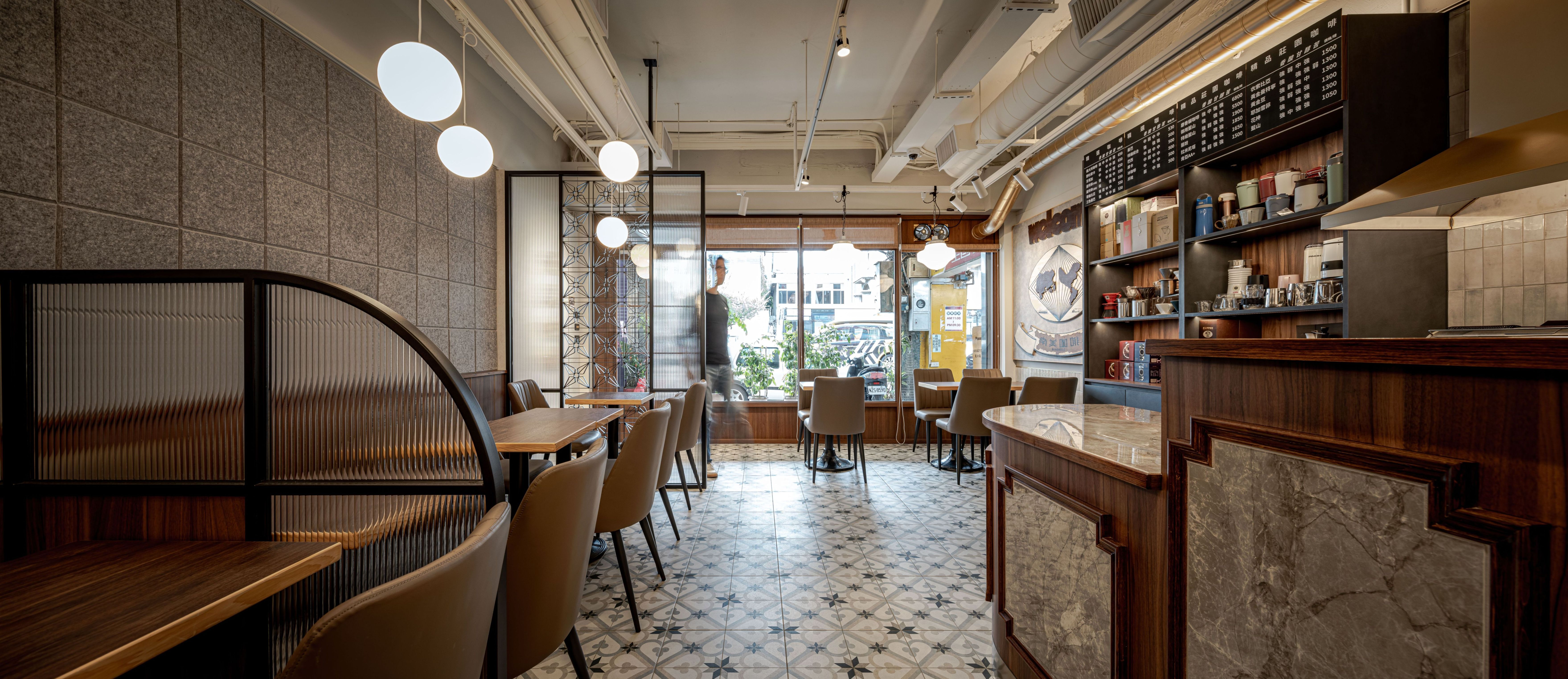 在美学上,我们透过很明确地分析过程确立的风格定位,由于咖啡贸易史与殖民文化有着密切的关系,且士林地区又属台北市发展较慢的区域,街道仍保有明显地70~80年代之台北城市风貌,经过与客户的多番研究讨论之后,最终混合了老店初创时期的台北一般街巷建筑语汇以及殖民风格的装饰质感,将铁花窗、复古印花地砖、复古手工釉面壁砖、白雾玻璃灯具、东南亚硬木色调复古等元素一并整合,混搭半世纪前的台湾街巷印象与折衷的殖民主义风格,保留了店内几样数十年历史的老件装饰,甚至以桧木复刻了五十多年前第一代的招牌设于店内,让老顾客们彷佛沉迷在年轻时的旧时代当中,却又没有明确地时代感,使整体氛围洗炼而弥新。