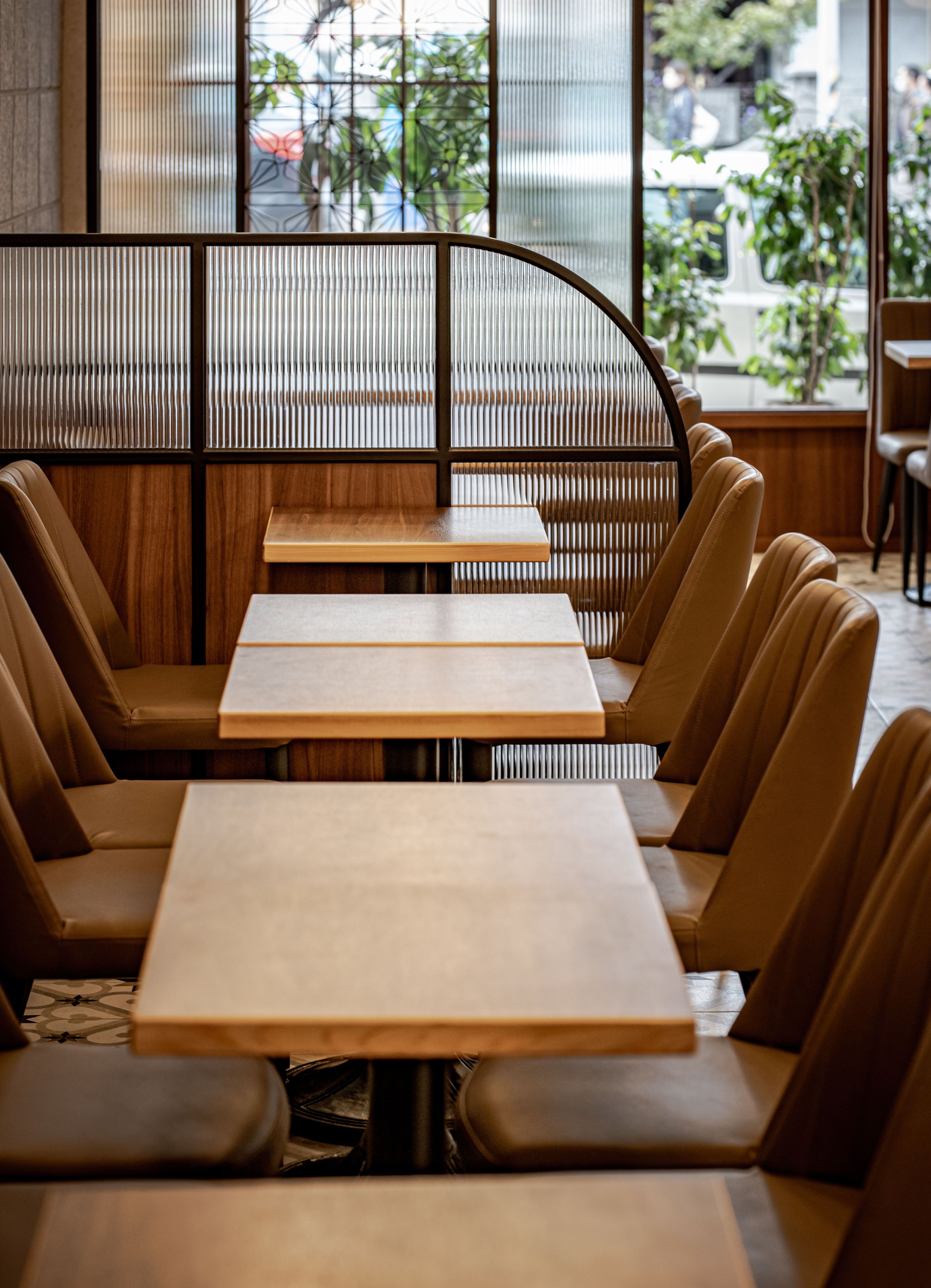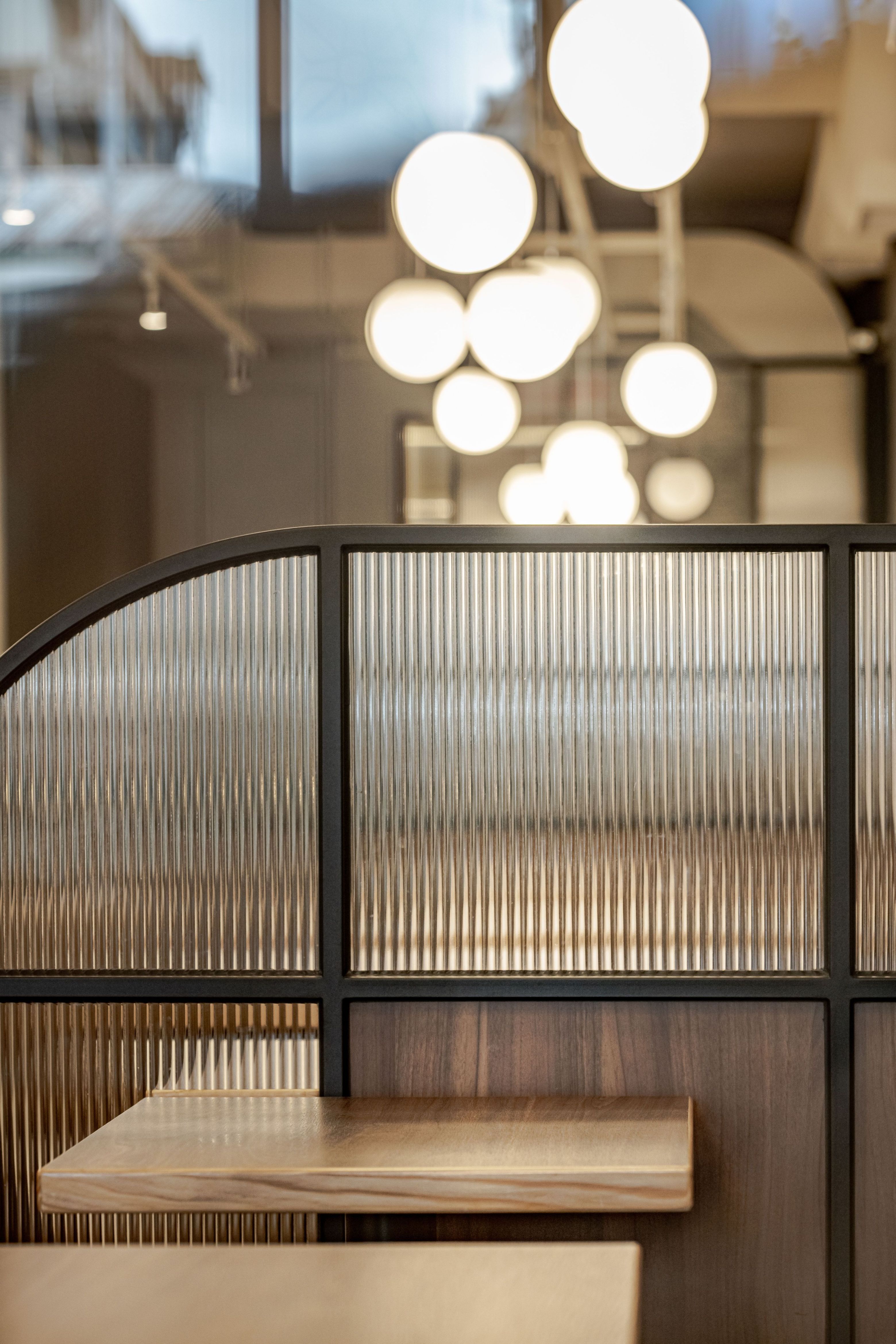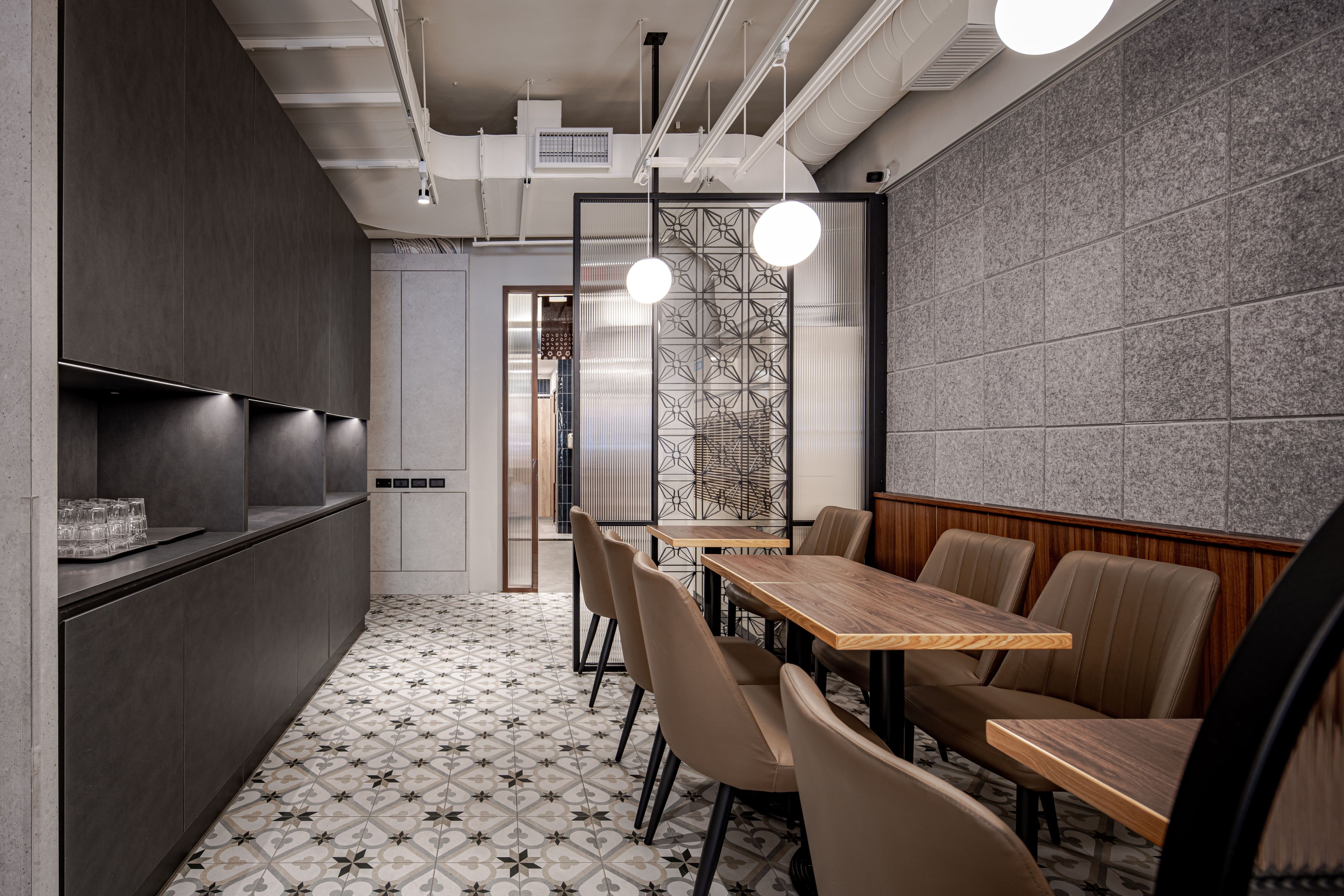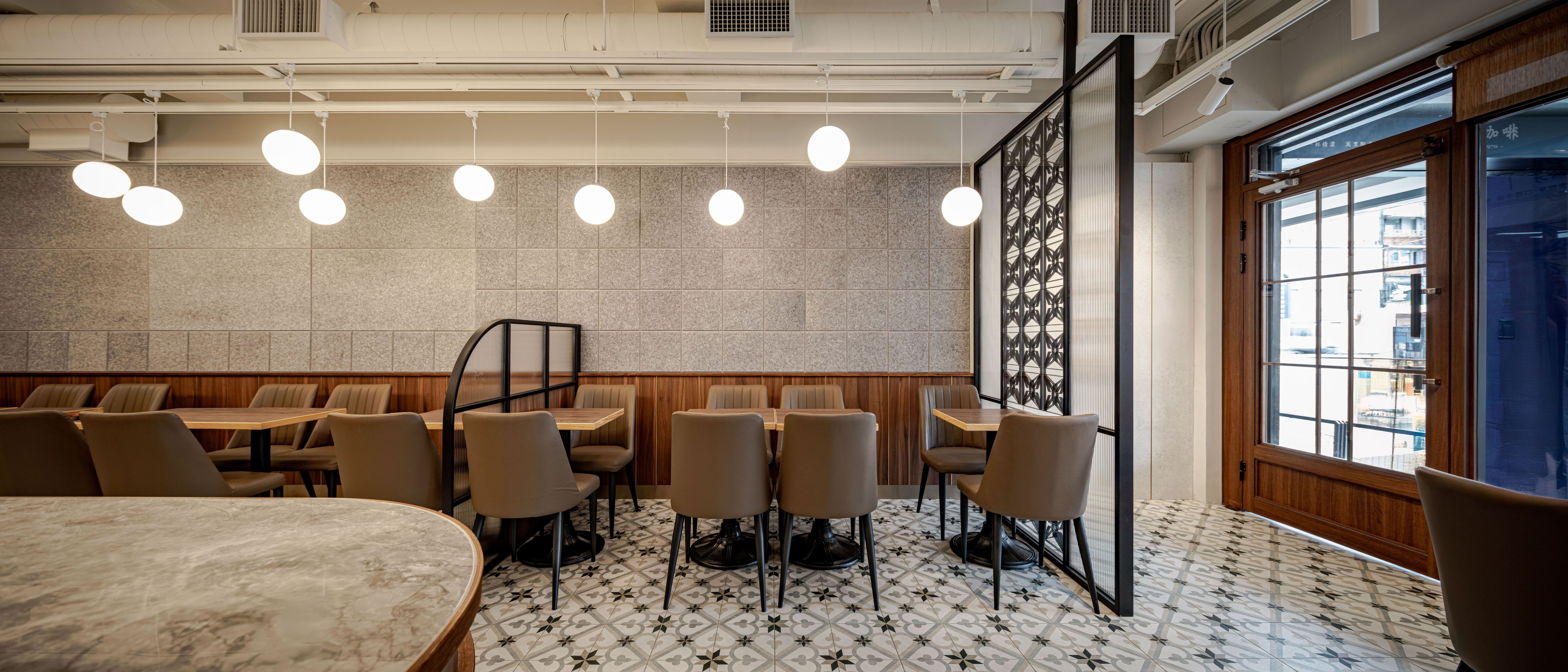 在美学上,我们透过很明确地分析过程确立的风格定位,由于咖啡贸易史与殖民文化有着密切的关系,且士林地区又属台北市发展较慢的区域,街道仍保有明显地70~80年代之台北城市风貌,经过与客户的多番研究讨论之后,最终混合了老店初创时期的台北一般街巷建筑语汇以及殖民风格的装饰质感,将铁花窗、复古印花地砖、复古手工釉面壁砖、白雾玻璃灯具、东南亚硬木色调复古等元素一并整合,混搭半世纪前的台湾街巷印象与折衷的殖民主义风格,保留了店内几样数十年历史的老件装饰,甚至以桧木复刻了五十多年前第一代的招牌设于店内,让老顾客们彷佛沉迷在年轻时的旧时代当中,却又没有明确地时代感,使整体氛围洗炼而弥新。