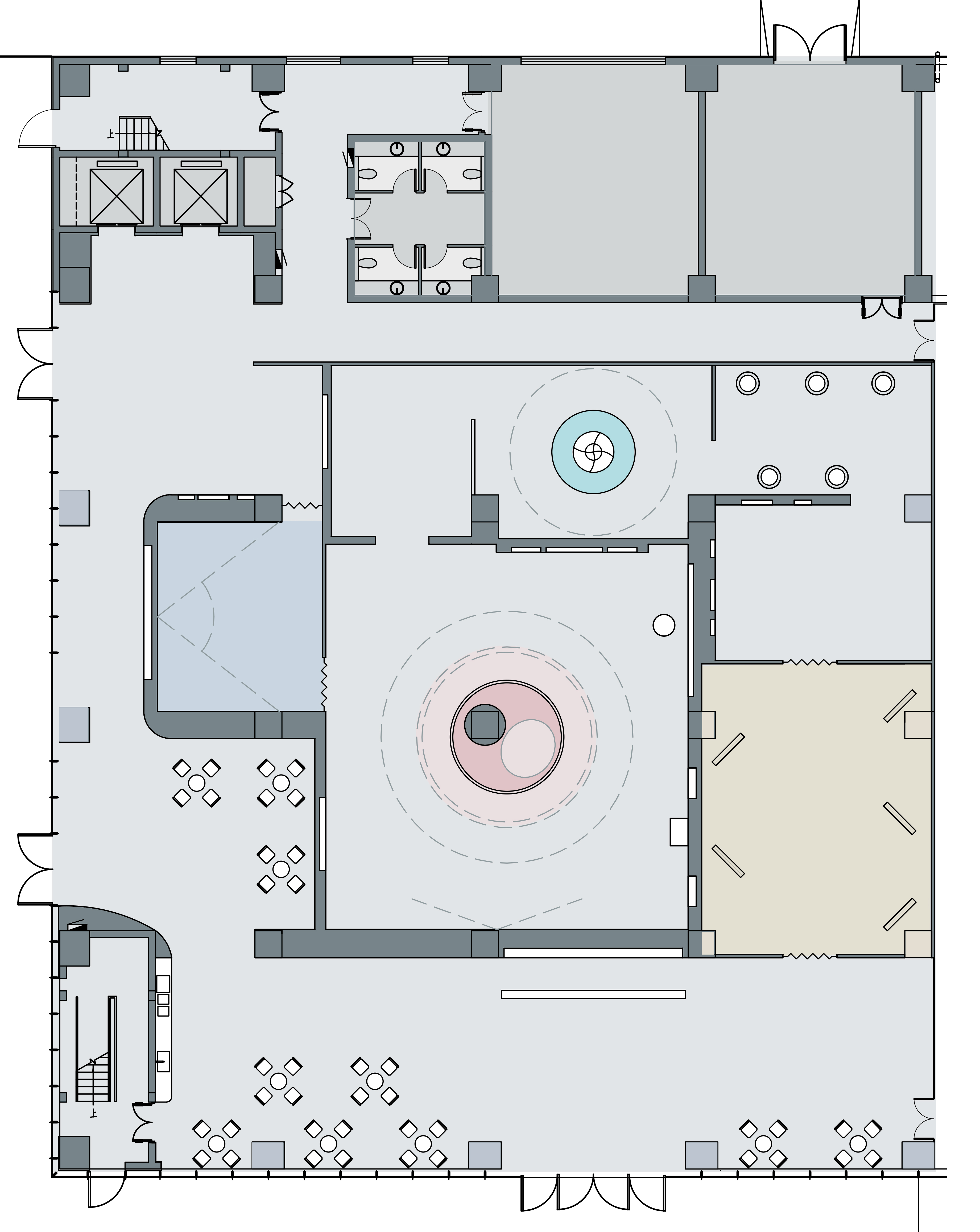 空间布局:采用开放式空间布局理念,最大化利用 7 米高挑空区域设置标志性展示设施,如 DNA 圆环科幻空间与霍格沃斯中试工艺互动投影墙,形成空间视觉焦点,引导参观者自然流动。5 米高沉浸暗空间围绕核心展示内容进行布局,如菌种构建墙与 CAVE 投影暗空间,通过合理的空间划分与过渡,使参观者在明暗交替、动静结合的空间转换中,有序地进行参观体验。各个展示区域相互关联又相对独立,打造出流畅且富有变化的参观动线,有效提升参观者对生物制造 5.0 科技馆内容的理解与吸收效率,避免参观疲劳与信息混乱。