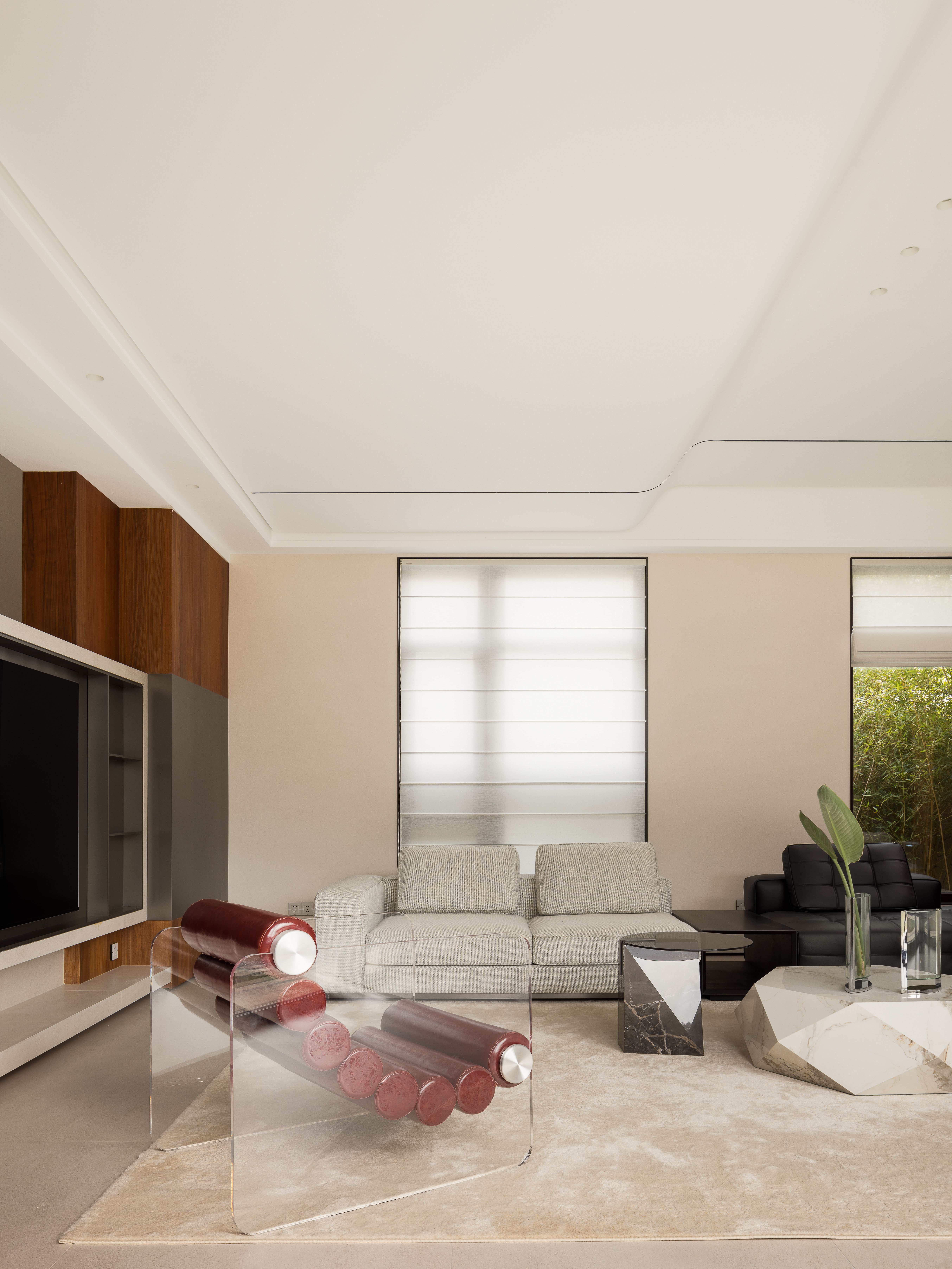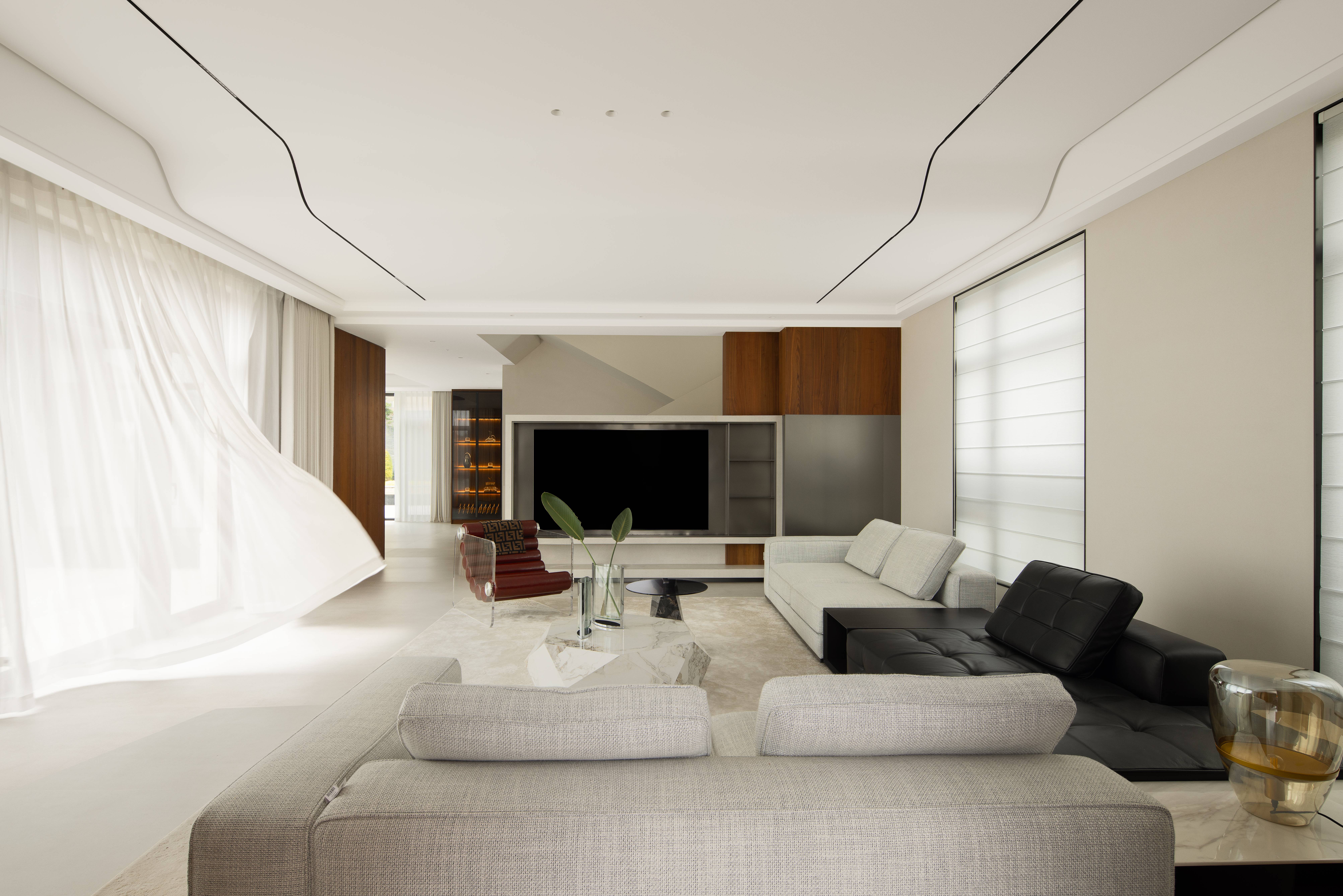 项目定位:设计师认为环境、建筑、空间和生活之间是自然而然的和谐状态,同时是立体交互的延续关系。便以先锋艺术的形式,承载东西方文化此起彼伏的新兴韵味,植入自然趋常化、艺术景观化的生活动线之中,焕新伴山栖居的终极理想。将别墅融进山水里,墅居者宿进绿野中,一房一世界,一窗一风景窗外是绿意盎然,窗内是梦归处的温柔乡。设计让艺术的自由、自然的随性,照进生活的日常。让细腻的审美交响回应墅居者的生活主场与内心角落。最终,淡雅归心。