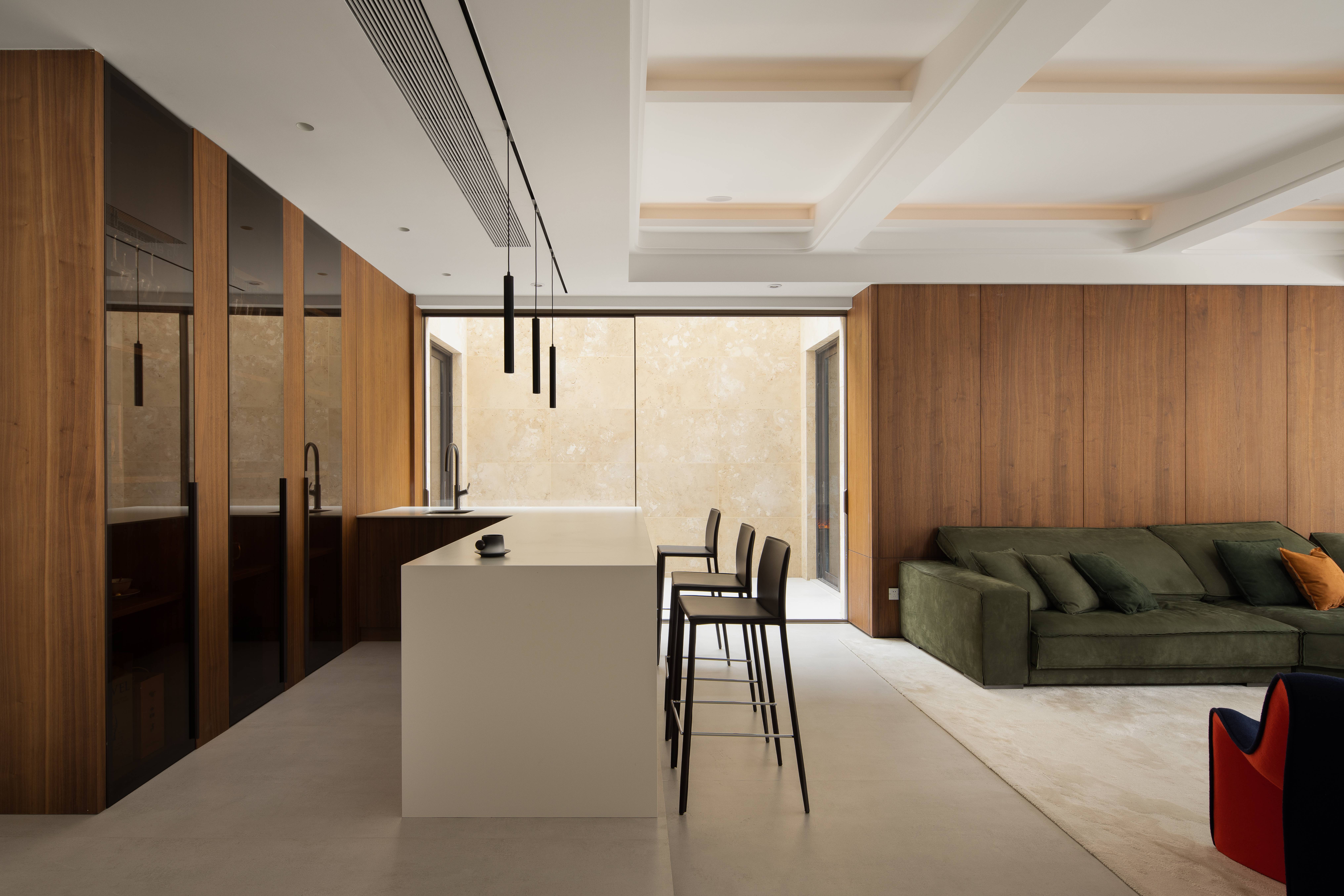 设计选材:岩板,木饰面,艺术漆等