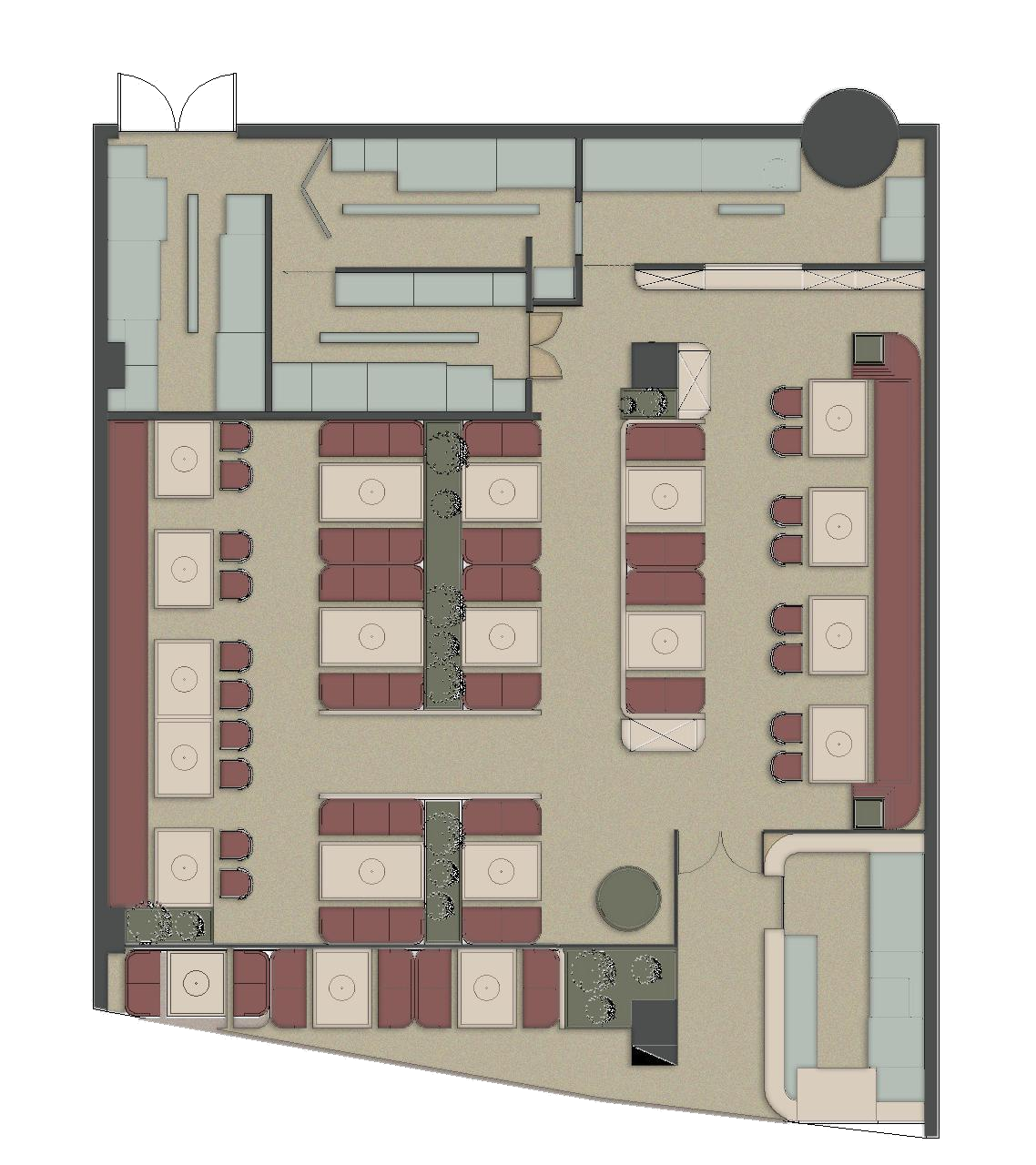 空间布局:就餐区多采用了卡座形式,包围感强烈,看上去规整有秩序感。