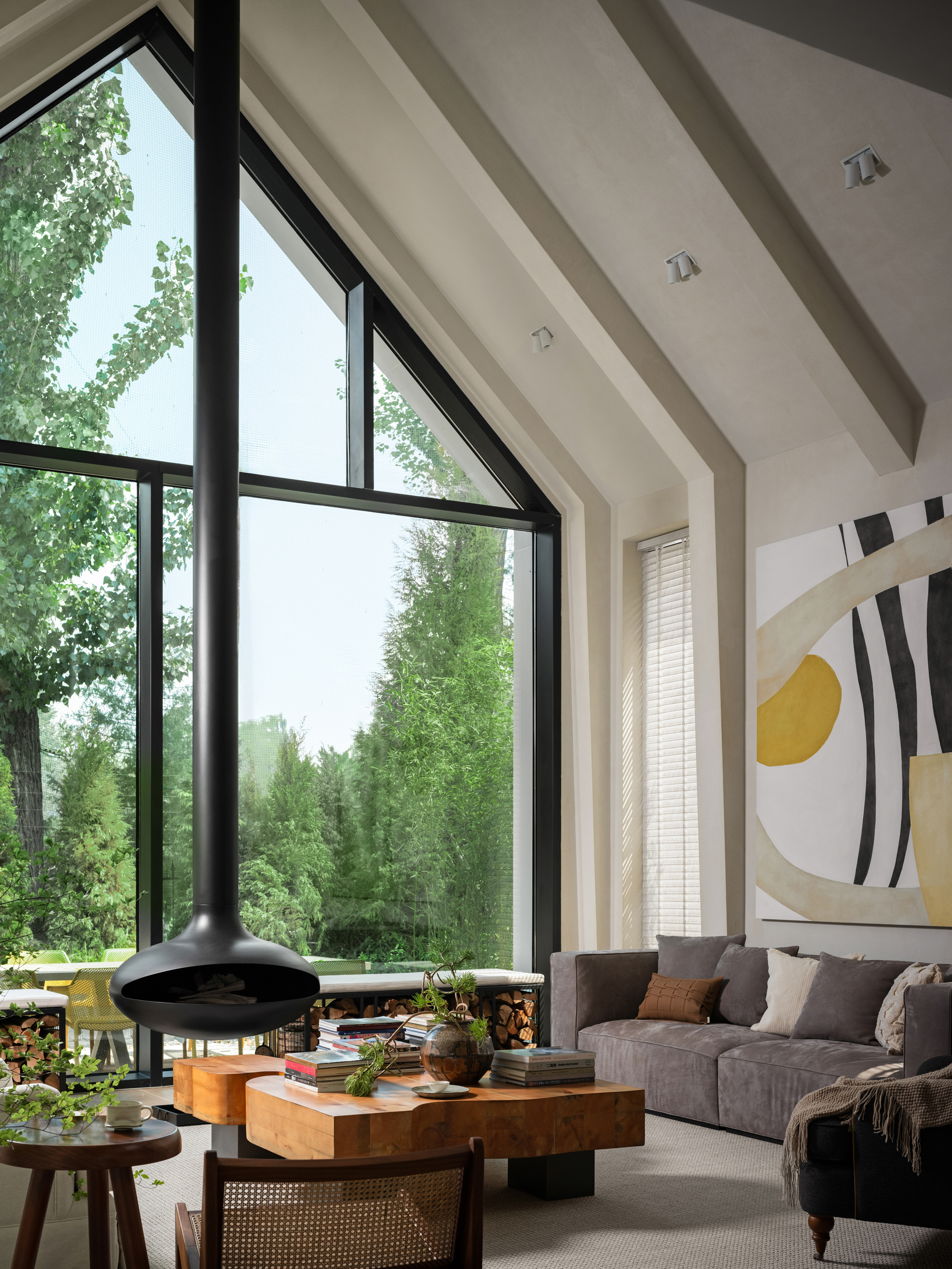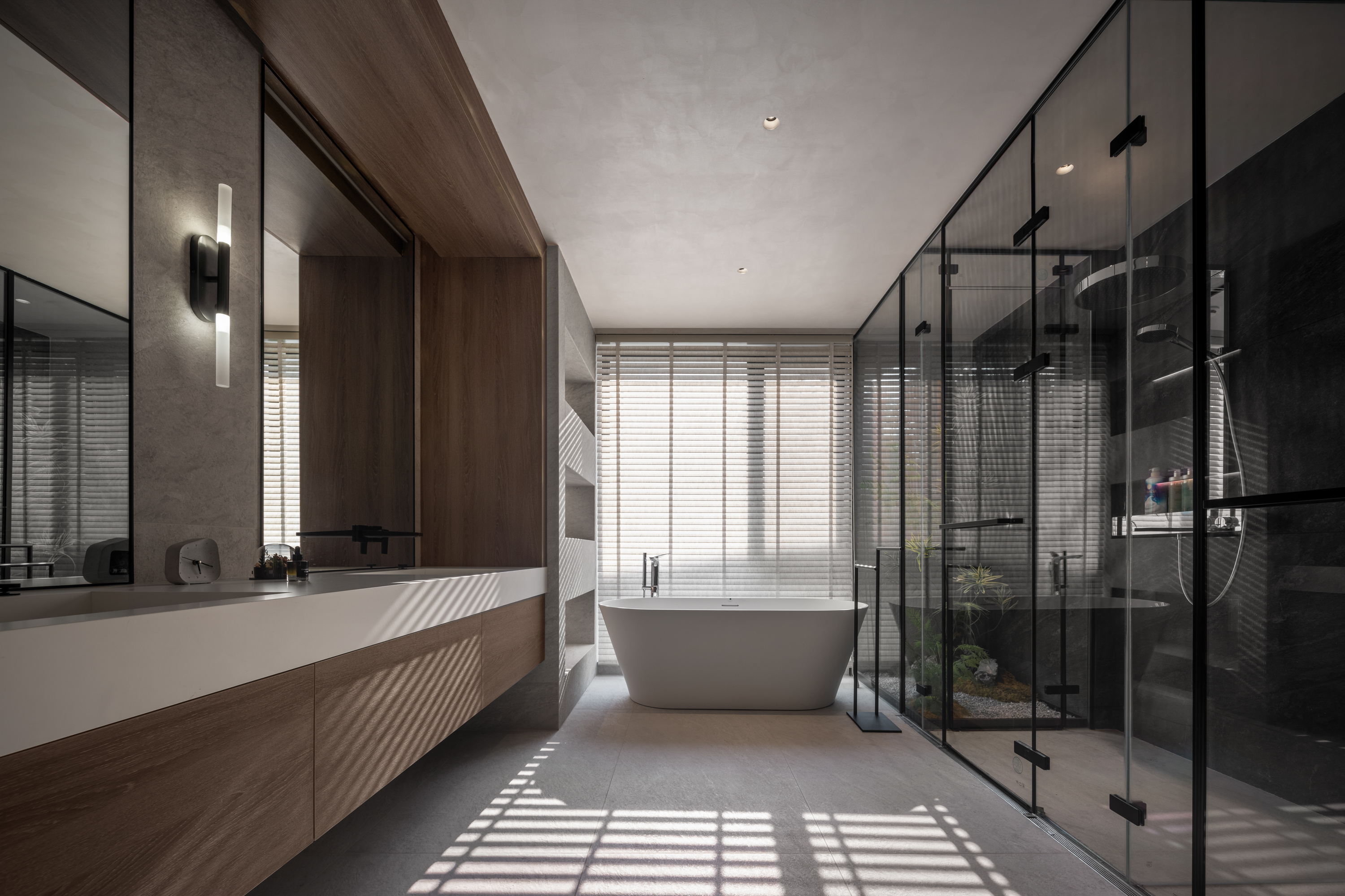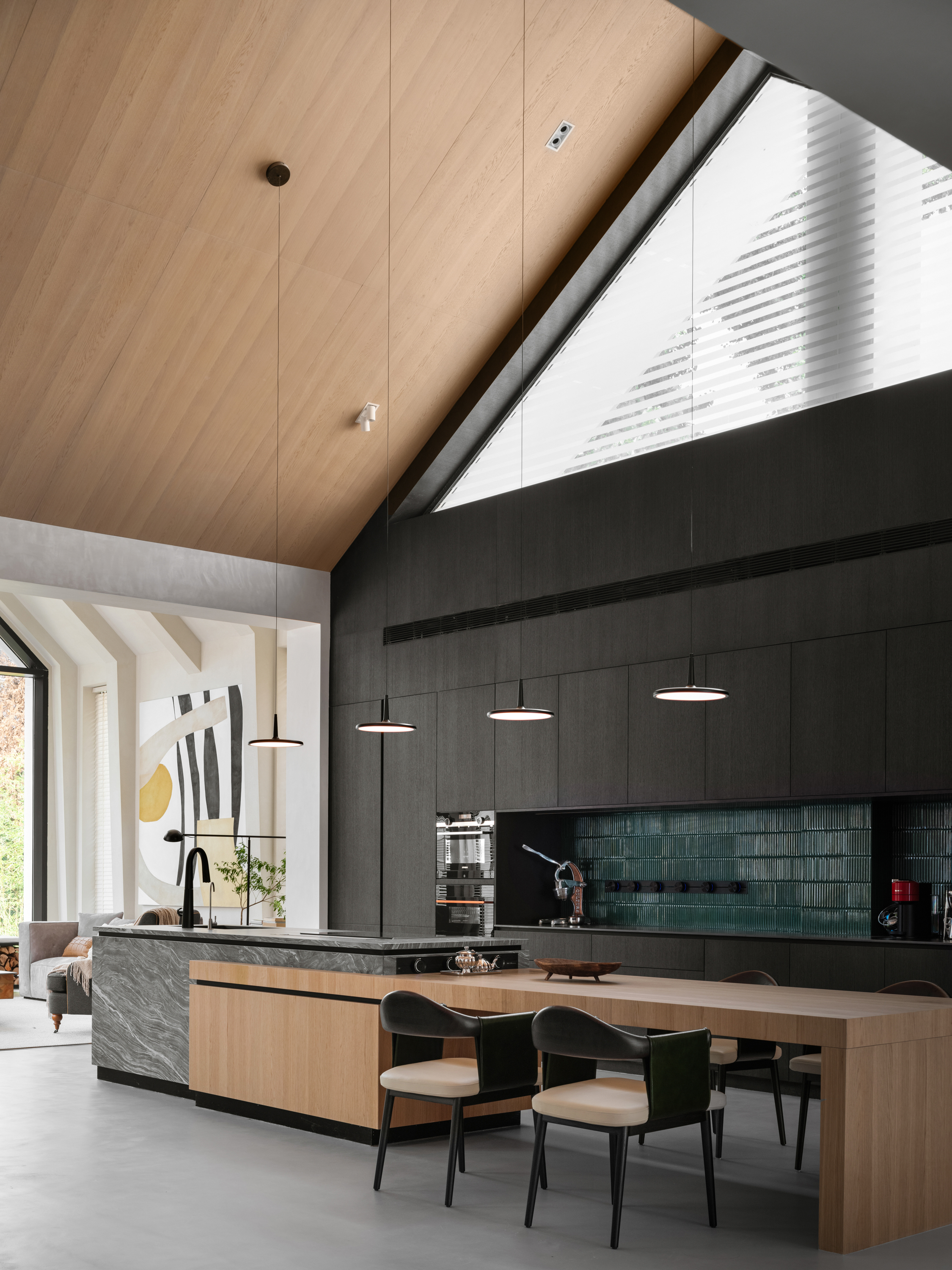 空间布局:客厅引入户外的开放氛围,贯穿整栋建筑的玻璃窗,也最大限度地打通室内外的连接,实现全景式无视觉阻碍的MAX观景体验,以轻盈纯粹的视觉感受,打造室内天然氧吧。