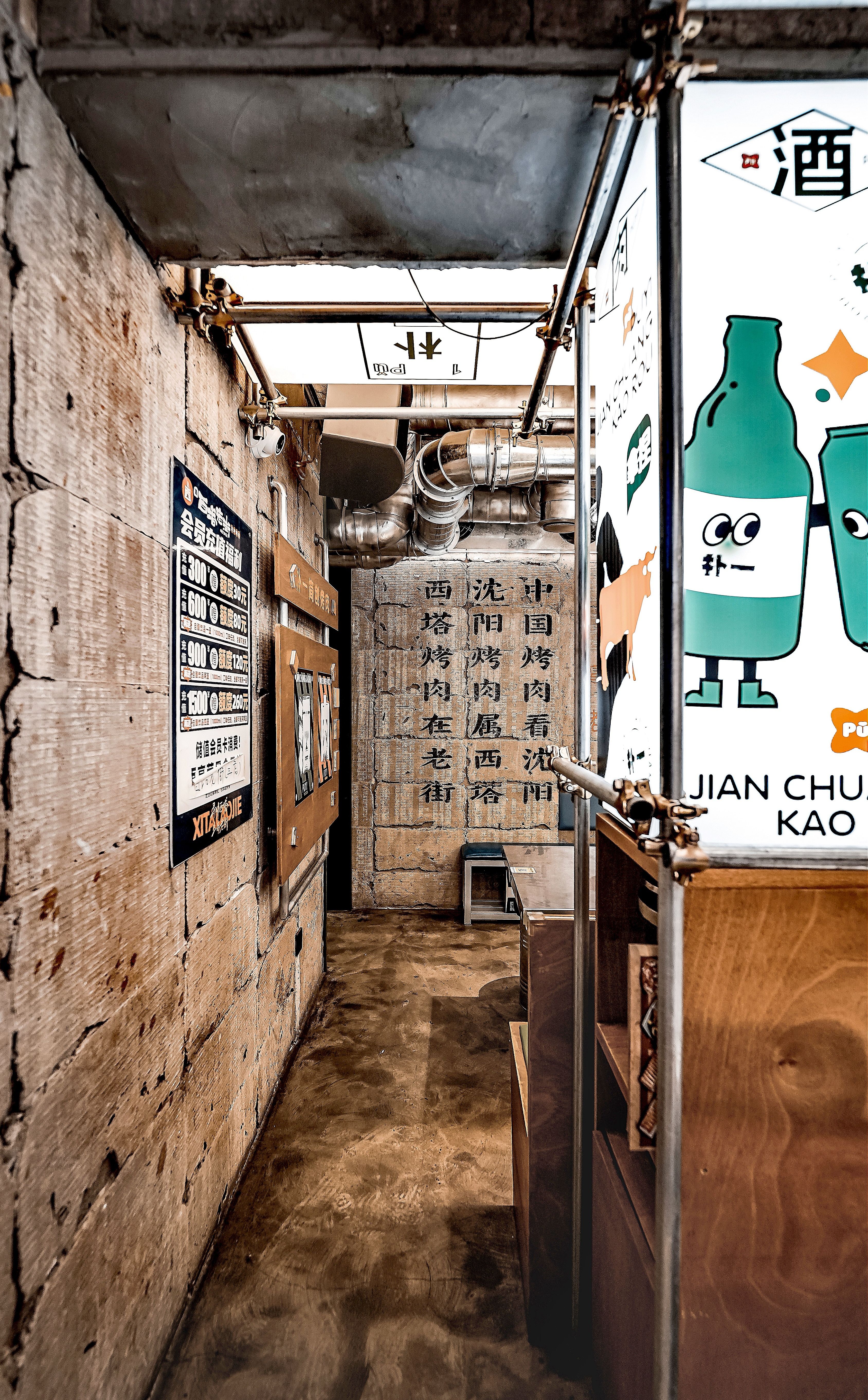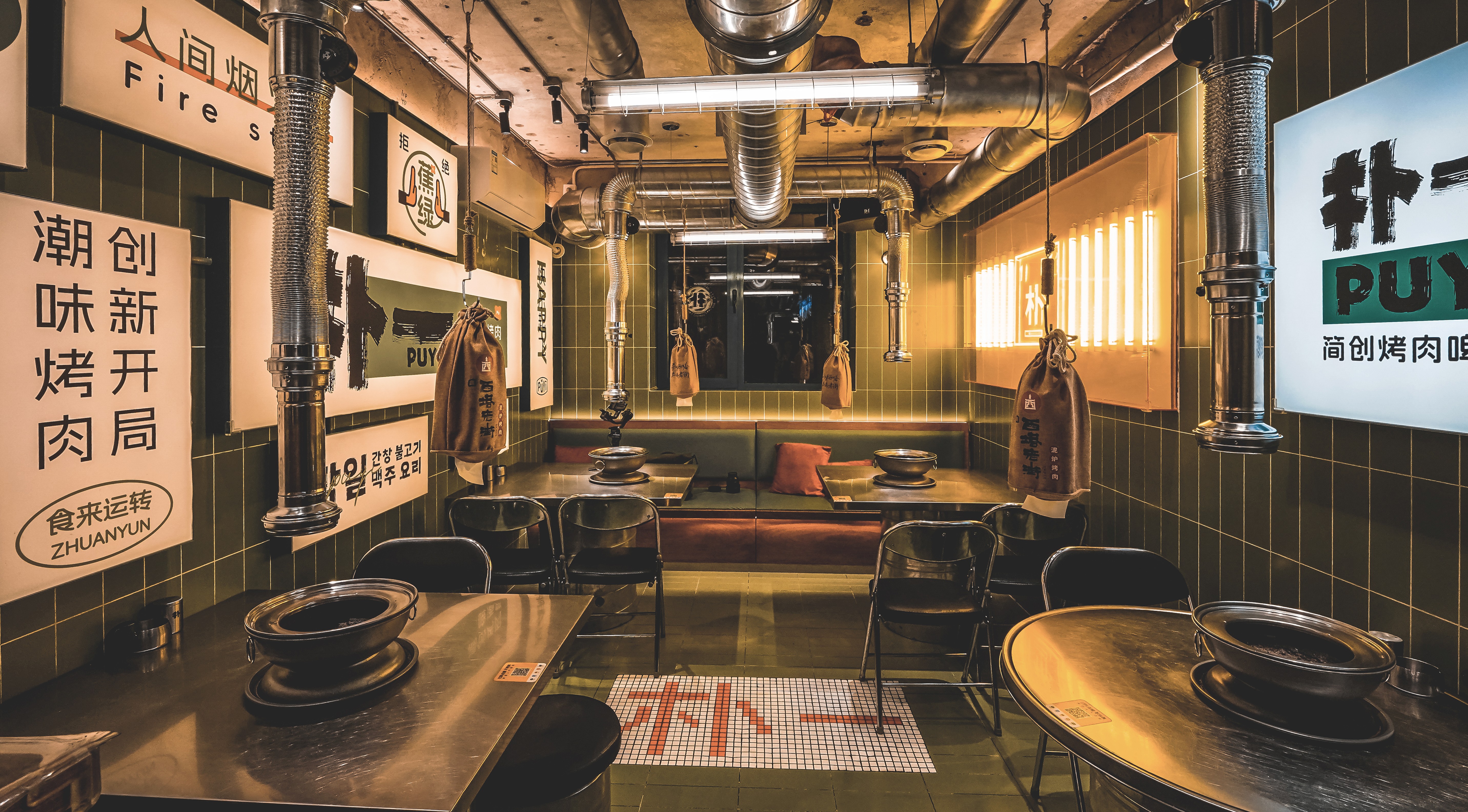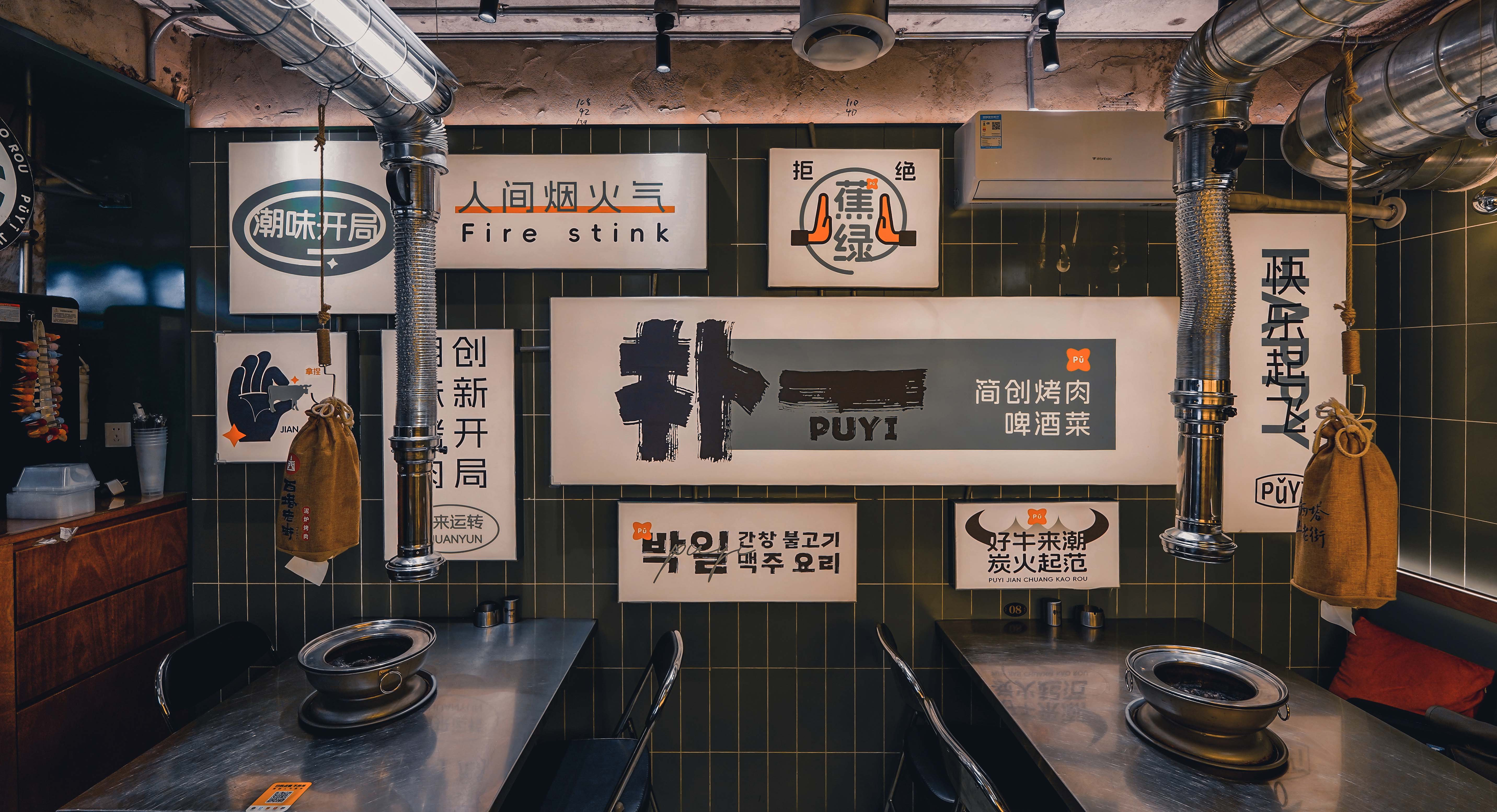 项目定位:西塔,清太宗皇太极于1643年以沈阳古城为中心修建的四塔之一,本为一地名,是”盛京四象之一。西塔地区(西塔街)是东北三省除朝鲜族自治州、县以外的最大民族聚集区域,融合了朝鲜族的民族文化精华。西塔商业街有着120多年的悠久历史,孕育了独特的民族风情,西塔街主轴两侧,形成了具有浓郁朝鲜族特色和韩国风情的休闲文化产业带。留有老建筑本身斑驳进打过的墙面,封存住西塔老街的岁月沉积,记录下日新月异。材质选择上精致的金属与墙面的相狂自然形成大反差,拒绝焦"绿"在空间里是得异常醒目,极大的碰撞,增添了趣味性,打卡性。就在这条美味与民族风情浓厚的街道中,在这片美食聚集地,胡同的朴一却格外醒目。