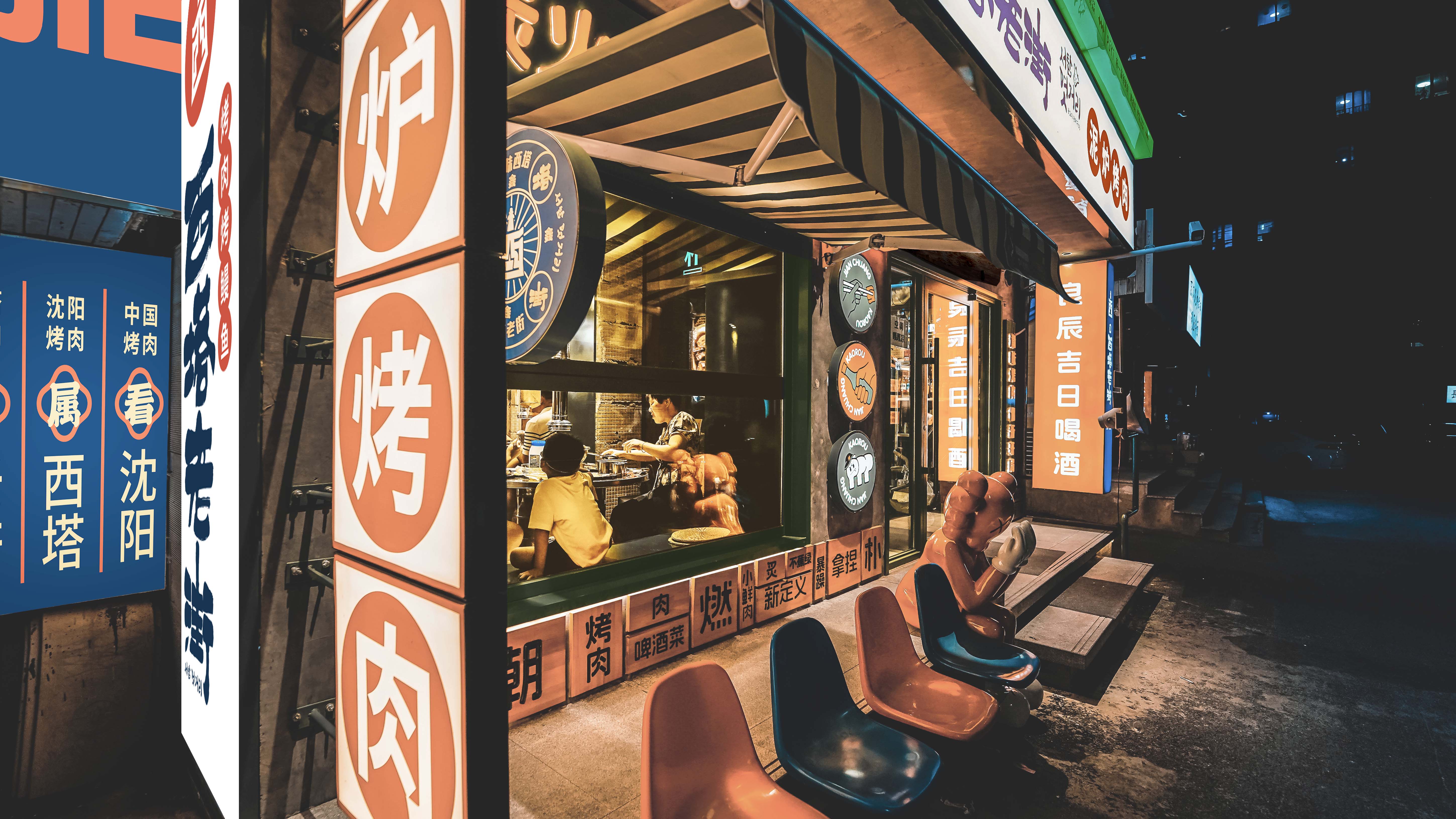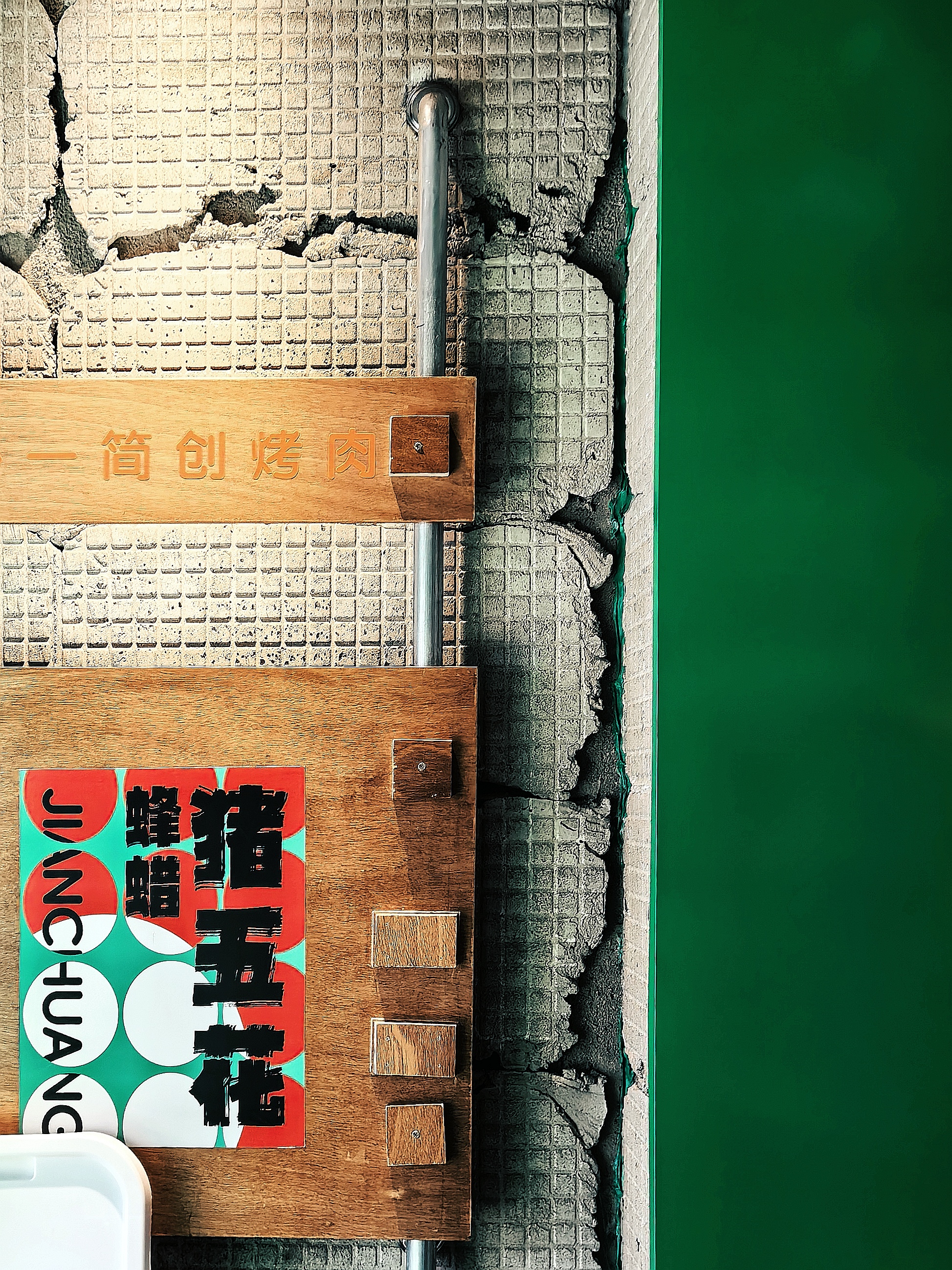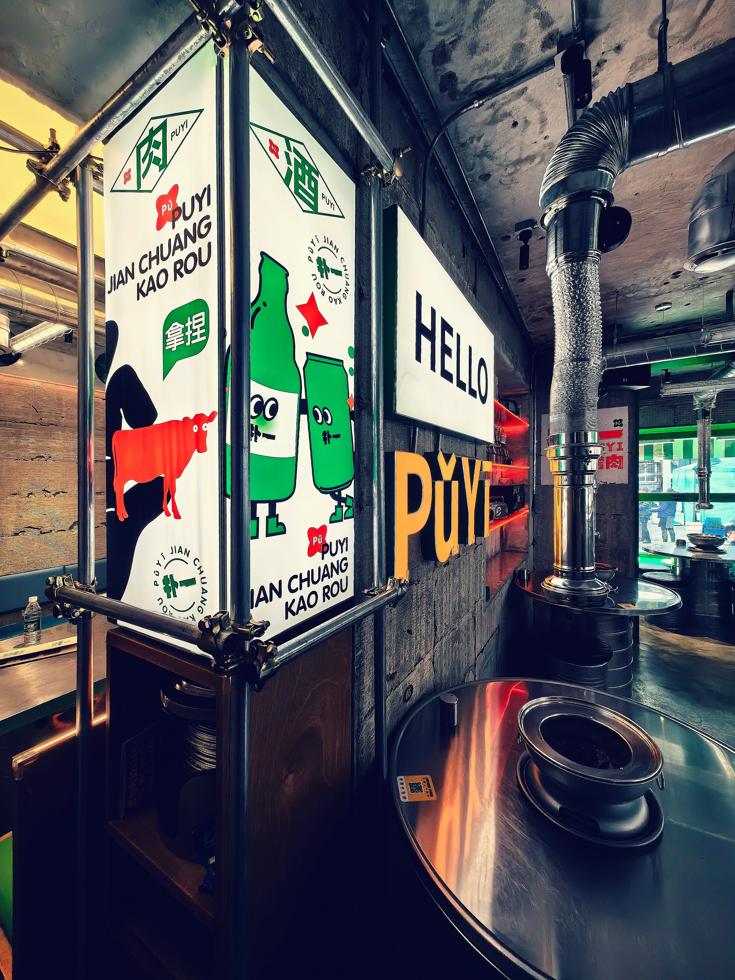 项目定位:西塔,清太宗皇太极于1643年以沈阳古城为中心修建的四塔之一,本为一地名,是”盛京四象之一。西塔地区(西塔街)是东北三省除朝鲜族自治州、县以外的最大民族聚集区域,融合了朝鲜族的民族文化精华。西塔商业街有着120多年的悠久历史,孕育了独特的民族风情,西塔街主轴两侧,形成了具有浓郁朝鲜族特色和韩国风情的休闲文化产业带。留有老建筑本身斑驳进打过的墙面,封存住西塔老街的岁月沉积,记录下日新月异。材质选择上精致的金属与墙面的相狂自然形成大反差,拒绝焦"绿"在空间里是得异常醒目,极大的碰撞,增添了趣味性,打卡性。就在这条美味与民族风情浓厚的街道中,在这片美食聚集地,胡同的朴一却格外醒目。