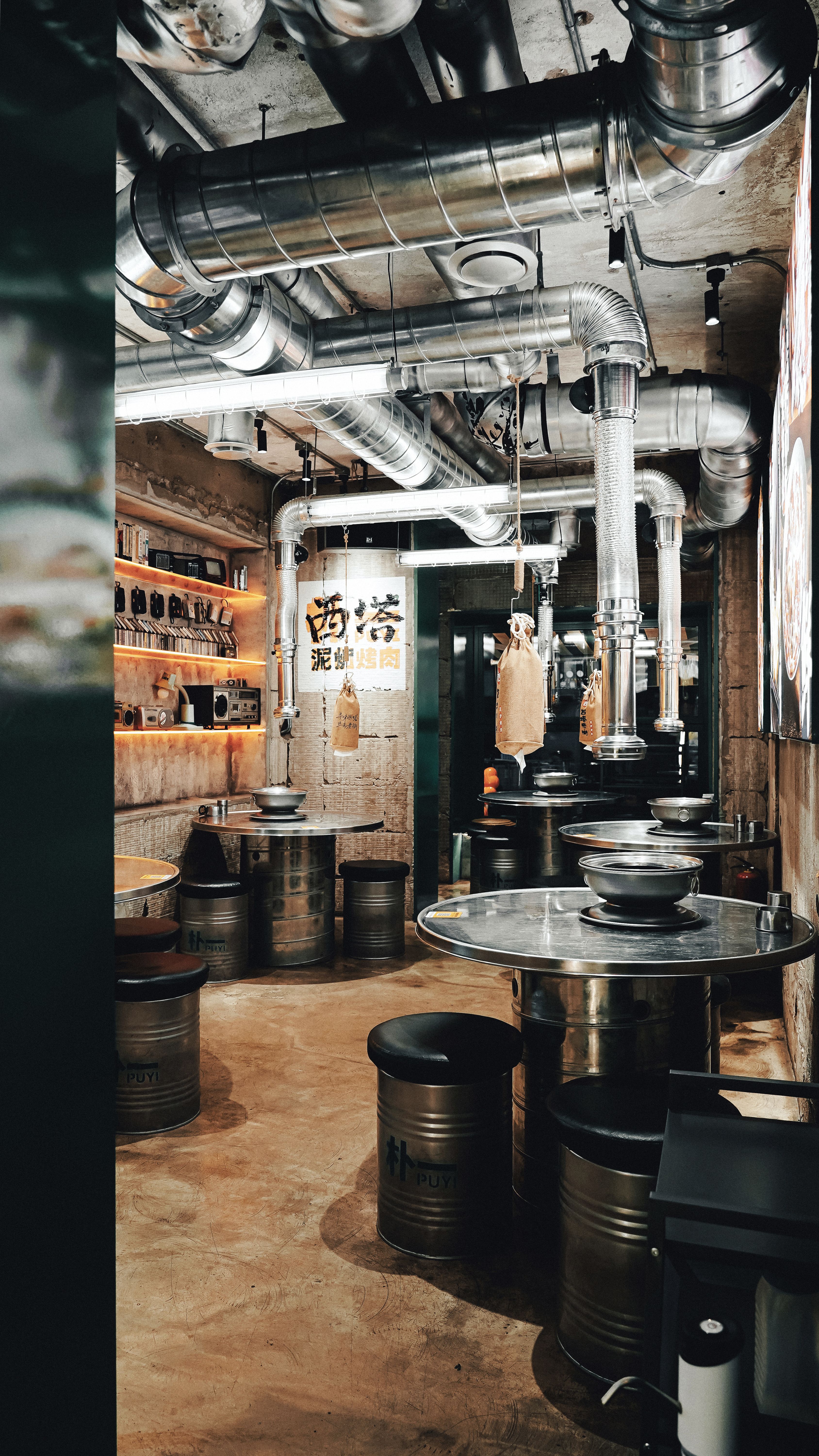 在不锈钢与水泥的材质对比中,更显空间的粗旷