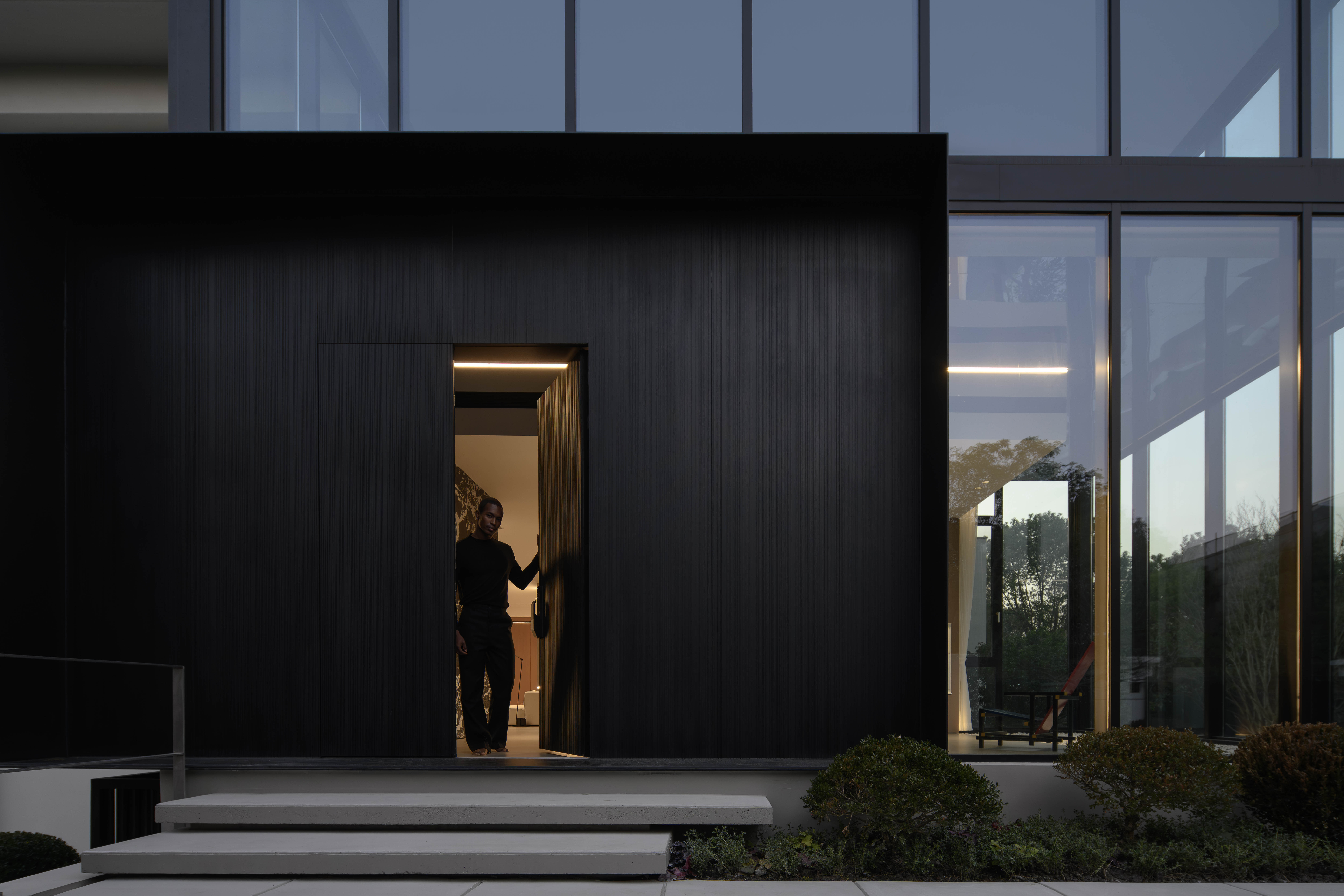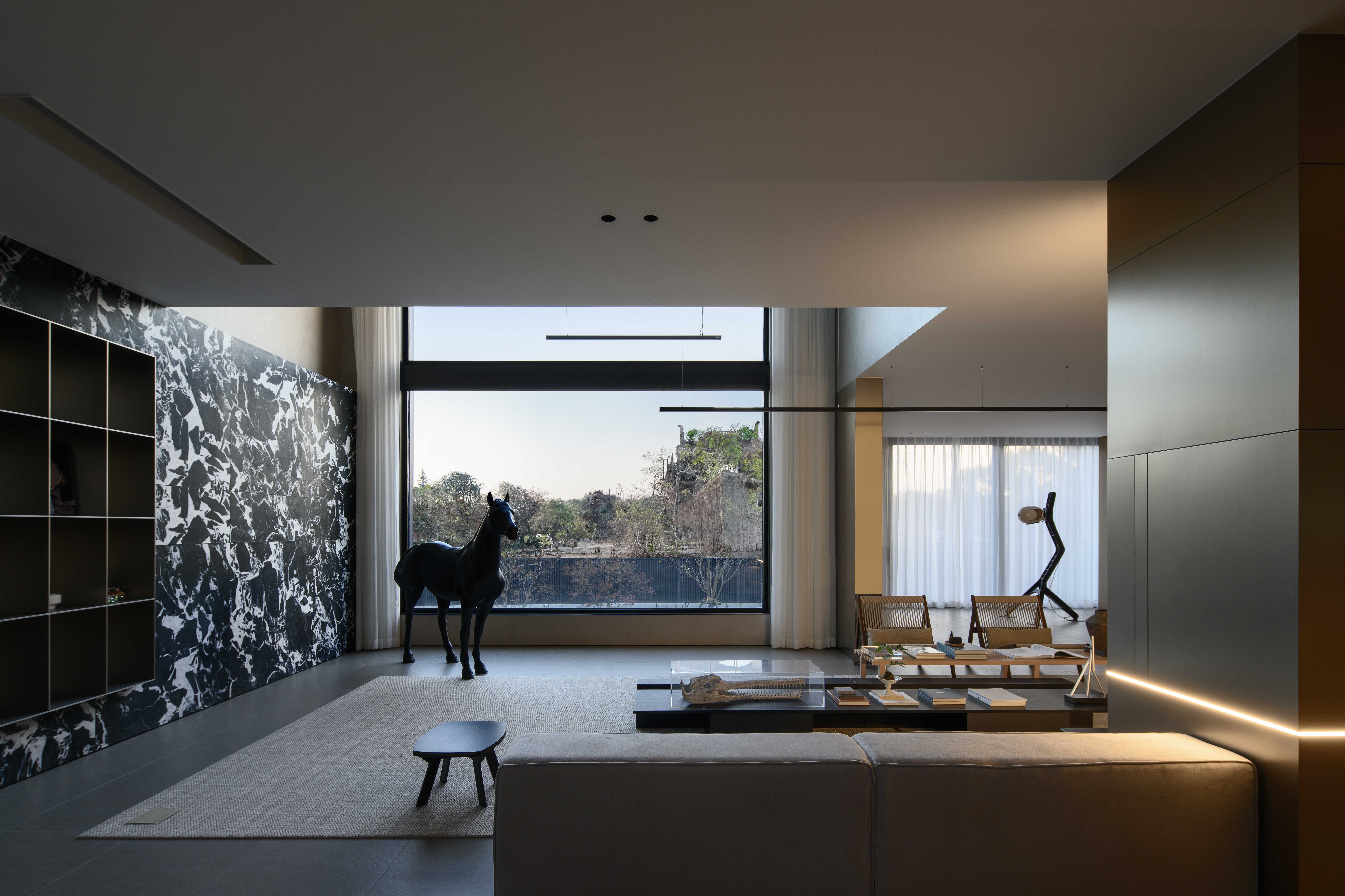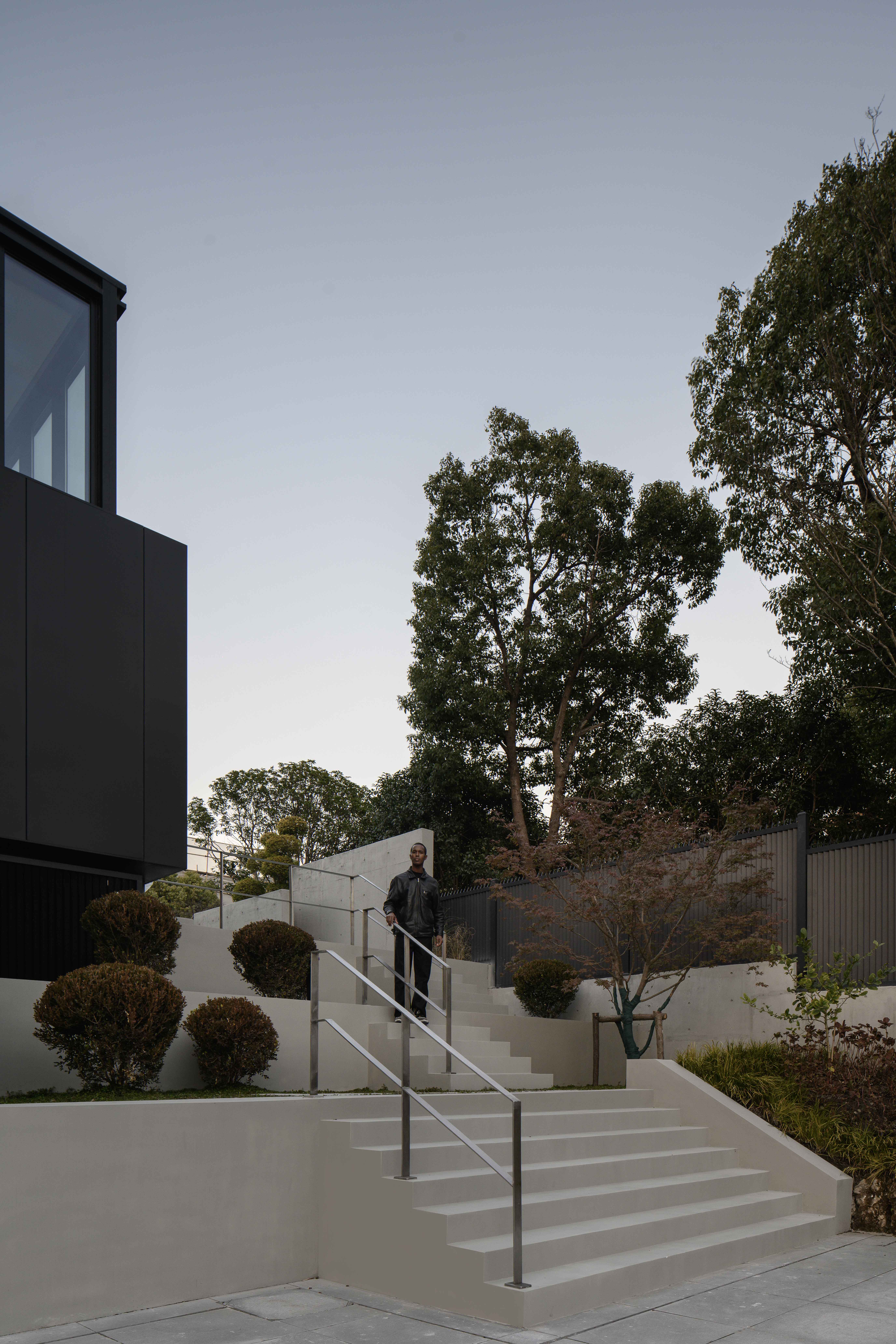 项目定位:本项目定位为一处远离城市喧嚣的度假宅,旨在打造一个既具现代艺术感,又能提供宁静生活的空间。极简现代主义的外观与1000㎡的花园相得益彰,为居住者提供私人、舒适的避世之地。整体设计突出空间的艺术感与功能性,注重居住者的隐私与自然亲近感。