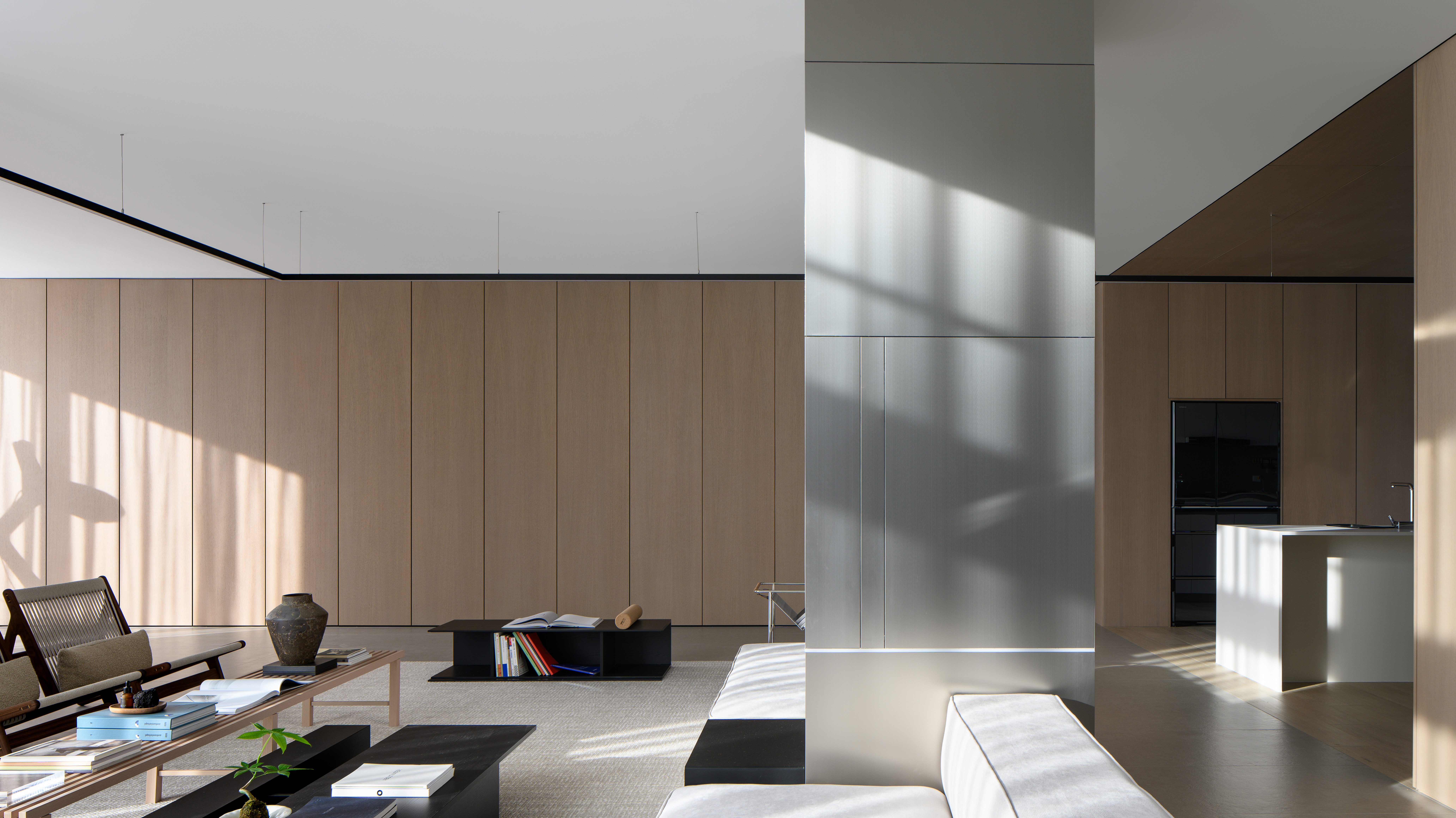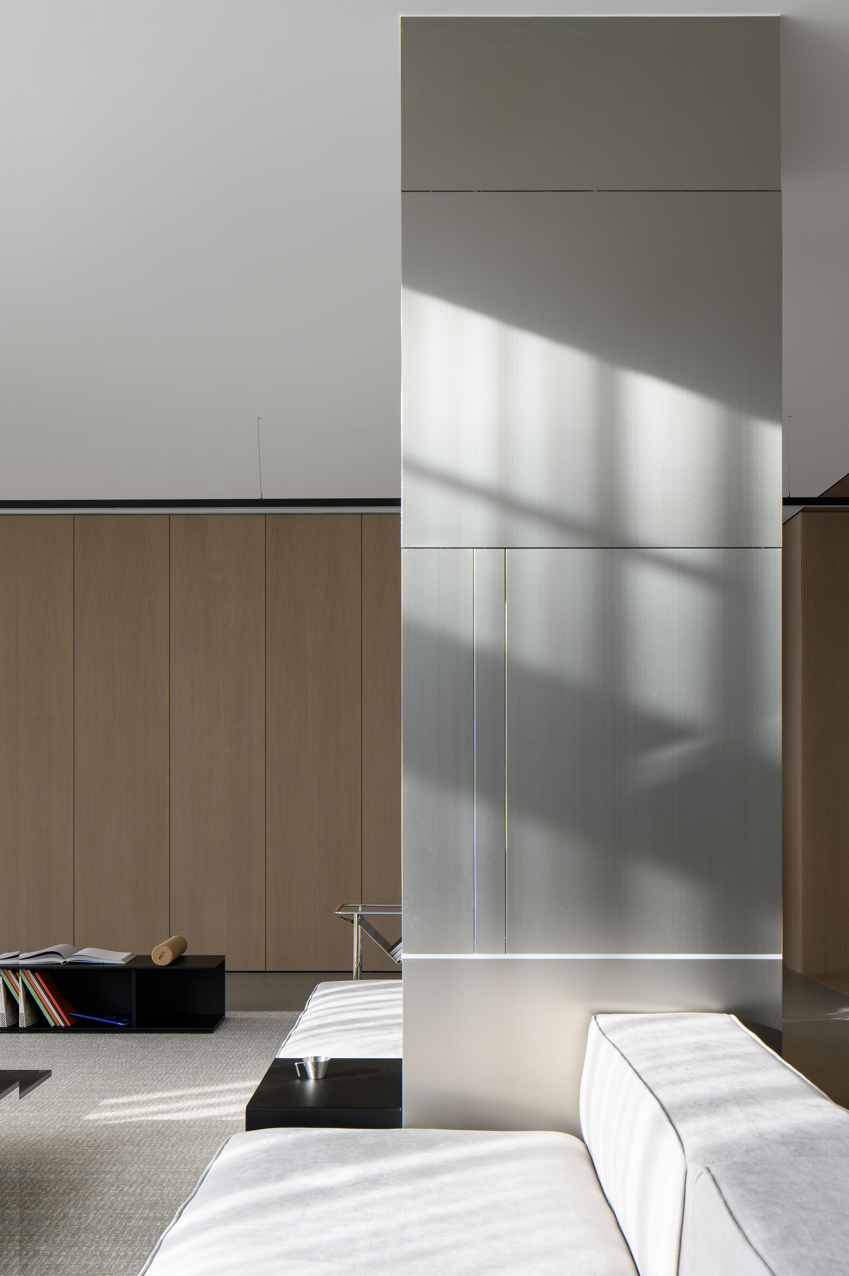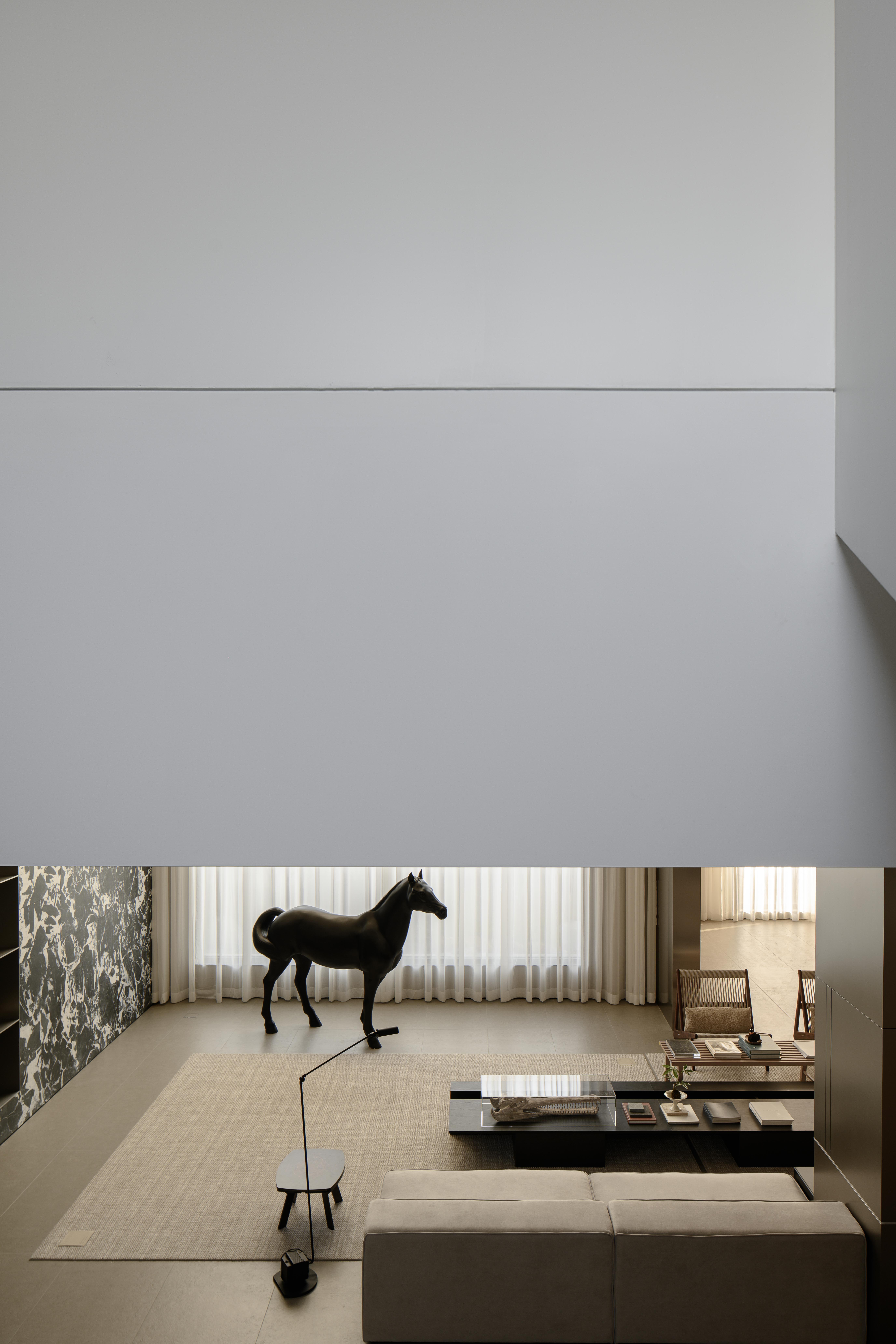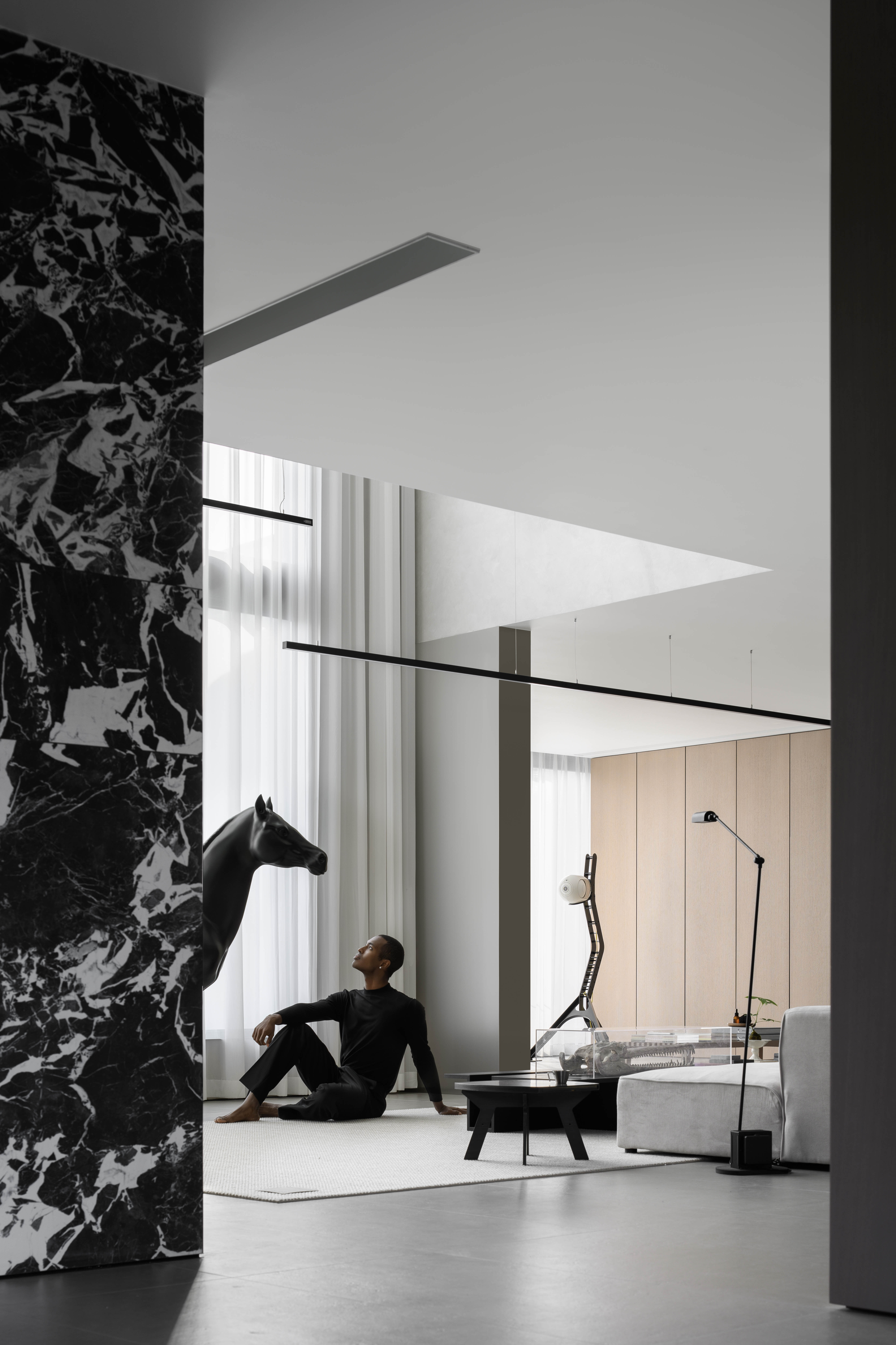 项目定位:本项目定位为一处远离城市喧嚣的度假宅,旨在打造一个既具现代艺术感,又能提供宁静生活的空间。极简现代主义的外观与1000㎡的花园相得益彰,为居住者提供私人、舒适的避世之地。整体设计突出空间的艺术感与功能性,注重居住者的隐私与自然亲近感。