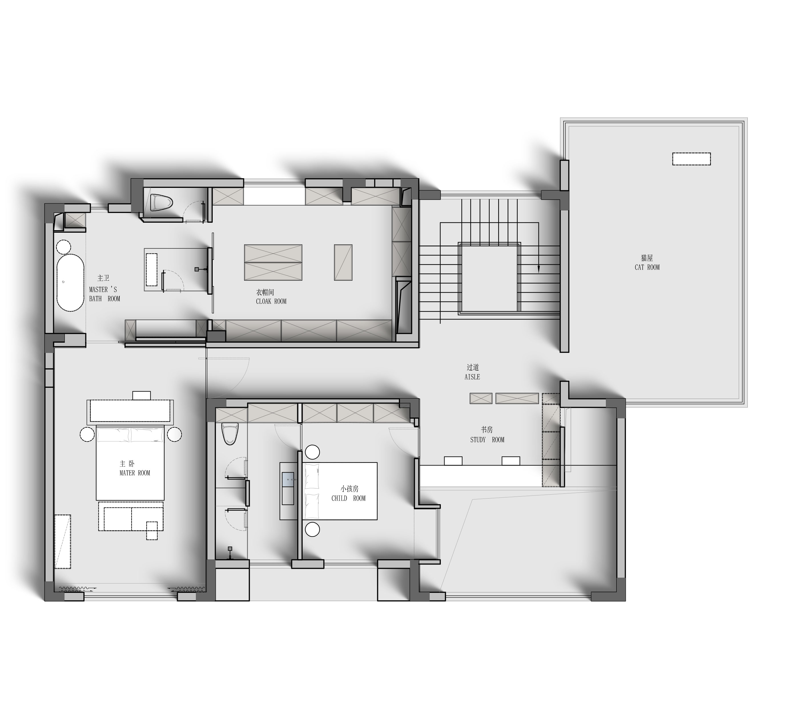 用户体验:投入使用后,用户对空间的整体效果非常满意。大面积落地窗带来的景观视野,配合私密而独立的功能区,极大增强了居住体验。书房、健身房与猫房的专属设计,满足了家庭成员对功能性和个性化的需求,用户感受到一种生活与自然融为一体的舒适感。