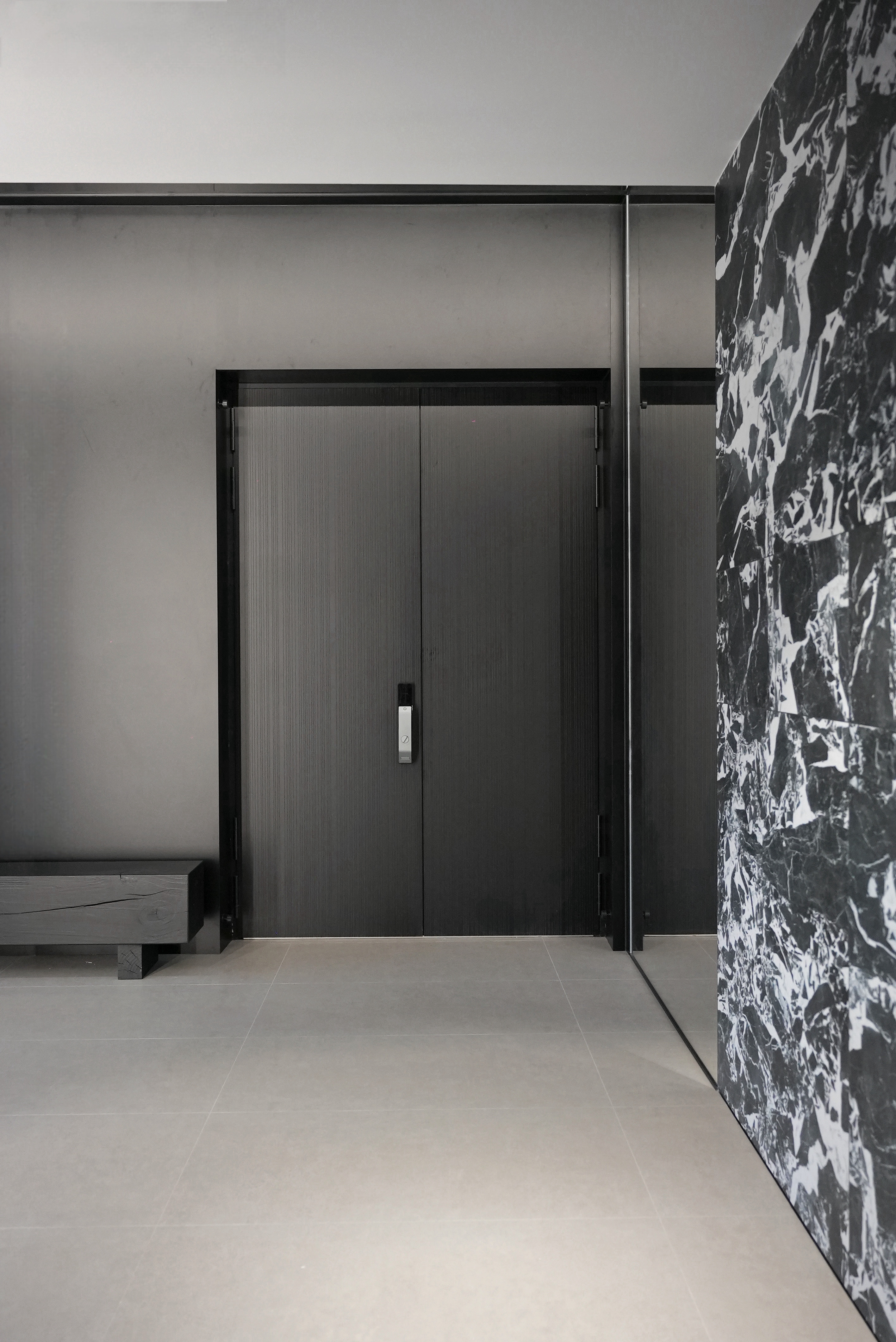 设计选材:选材上采用了木饰面、金属、玻璃等自然材料,赋予空间现代感的同时保持低碳环保。金属与天然石材的搭配不仅提升了空间的质感,还符合环保与经济性要求。简洁而有力的材料选择,使空间既具现代风尚,又注重可持续发展。