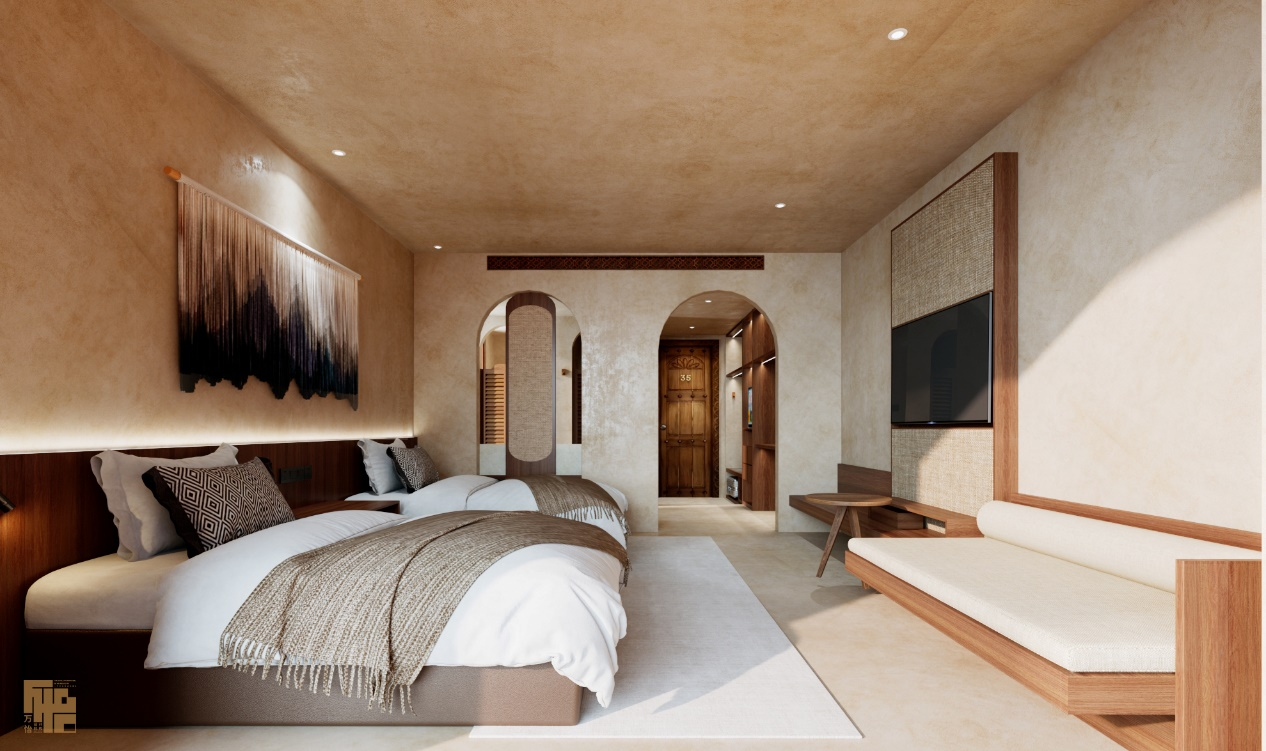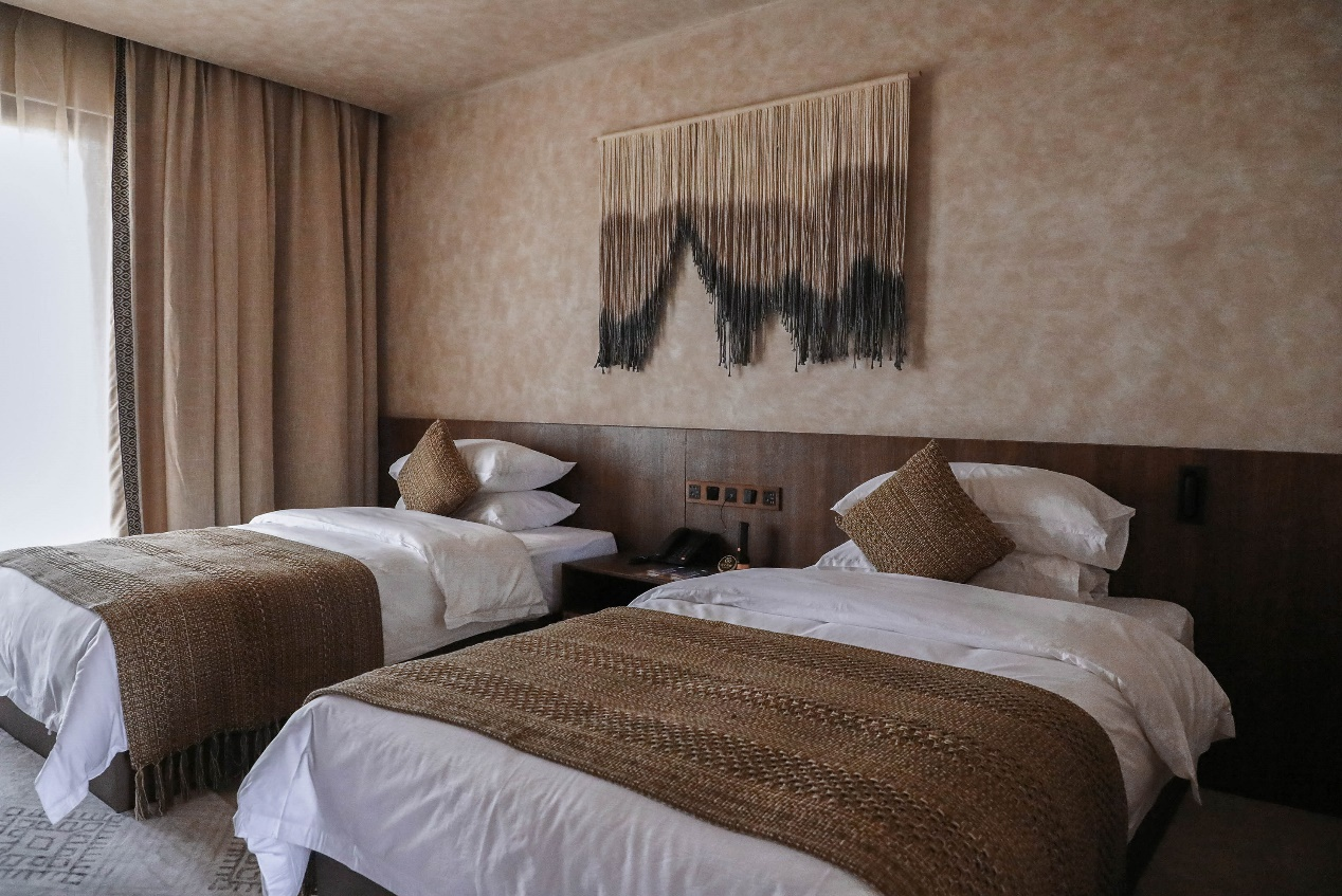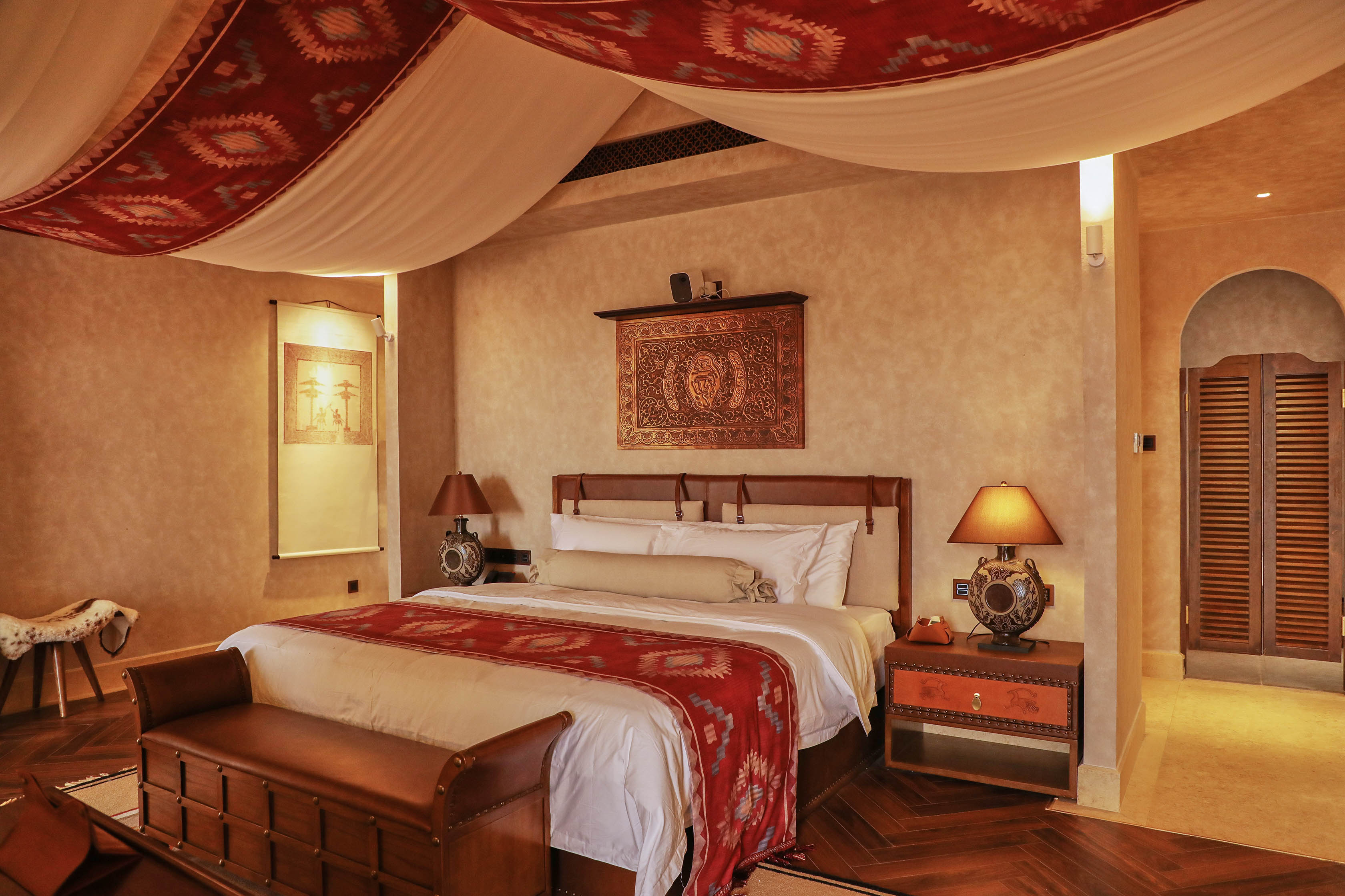 客房设计更是独具匠心。以沙漠色调为基调,搭配精致的软装,每一间客房都仿佛是一个沙漠中的温馨小窝。床品舒适柔软,能让人在一天的疲惫后迅速进入甜美的梦乡。浴室采用通透的设计,让用户在沐浴的同时也能欣赏到窗外的大漠风光,仿佛与大自然融为一体。此外,客房内的智能化设施也十分便捷,让用户能轻松掌控室内的各种环境和设施,体验到科技与自然的完美结合。