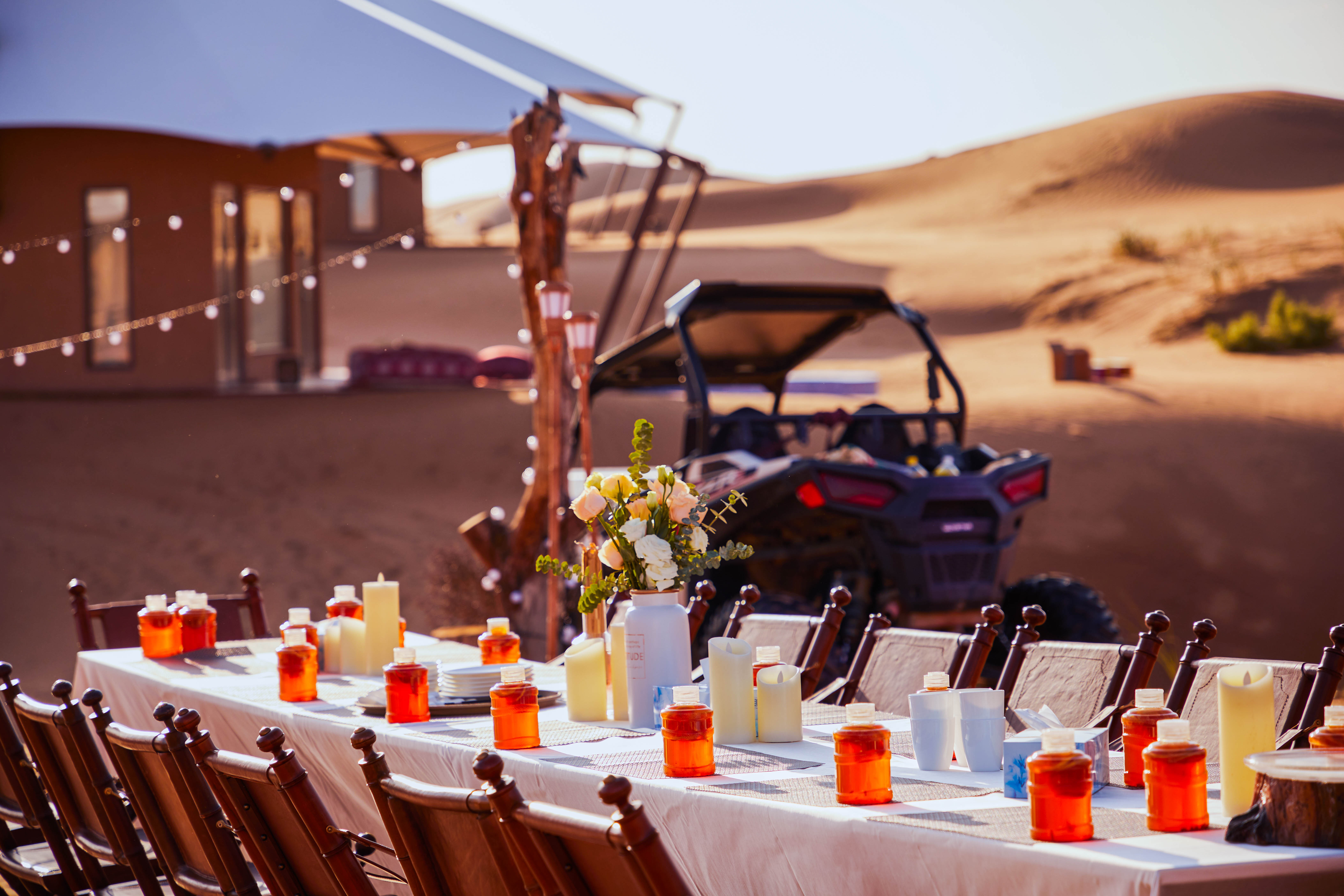 利用沙漠中的自然元素,如风干的树枝、沙漠植物等进行装饰,既体现了地域特色,又增添了自然的生机与灵动,与传统酒店的华丽装饰风格形成鲜明对比。 -