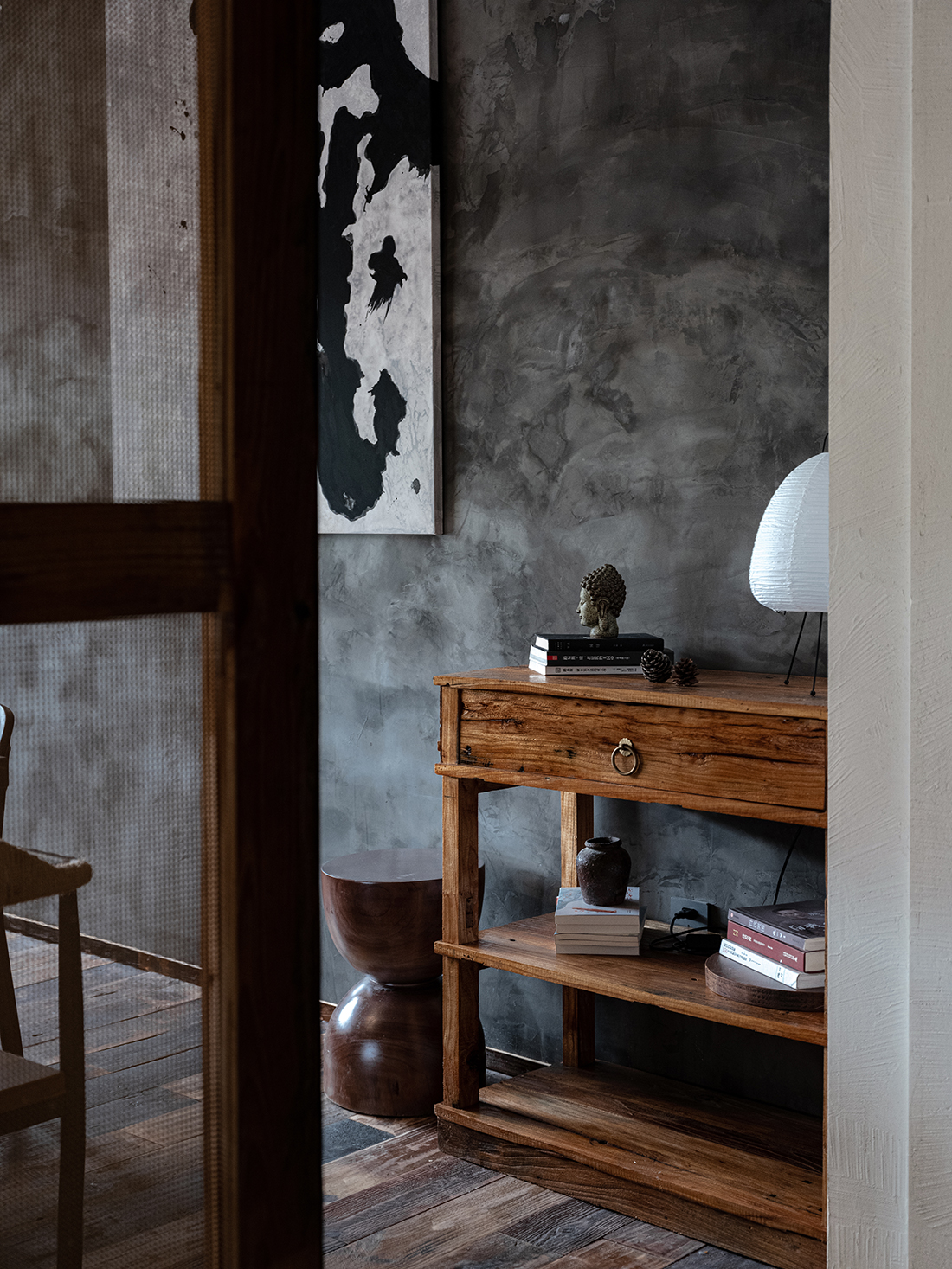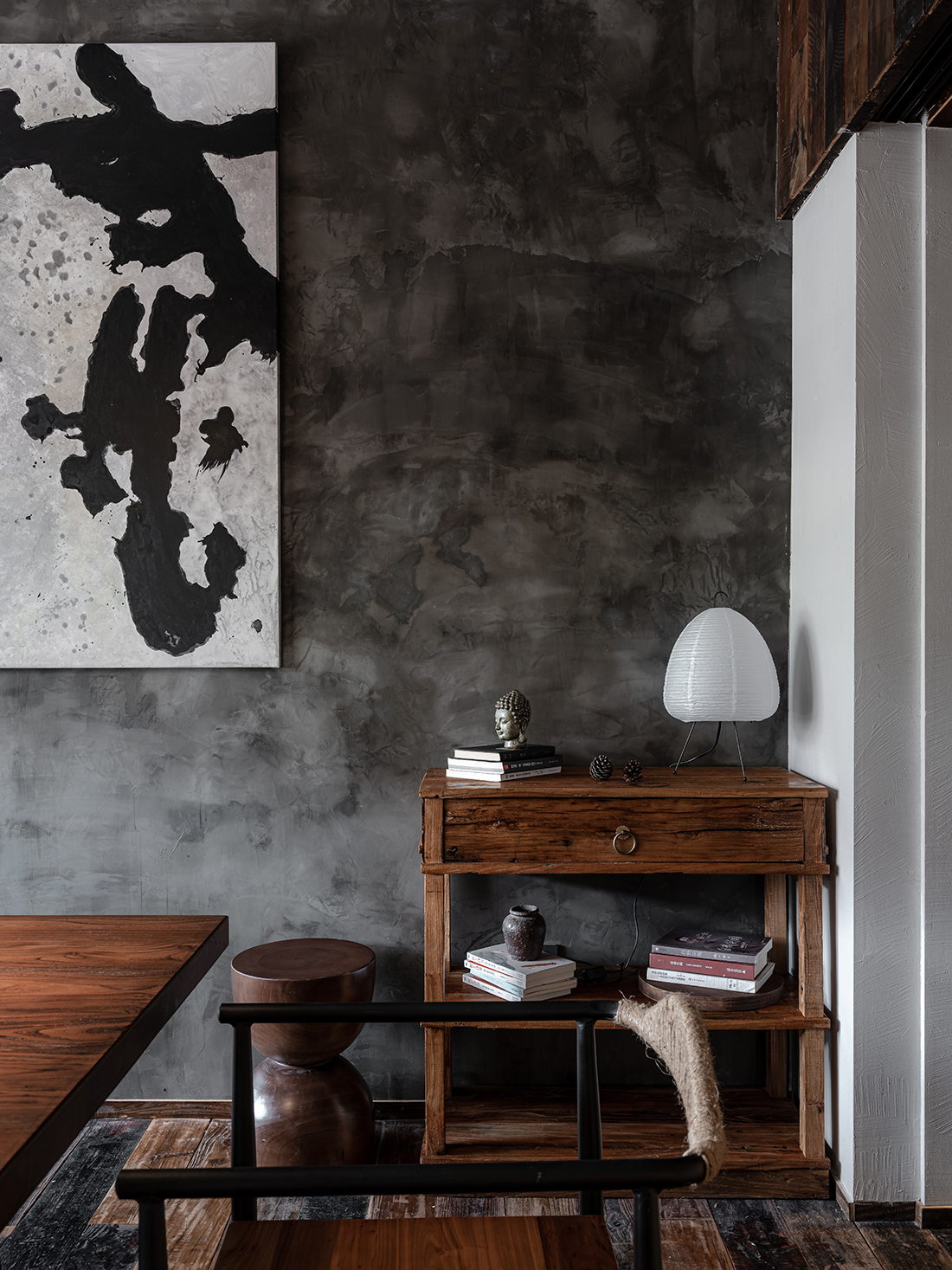 毛胚水泥与质朴木材的结合,自然而往,朴拙归真;