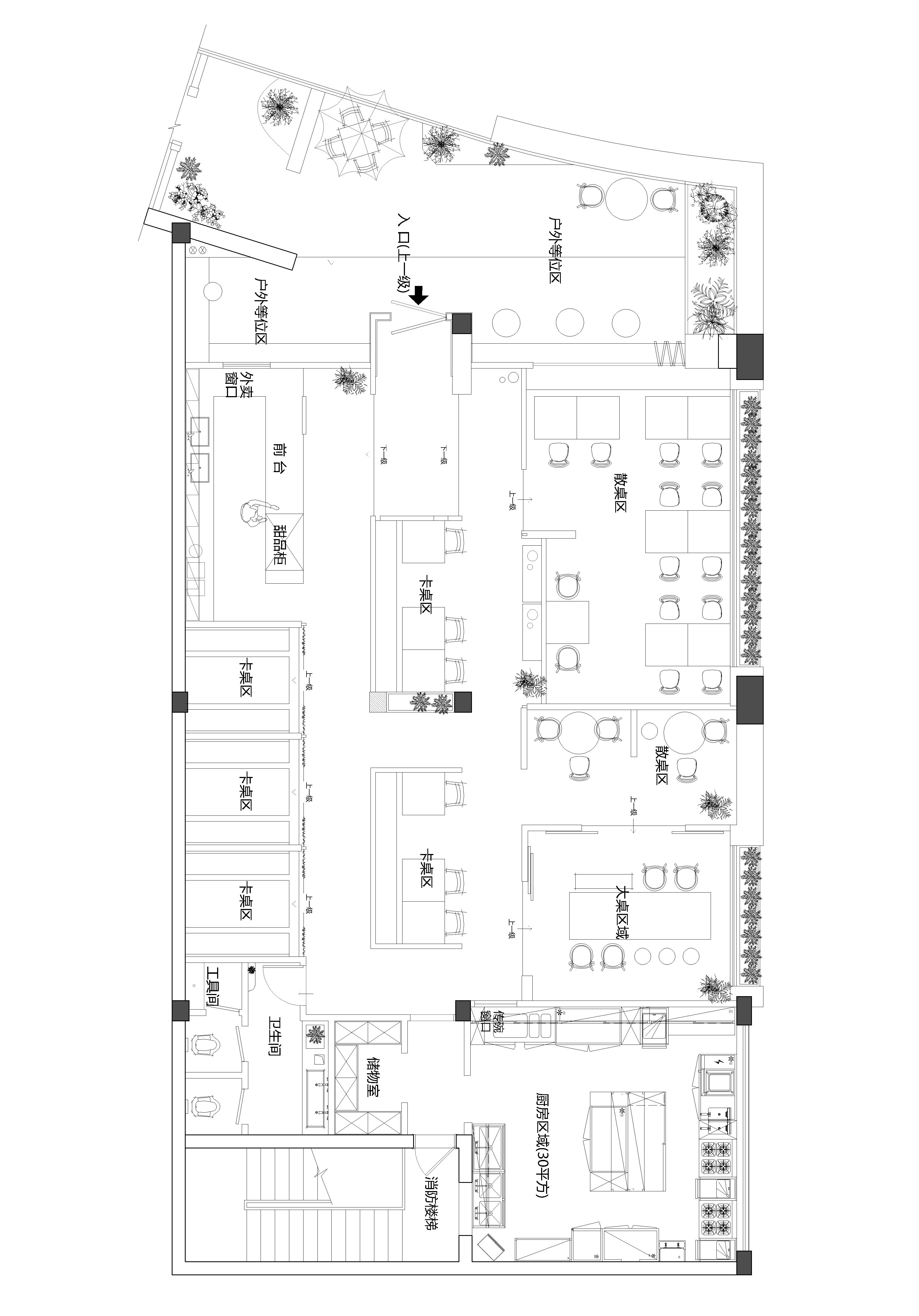 项目场地带有一个外院,在设计结构上,我们让室内外可互动对话;