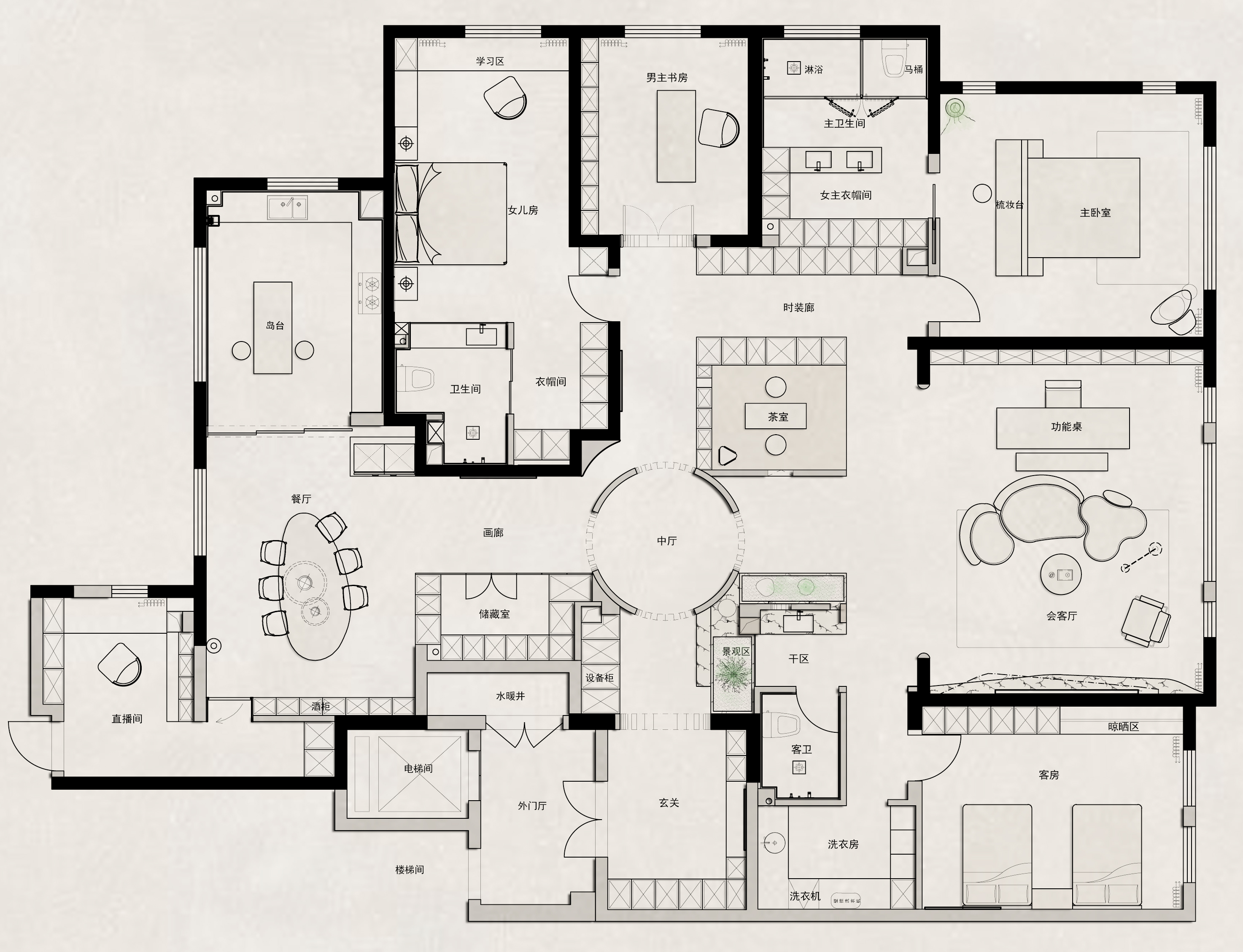 中厅,动线,作为人和空间互动的秩序,既承担空间使用功能,又传递空间与空间的联结,提供丰富的情绪价值