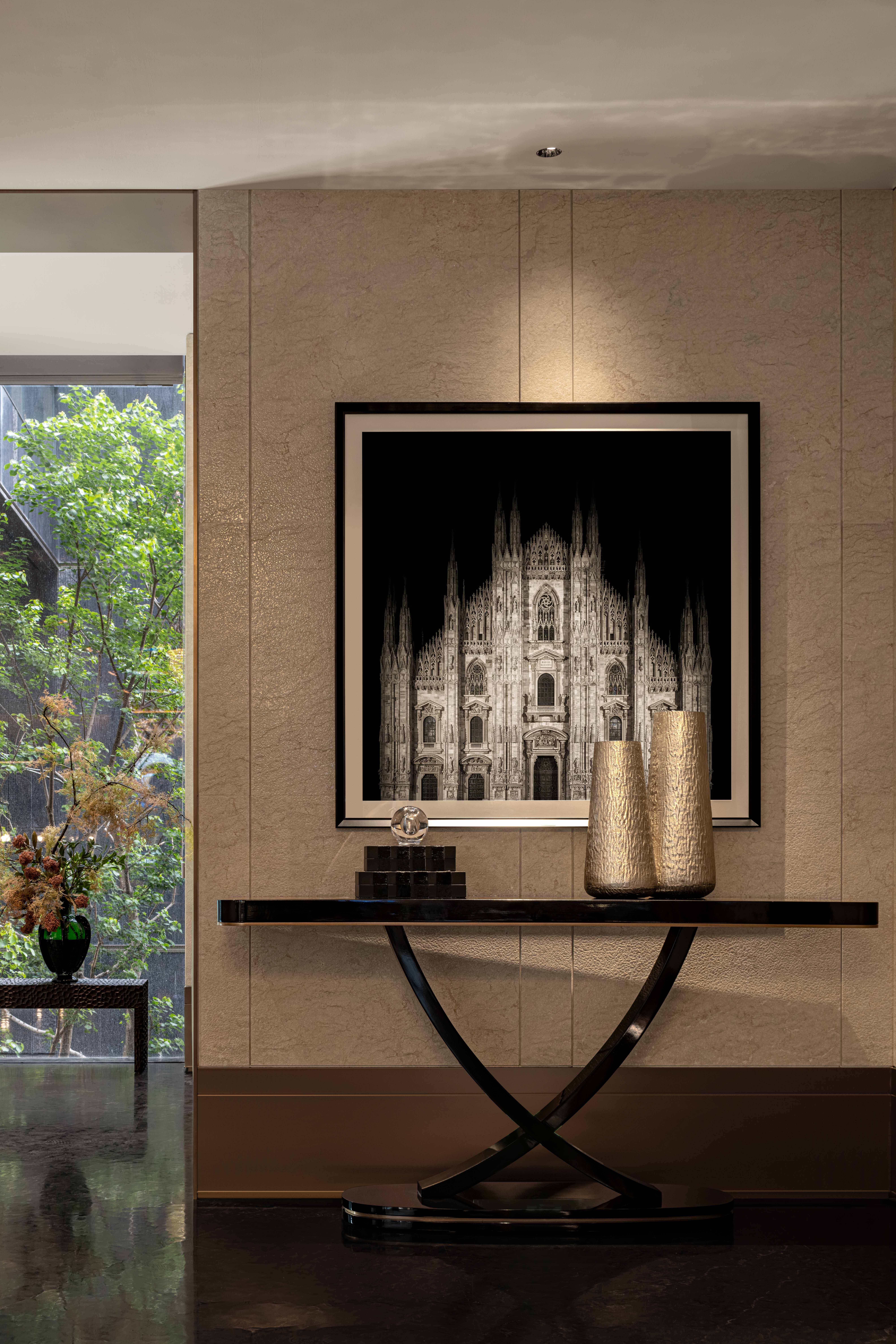 过道装置沿用了宝格丽传统的黑白挂画艺术手法