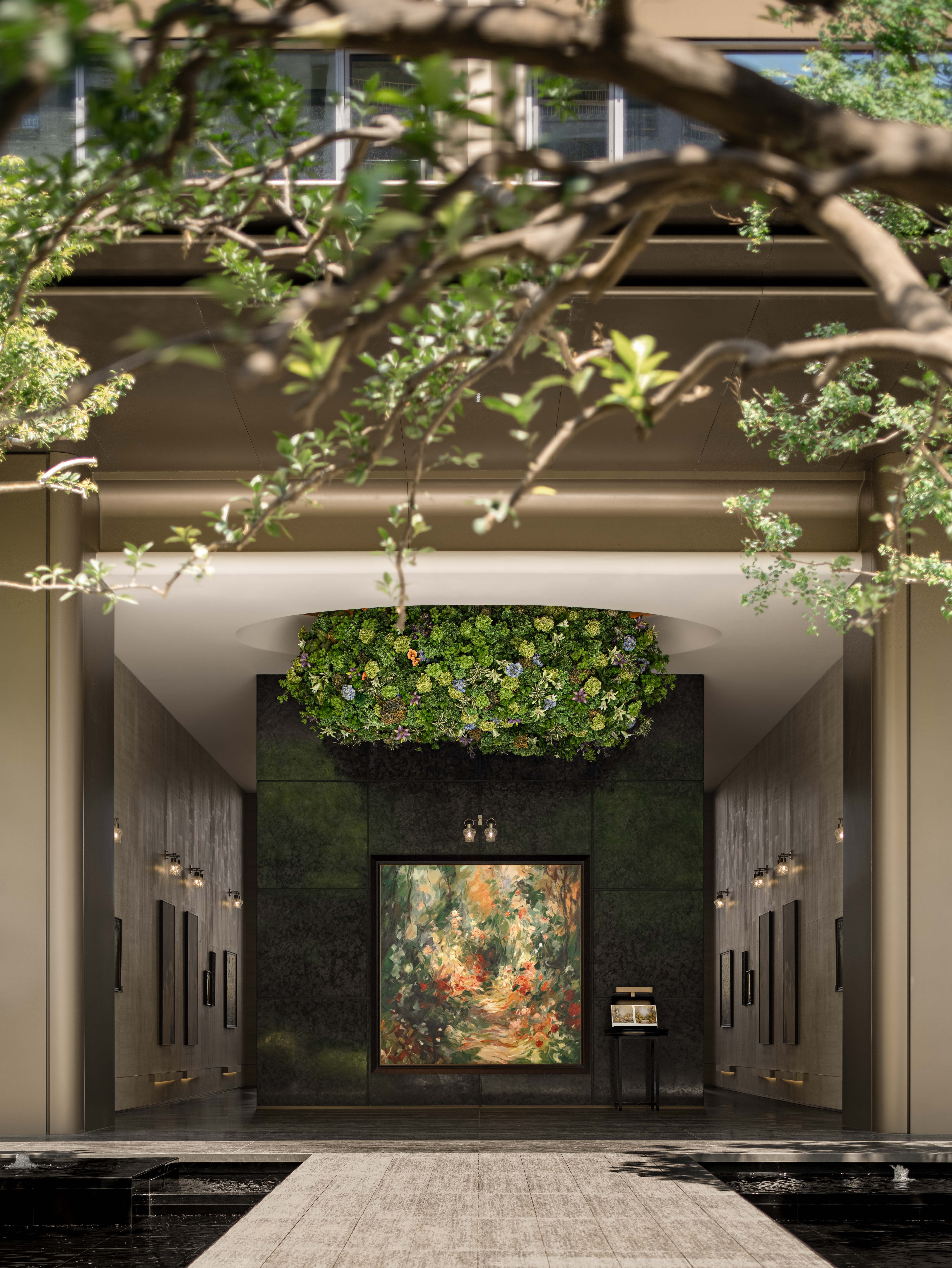 单元间的入口被布置成了一场名为“繁盛花园”的当代艺术画展,每一幅画作都是一处绽放的花朵