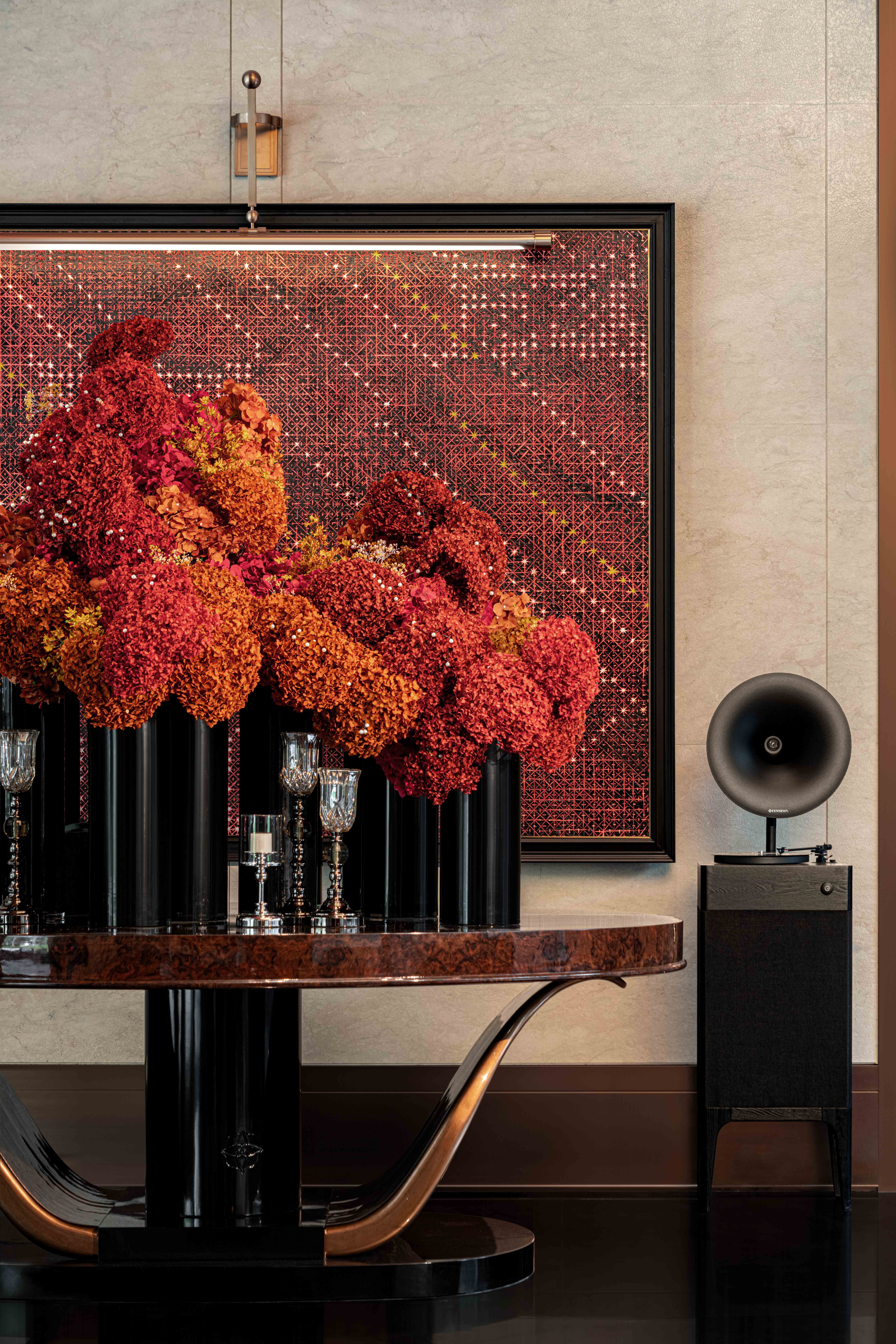 艺术装置运用雕塑感的花艺手法,将自然之美以凝固的姿态呈现