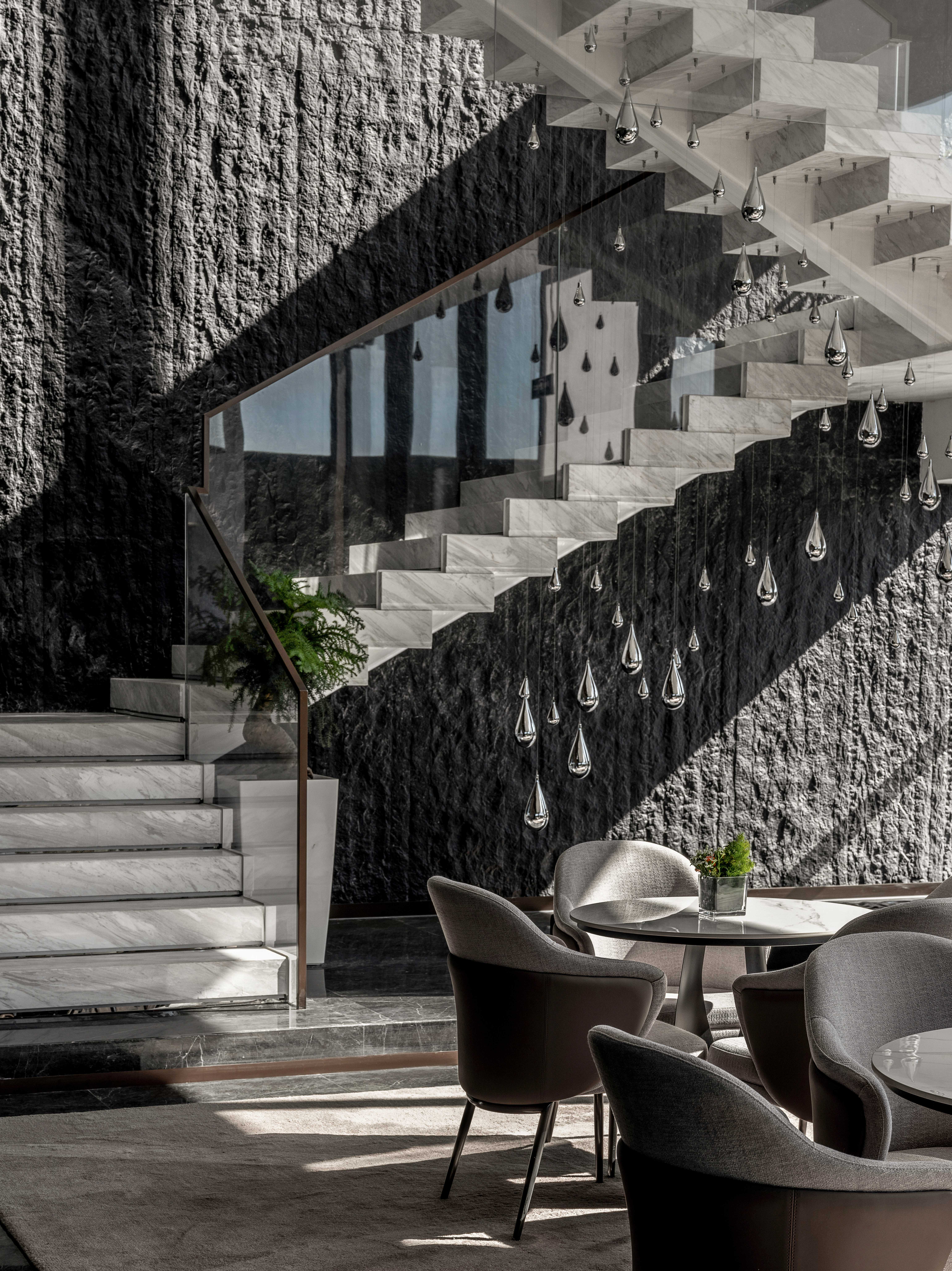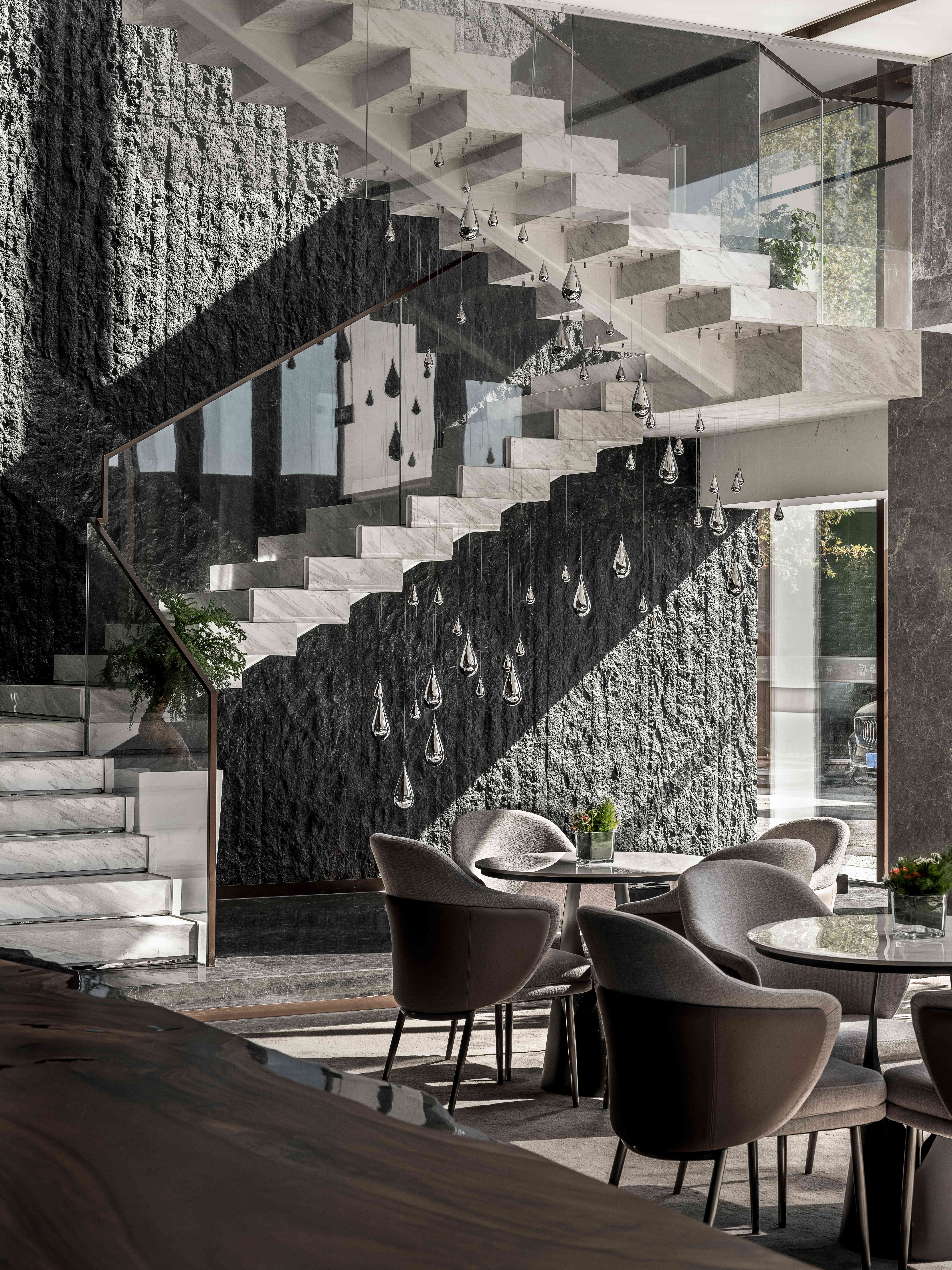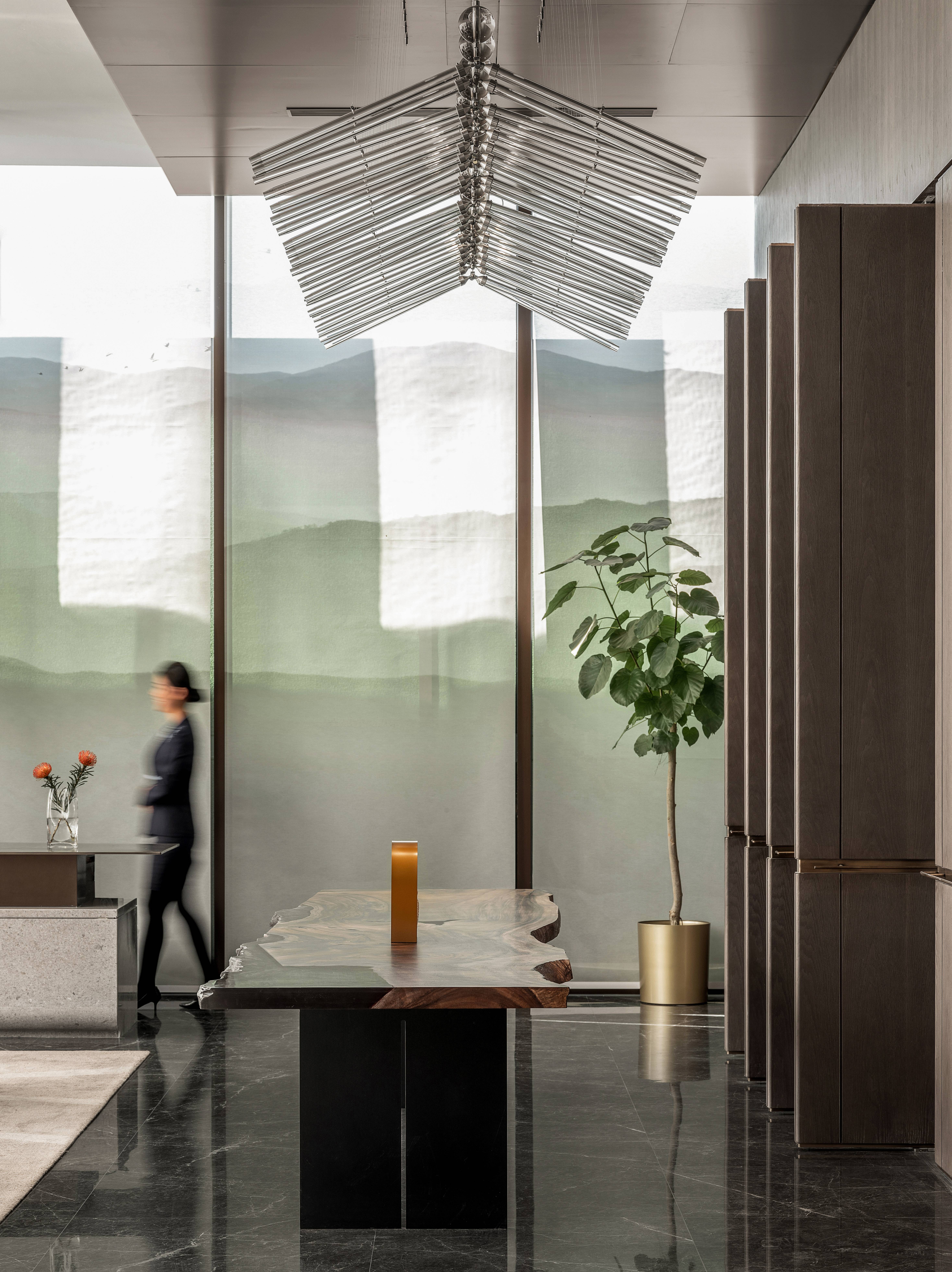 空间意境:按照中国人的传统精神,造房子是造一个小世界:上段远山,中段池水,近处老树,树下有亭,顶覆茅草。其中饱含人们对自然、居所、精神空间的价值向往。进入现代,隐于都市成为了这种传统寄望的当代解法,而建筑空间也更积极地实践着其精神意义。“以当代致敬东方”的理念应运而生,在设计师对空间的塑造中,“风雅东方,诗意栖居”具有了更丰富的现代性,对居住意义和生活哲学的恒久思考也化一处值得永居的城市空间,拓展生活与时间的维度。