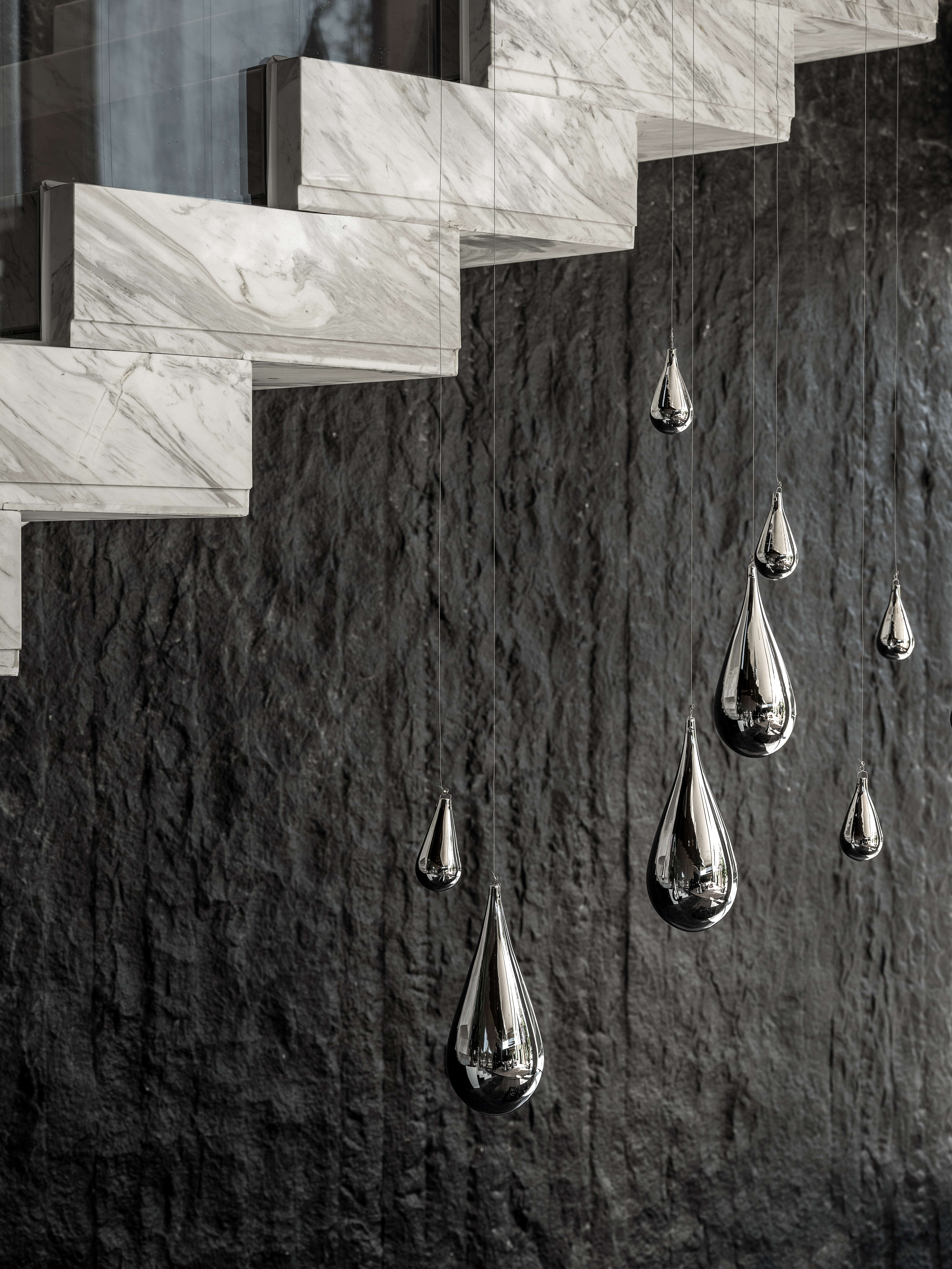 设计选材:大胆的使用了PU材质代替了部分石材材质,从空间美学上倡导用人工能达到经济性和环保性兼具的优点环保材料去替代天然材料。