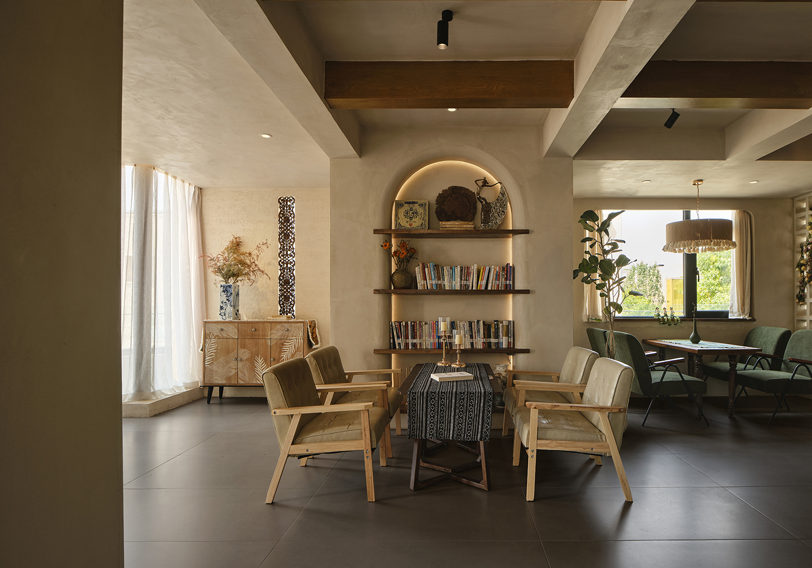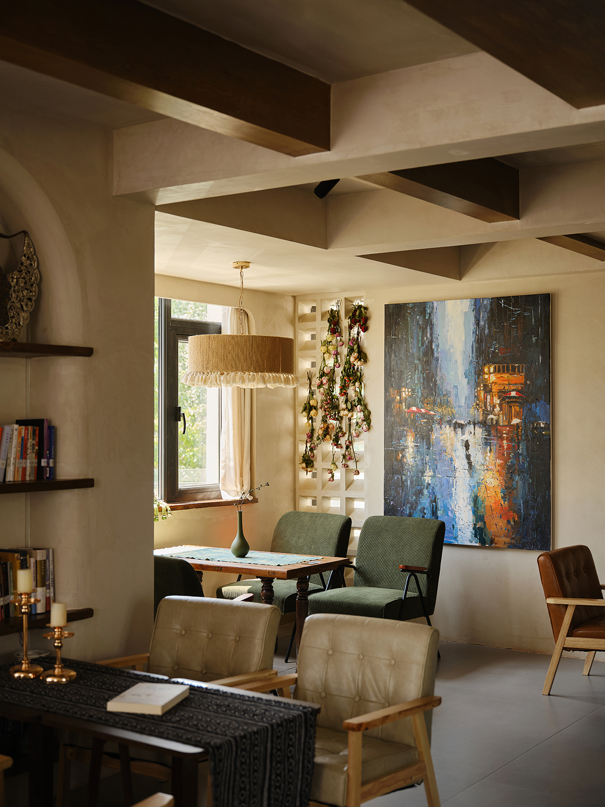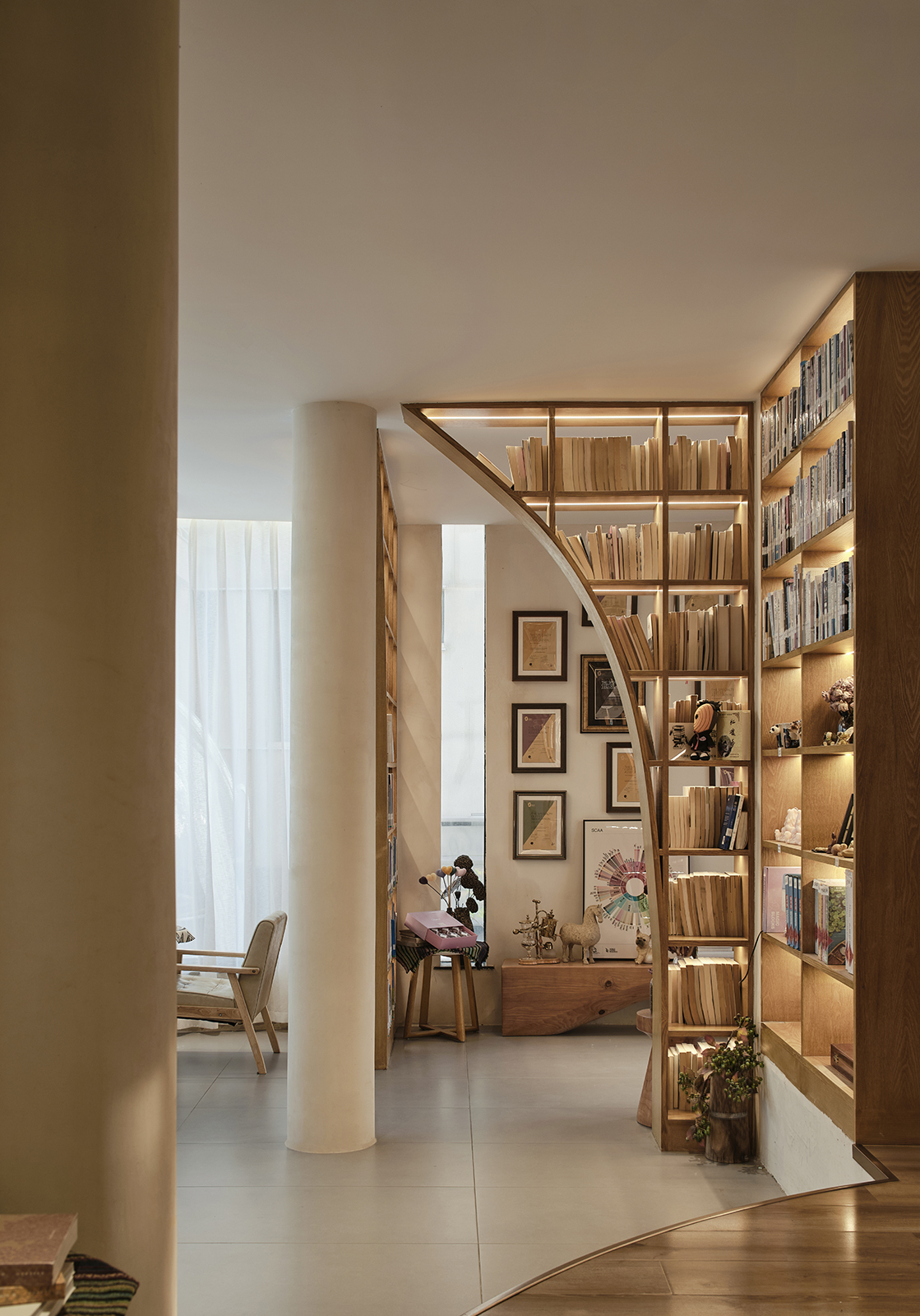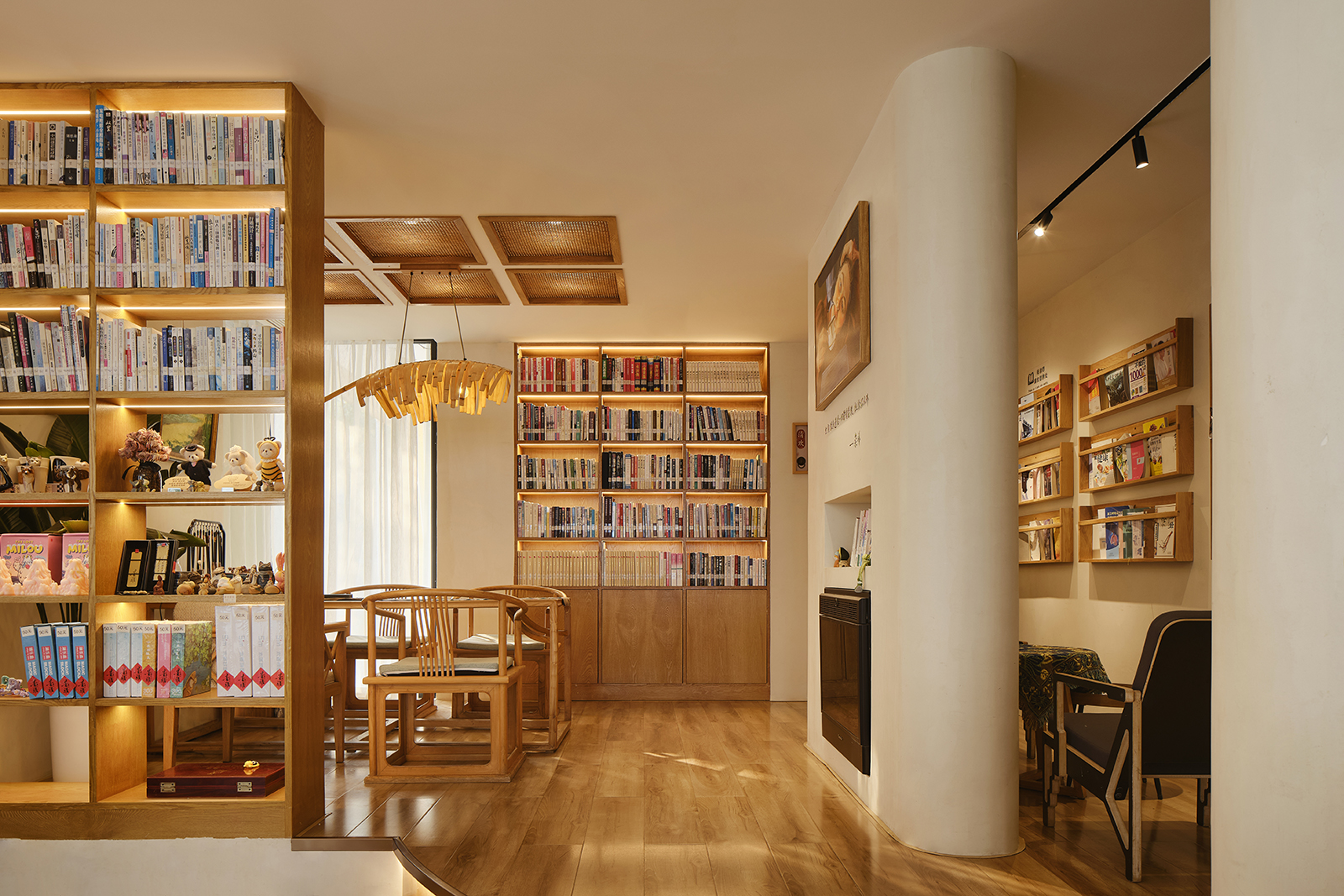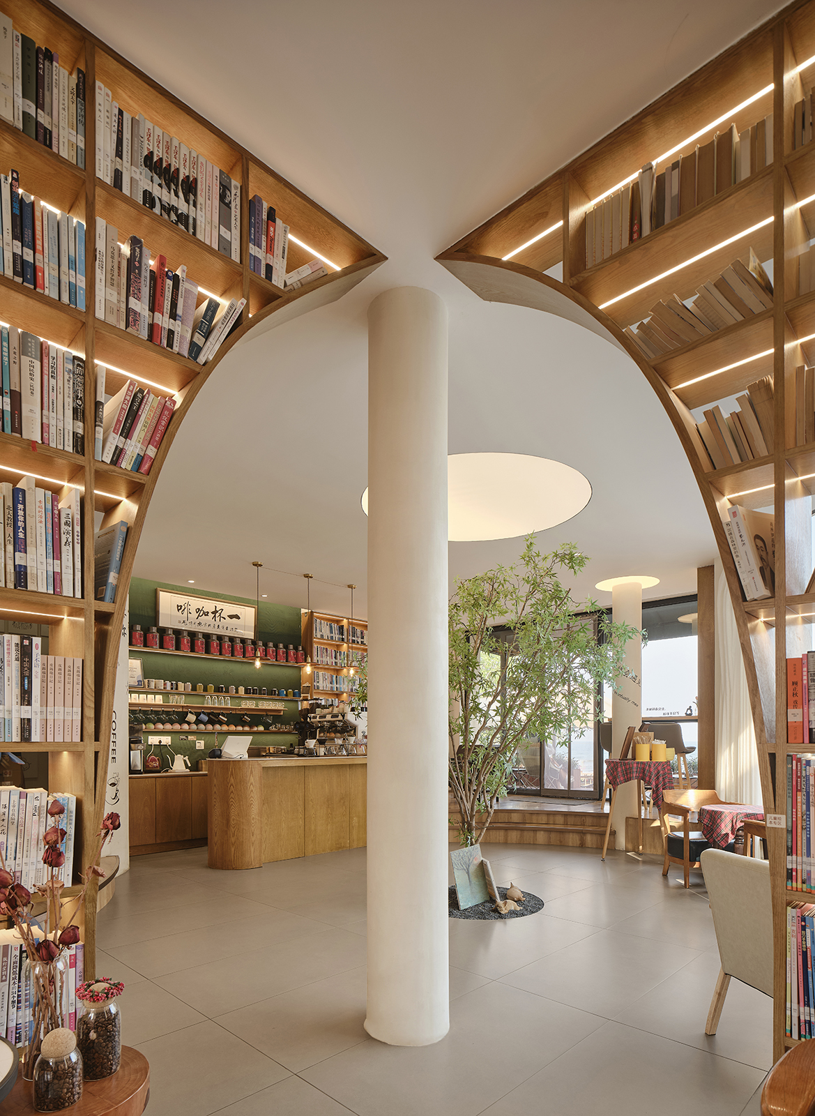 为了营造一个舒适、放松的氛围,店内以中性色调为主,并书籍相结合,再融入艺术品与植物,是每个空间都能为顾客提供足够的氛围感和情绪价值。