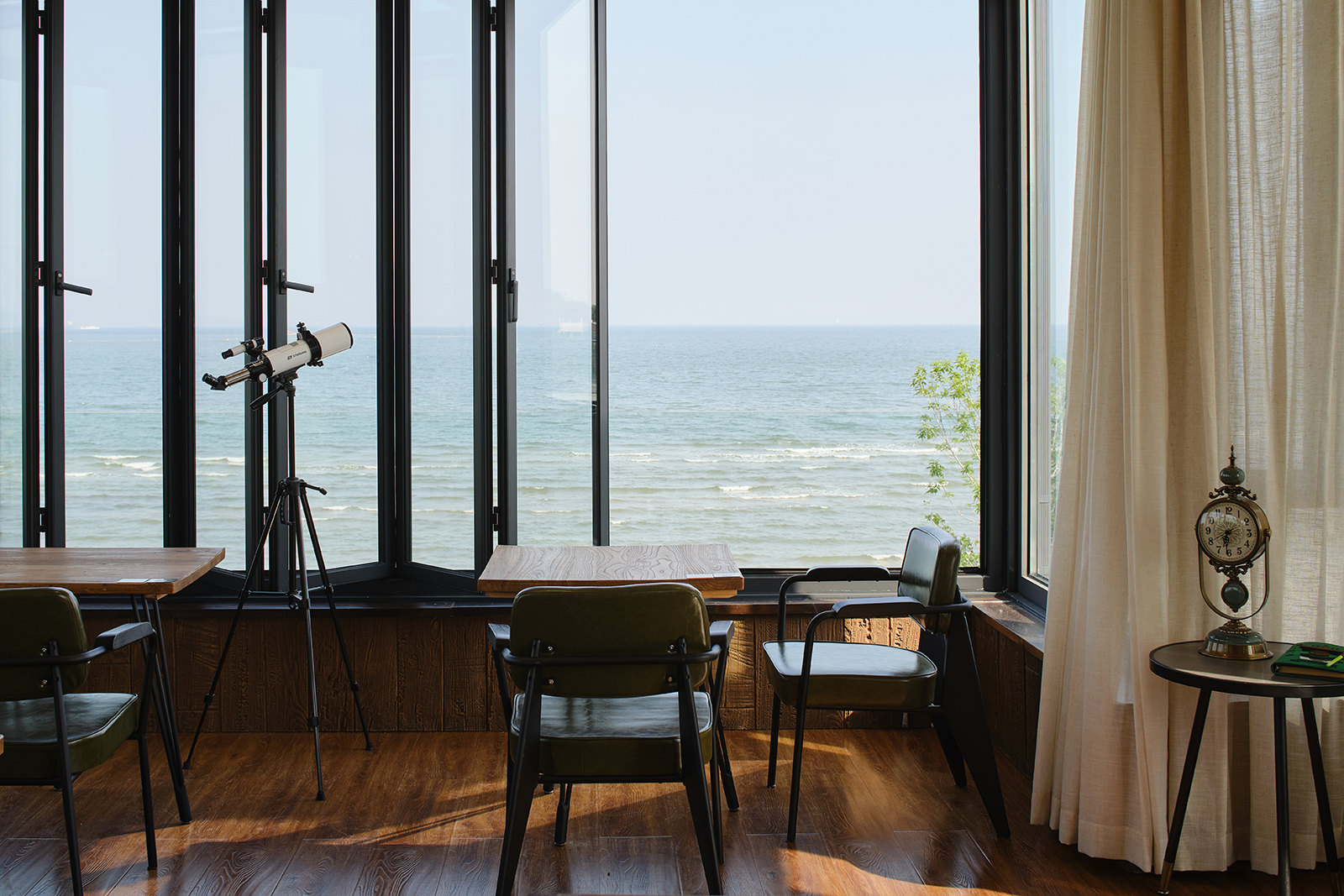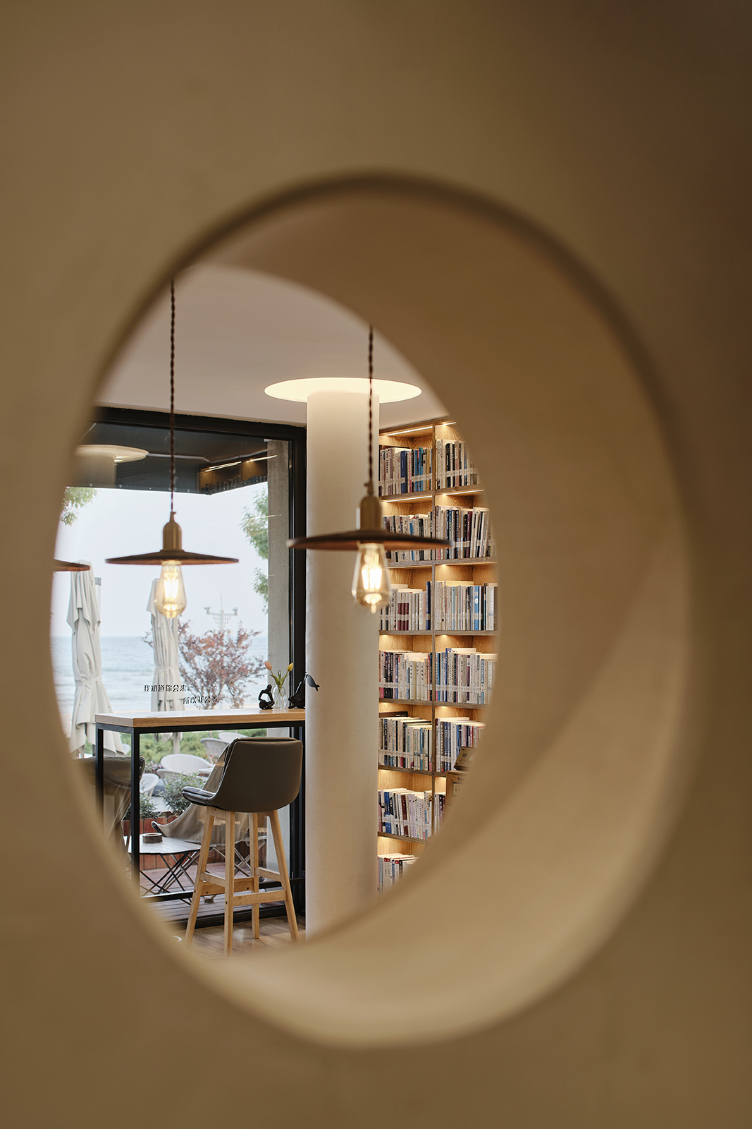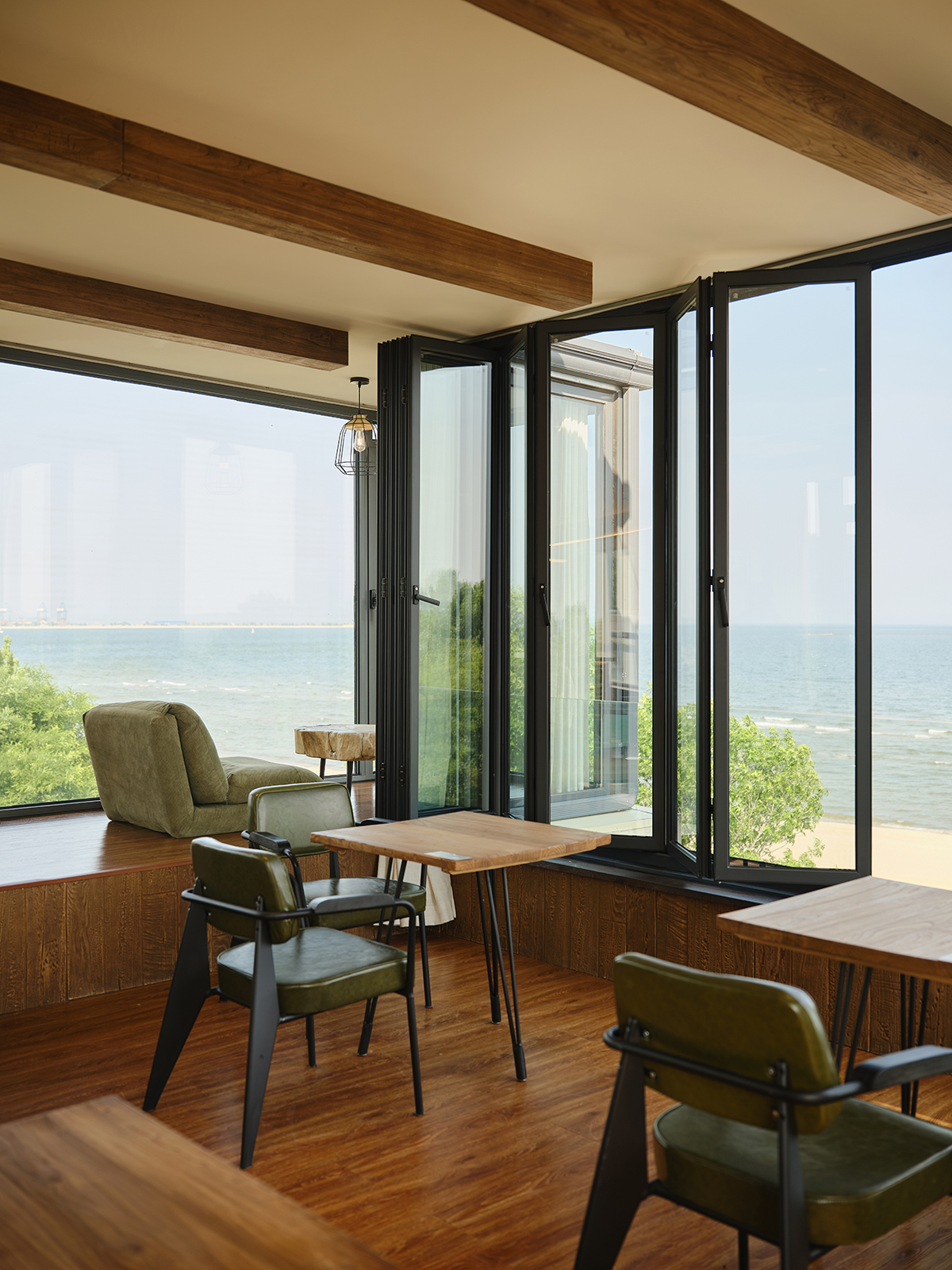 墨雅咖啡馆近邻大海,为顾客提供了观海露台与自由开合的超大观景窗,并专门设定了单人静享区,让一个人喝咖啡看海也感觉不到尴尬与孤独。