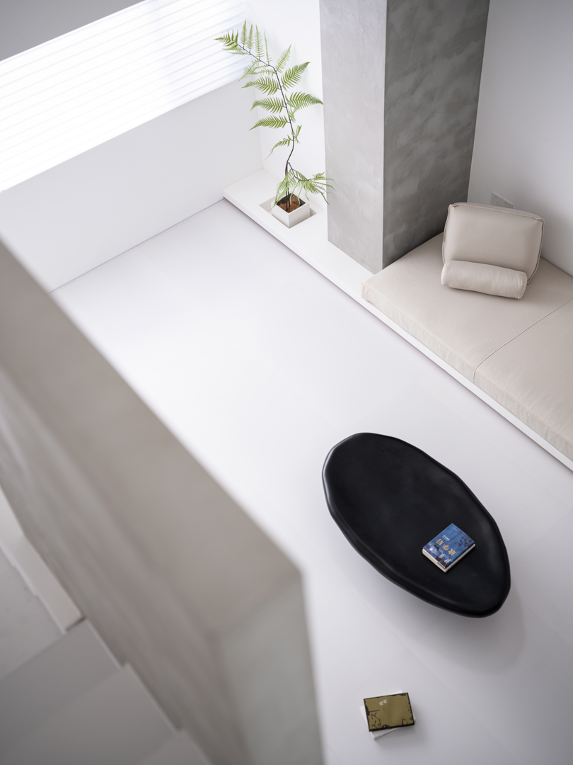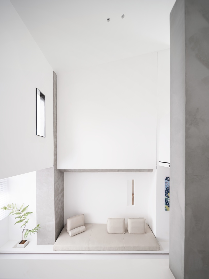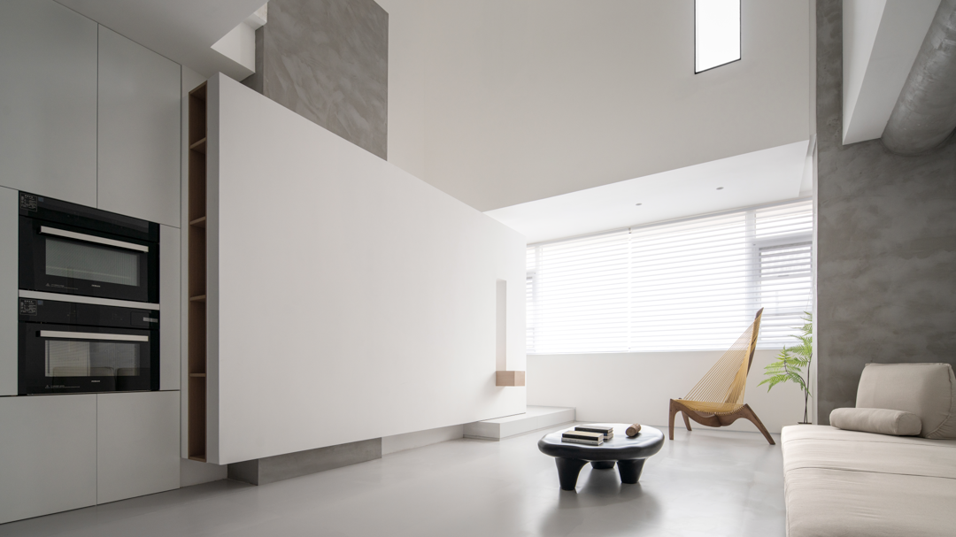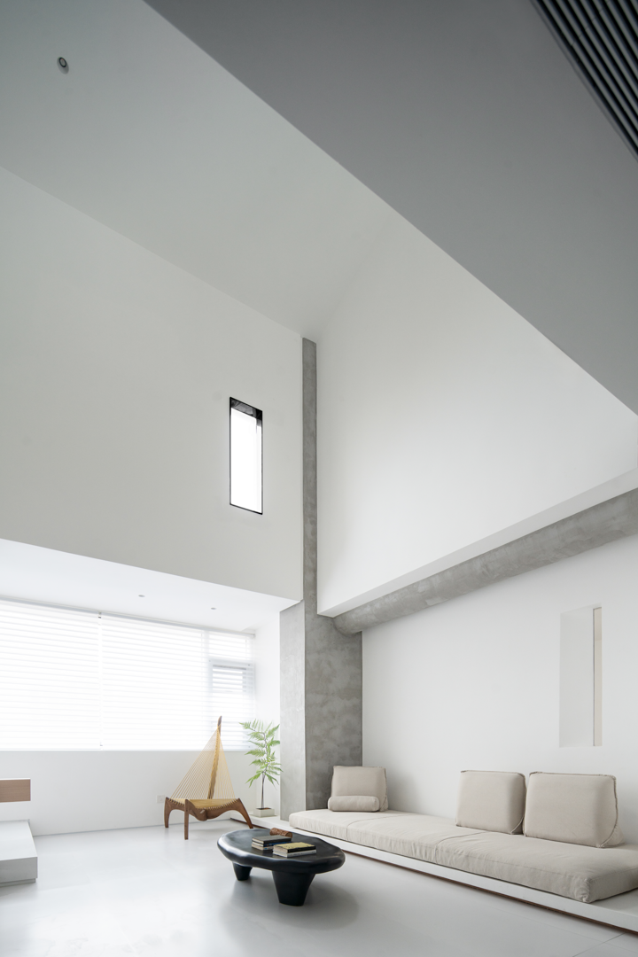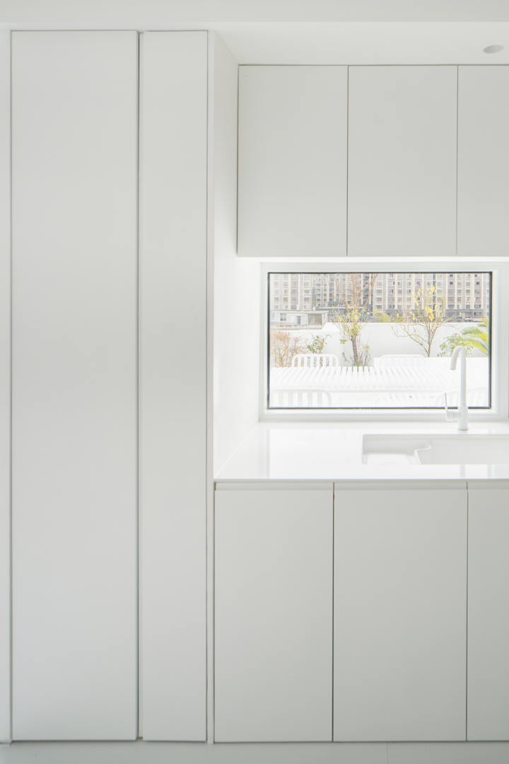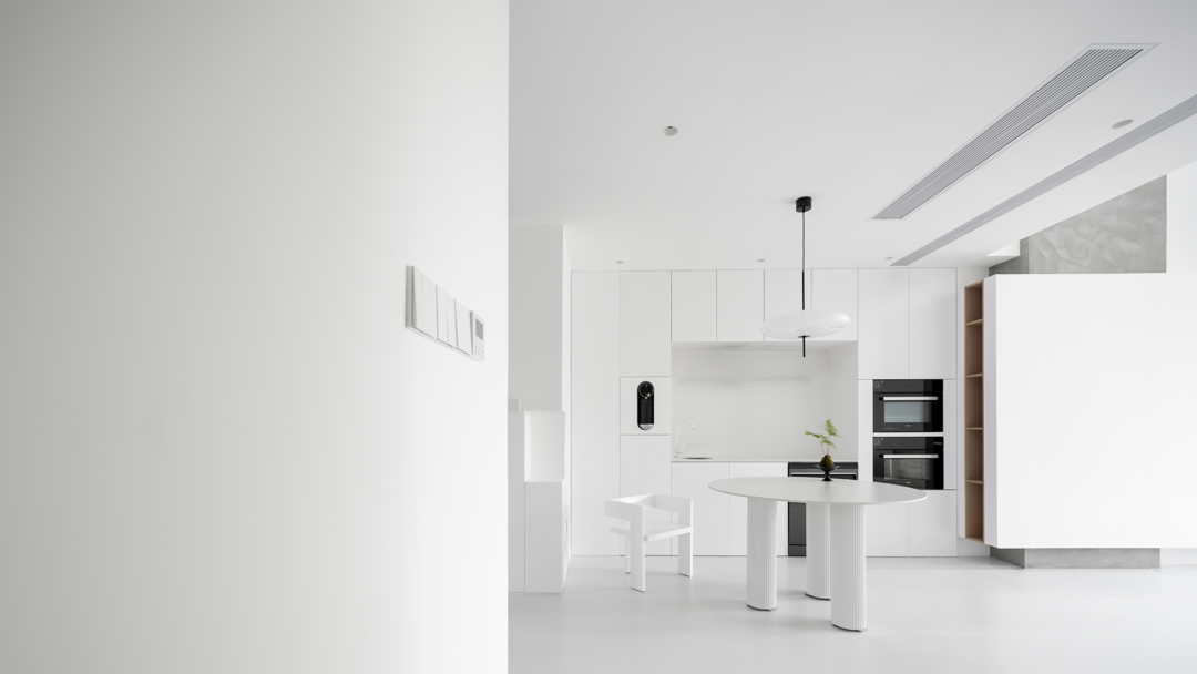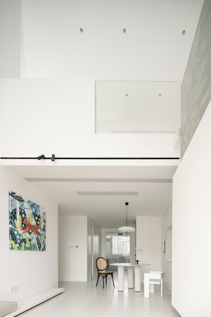 采用简单素雅的白以及裸露在外的浅灰水泥,简约实用美观的同时,可修复性强,使用年限长。辅以绿植以及布艺等软装,空间自然且易更换。