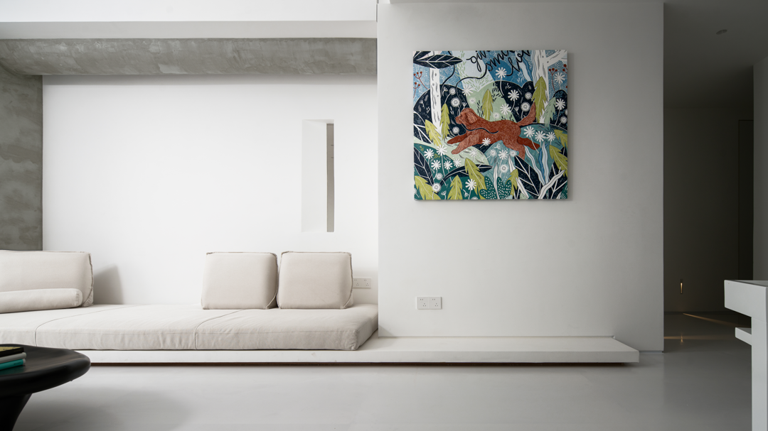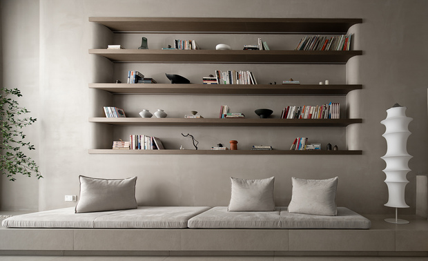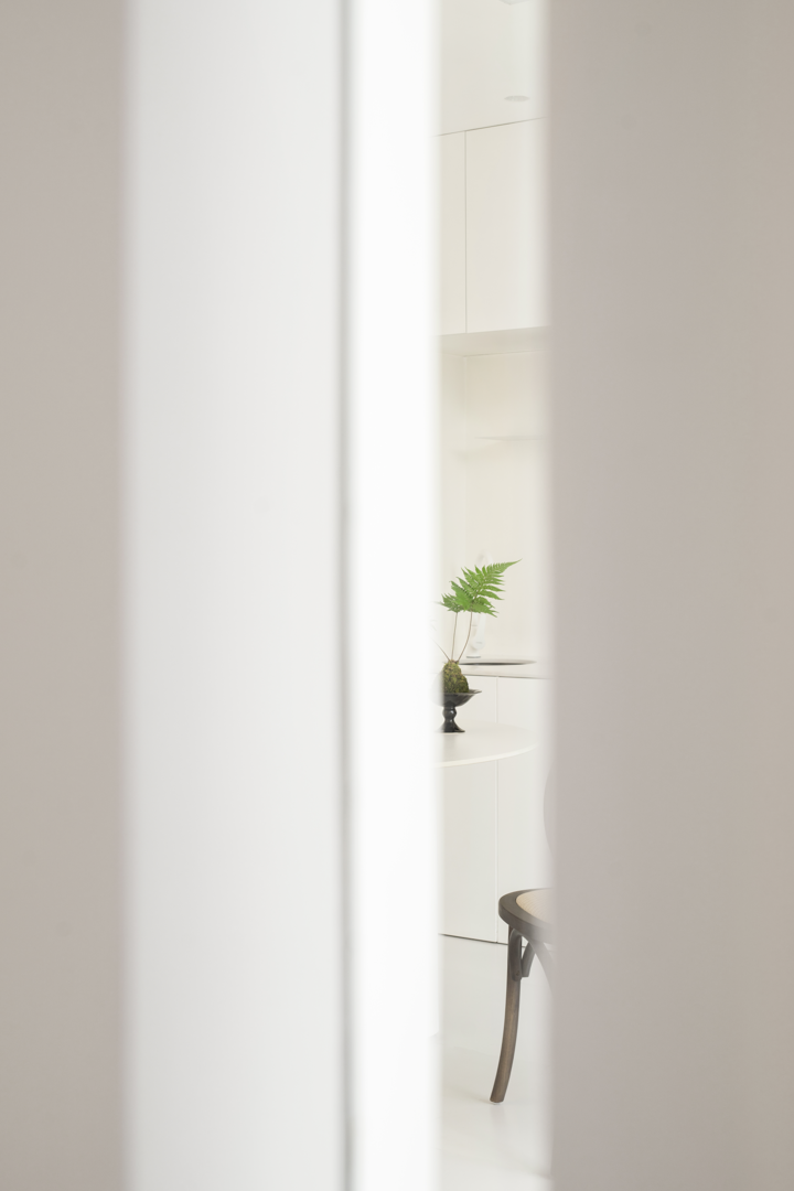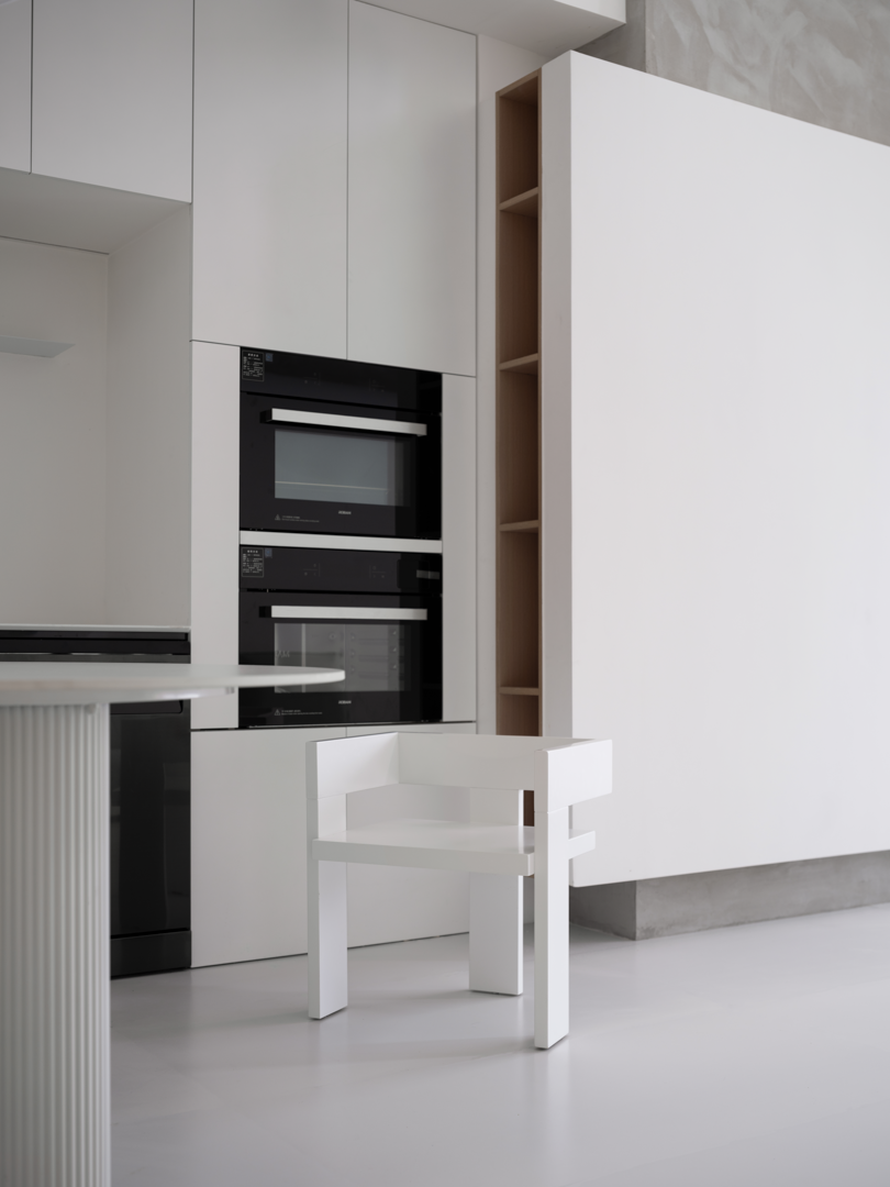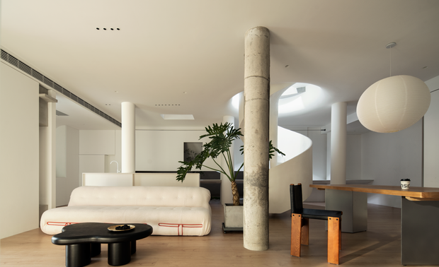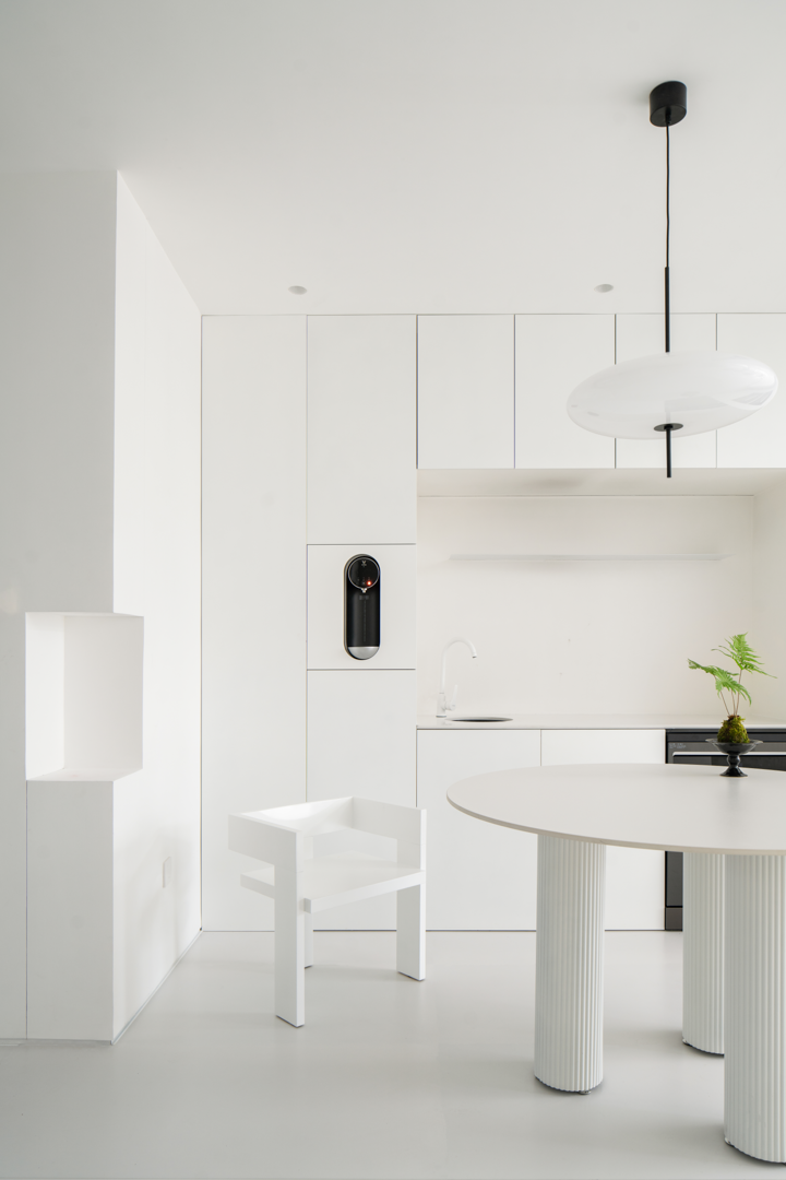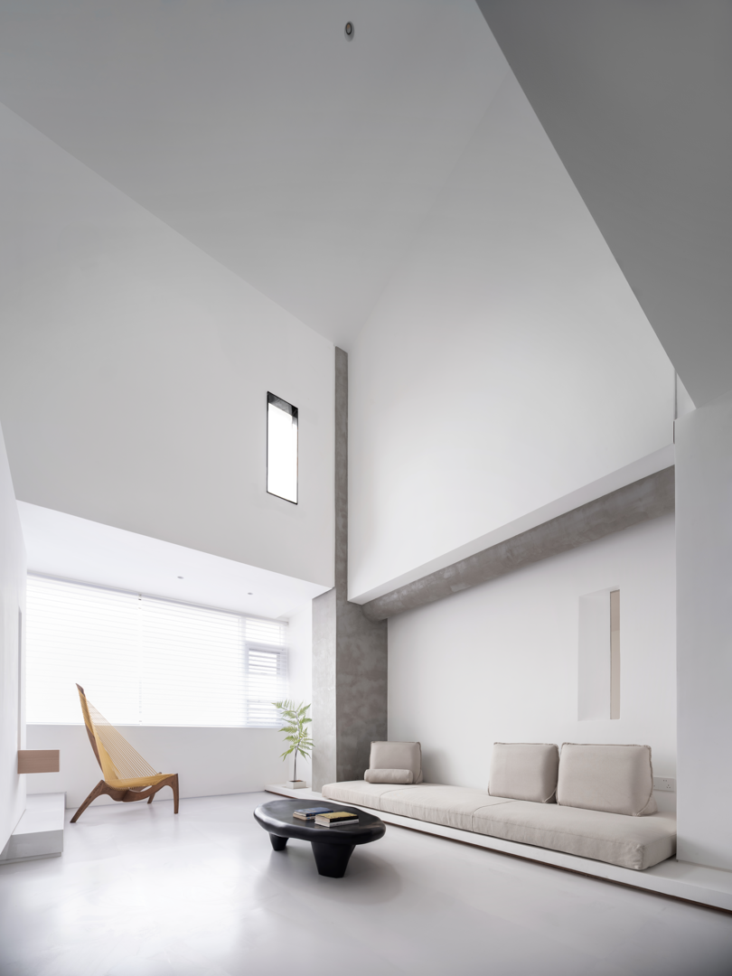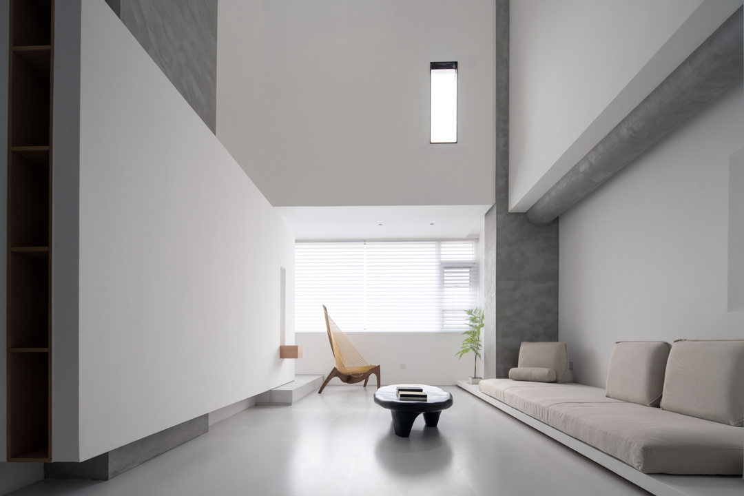 采用简单素雅的白以及裸露在外的浅灰水泥,简约实用美观的同时,可修复性强,使用年限长。辅以绿植以及布艺等软装,空间自然且易更换。