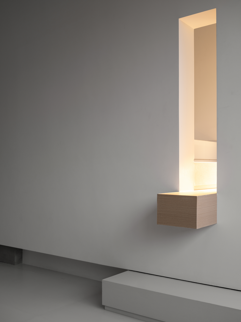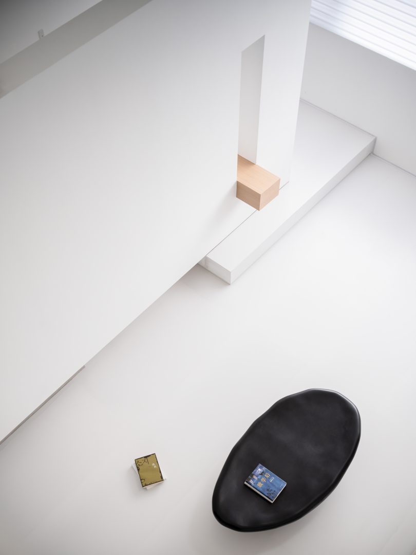 此空间将两层空间相互交叠,运用简洁的体块穿插、制造出空间的层次感。利用直线,弧线将主要空间进行划分,通过线条、形状对空间的处理,达到一个和谐共存的状态。另外通过墙面的线条结构为空间增加深度与细节,让空间场景更有层次感及视觉延展性。