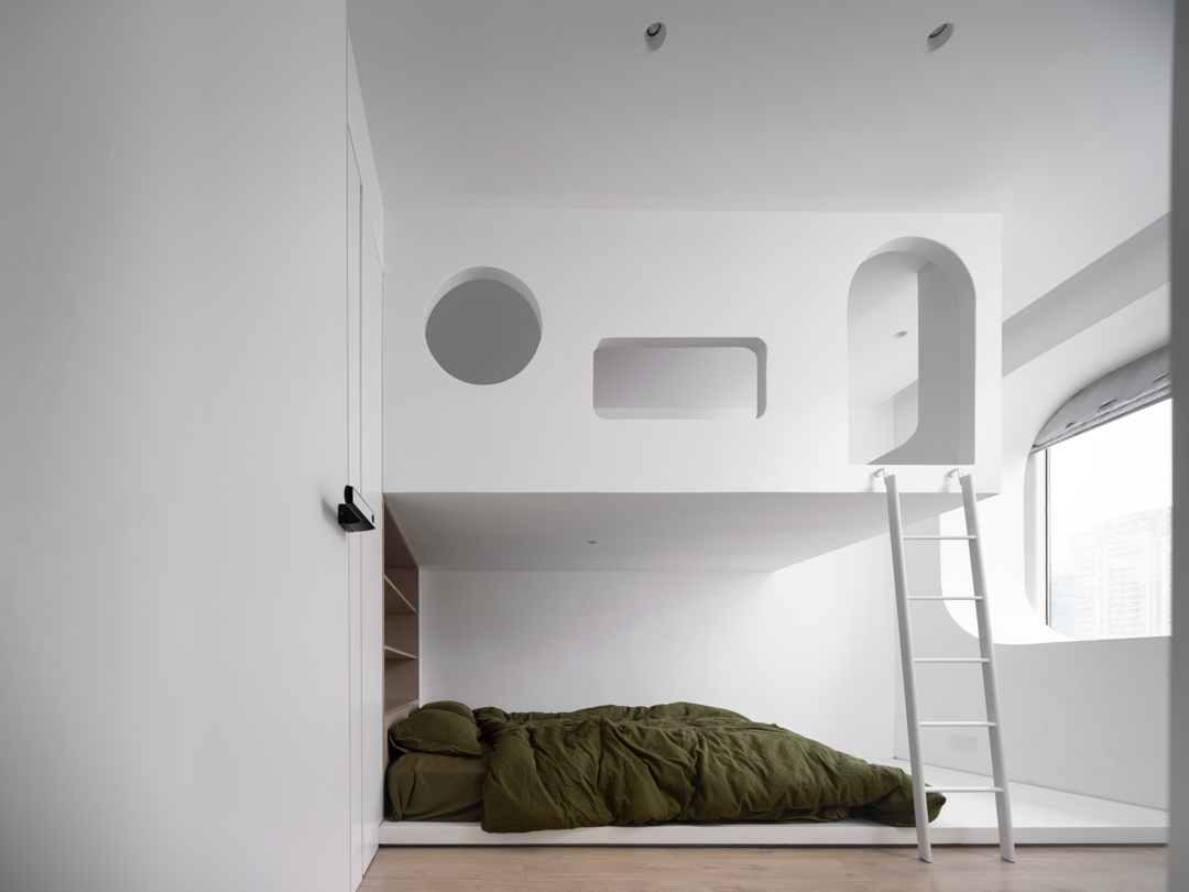 本项目位于江西万年县一套复式空间,案子作为一套顶楼项目,业主是一对年轻夫妻,有两个小孩,对于理想家的探索成为了设计出发点,希望客厅不再只是常规的电视背景和沙发背景,想要更多的趣味性,基于此,打破常规做法,以体块交叠之美打造独特且具趣味性的空间。