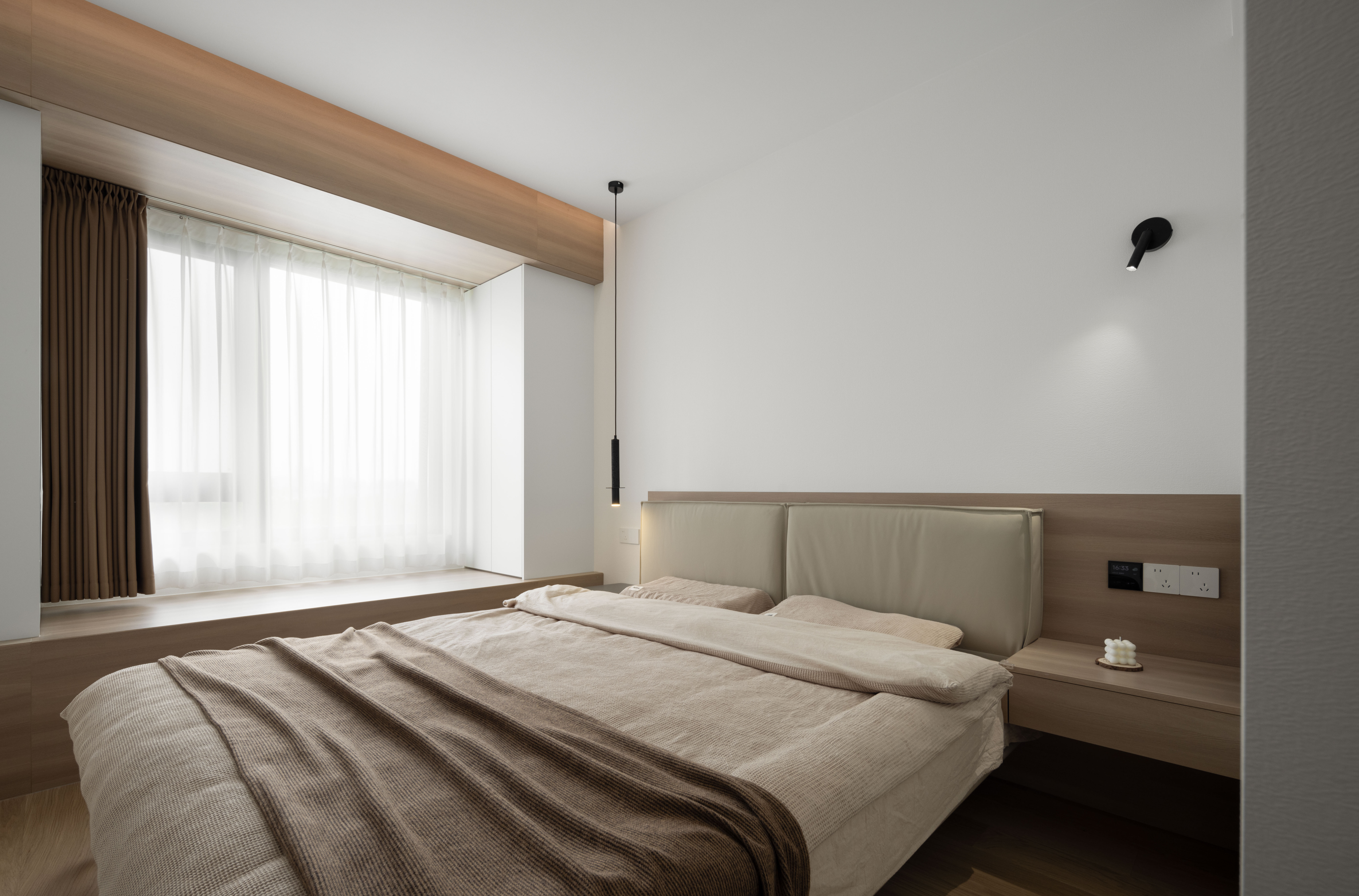 较少的运用木饰面护墙板,墙面留白但又简约不简单。更耐看温馨。