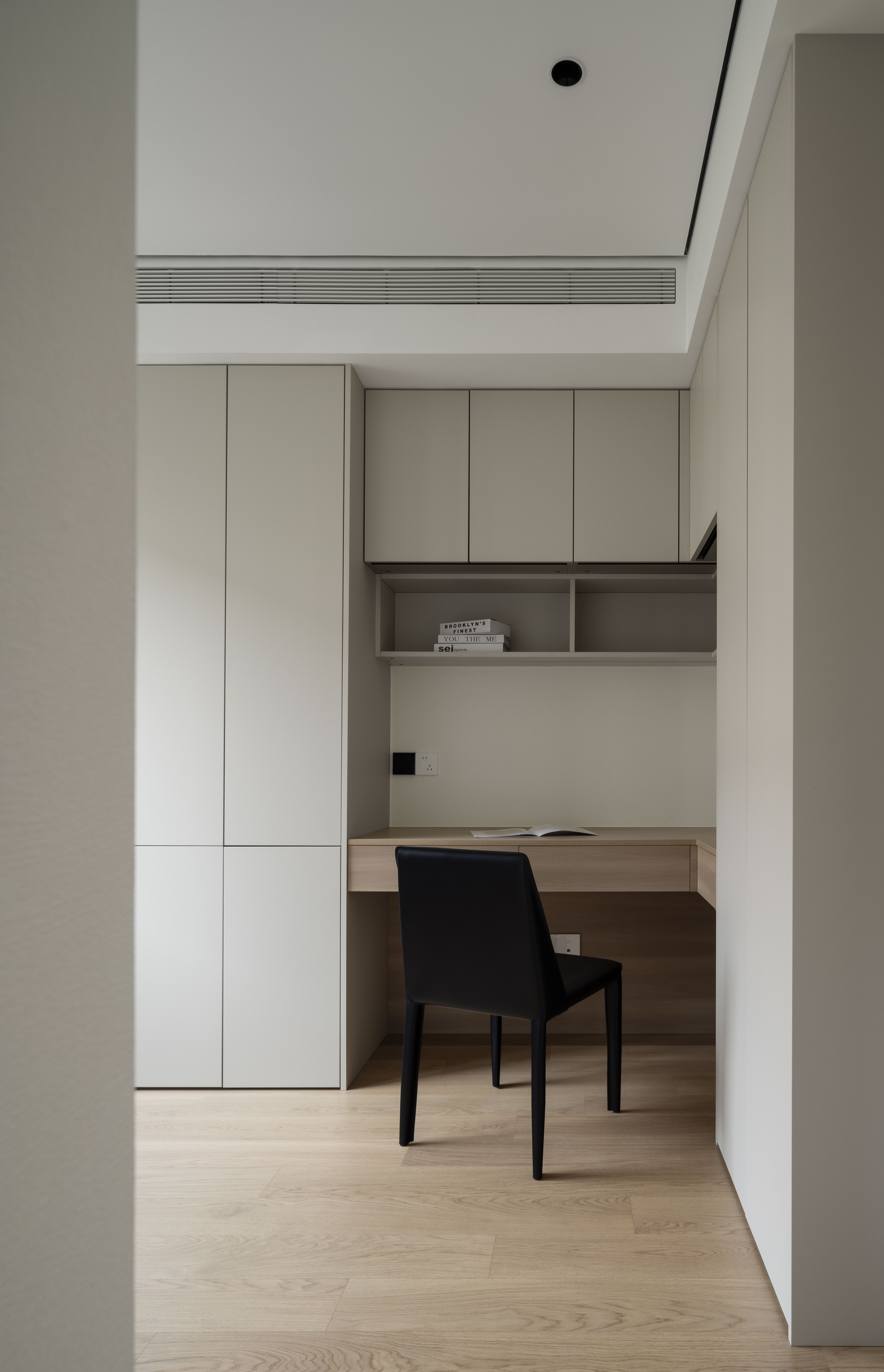 白色原木极简风格是比较温馨简约的风格,但是融入一点黑色更加彰显质感。